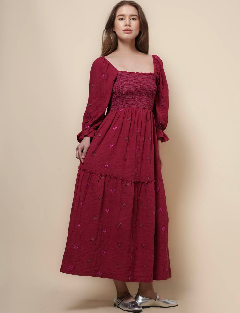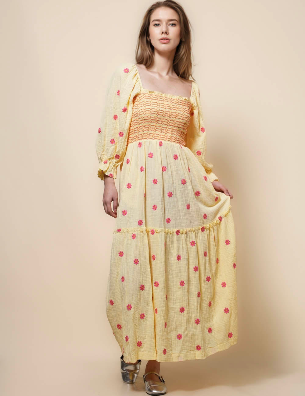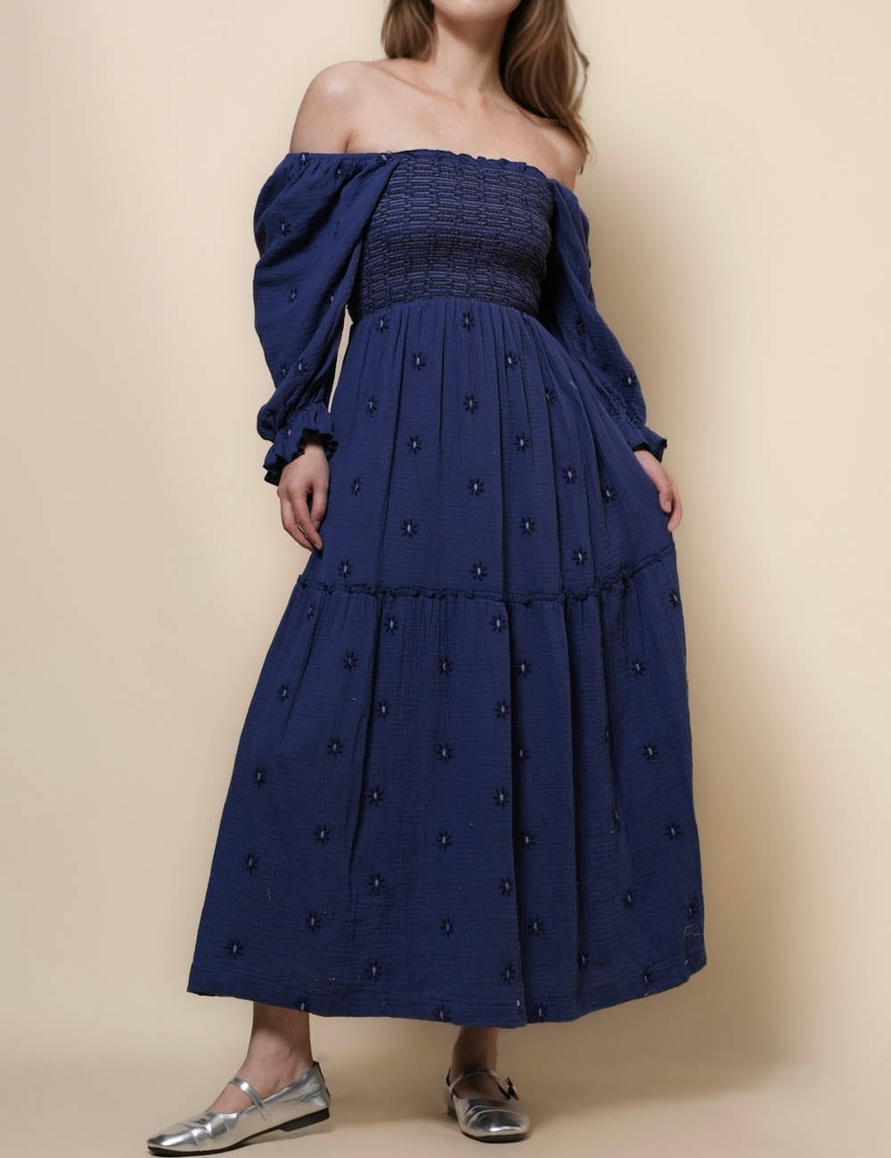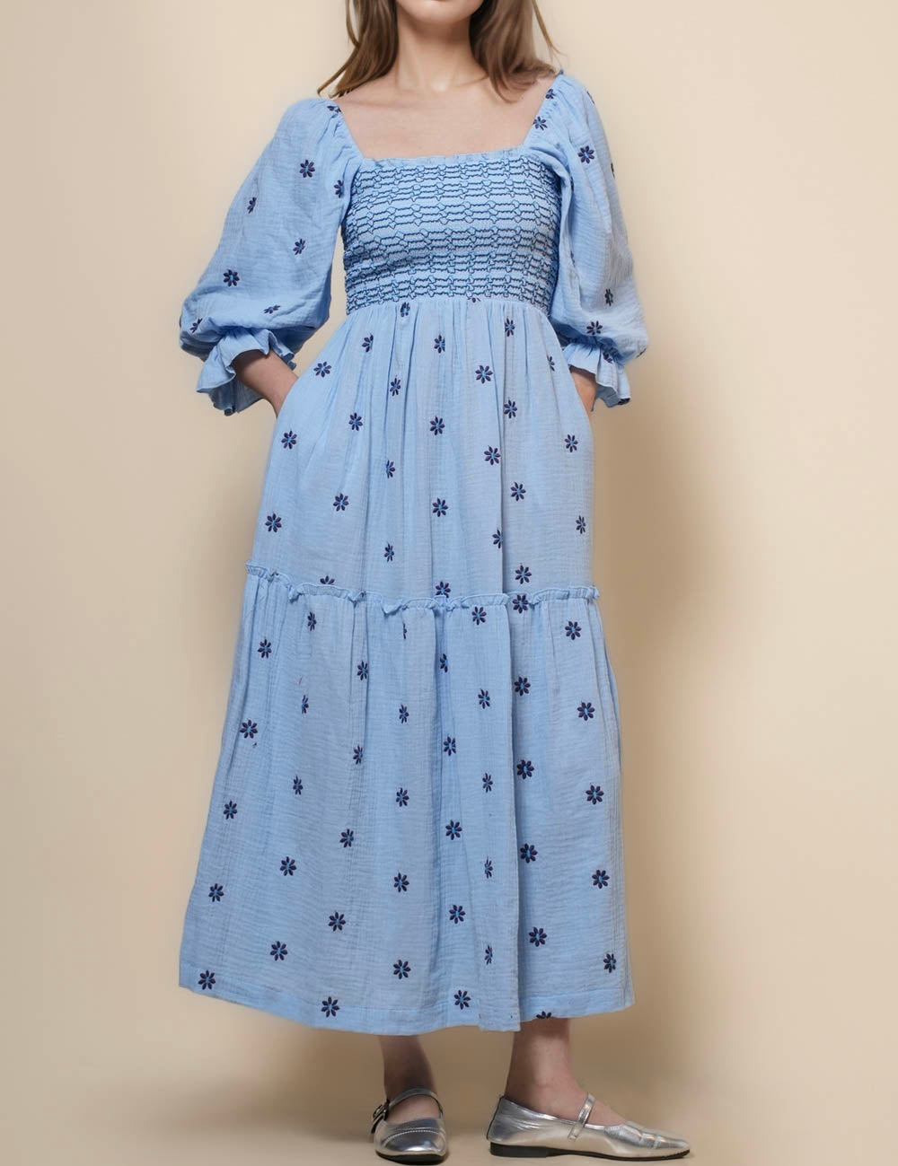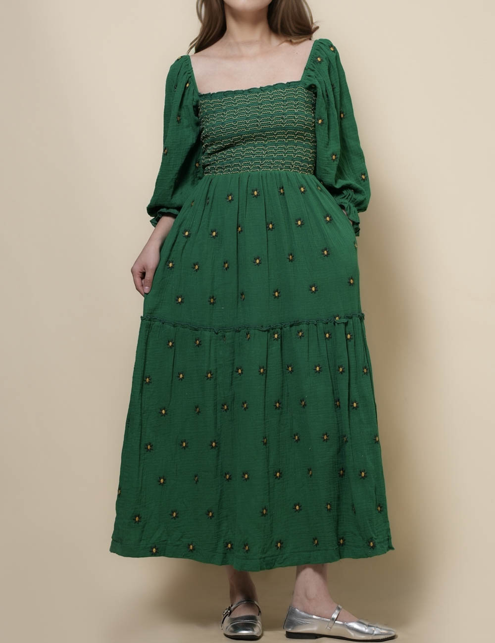 Ladies Long Sleeves Daisty Embroidery Midi Dress SKD50199
