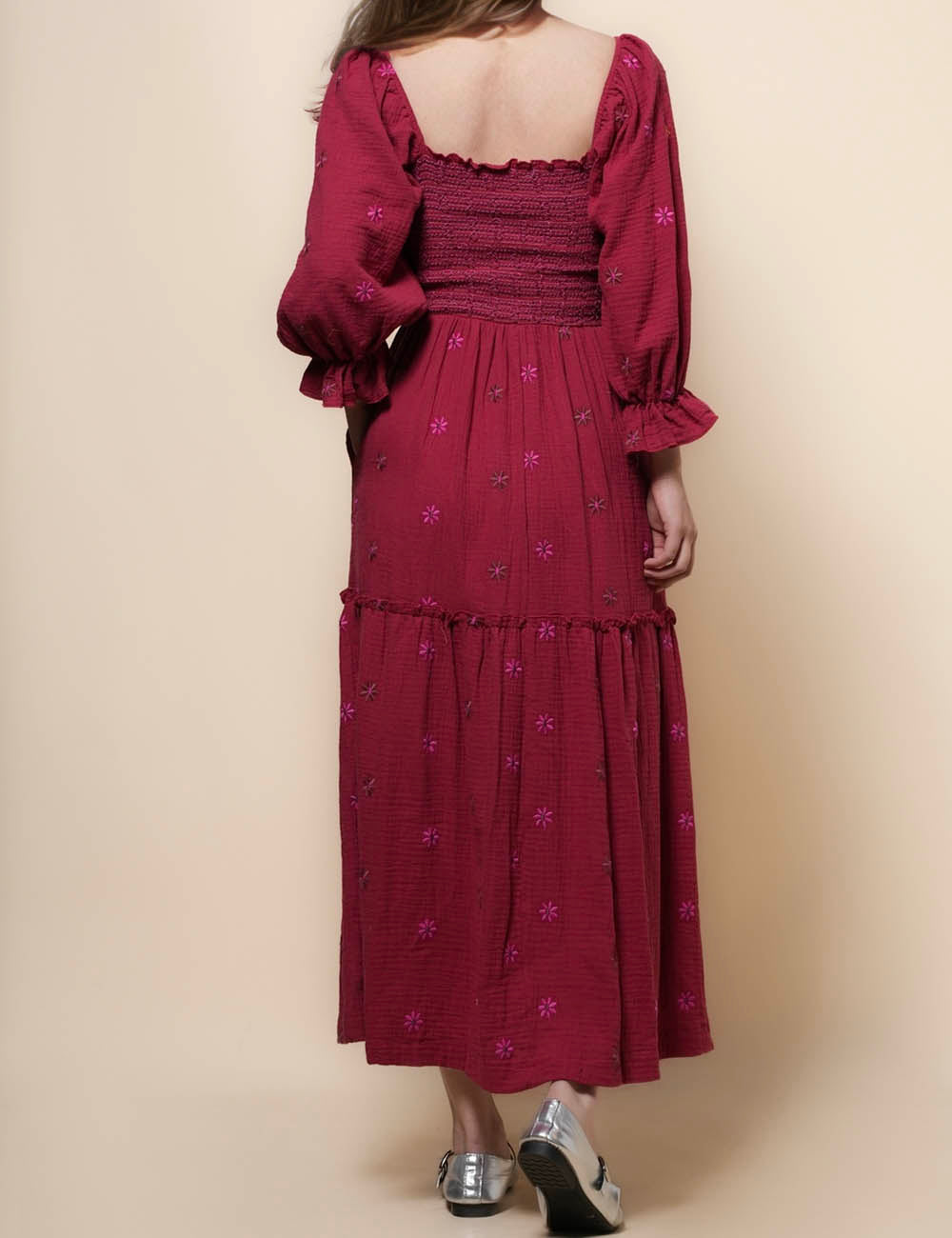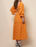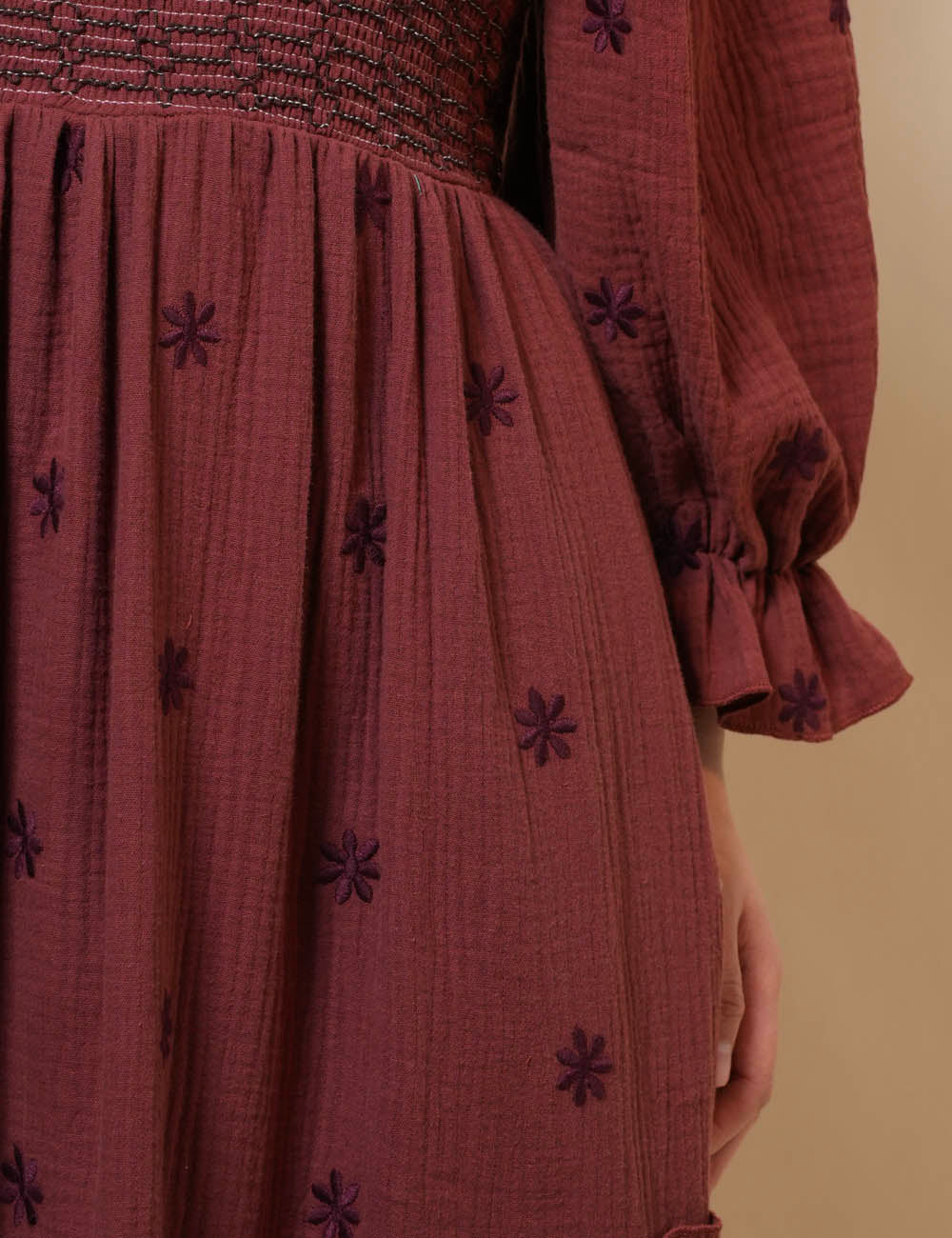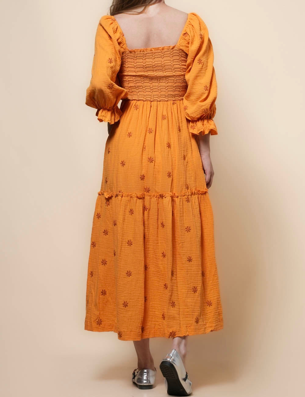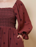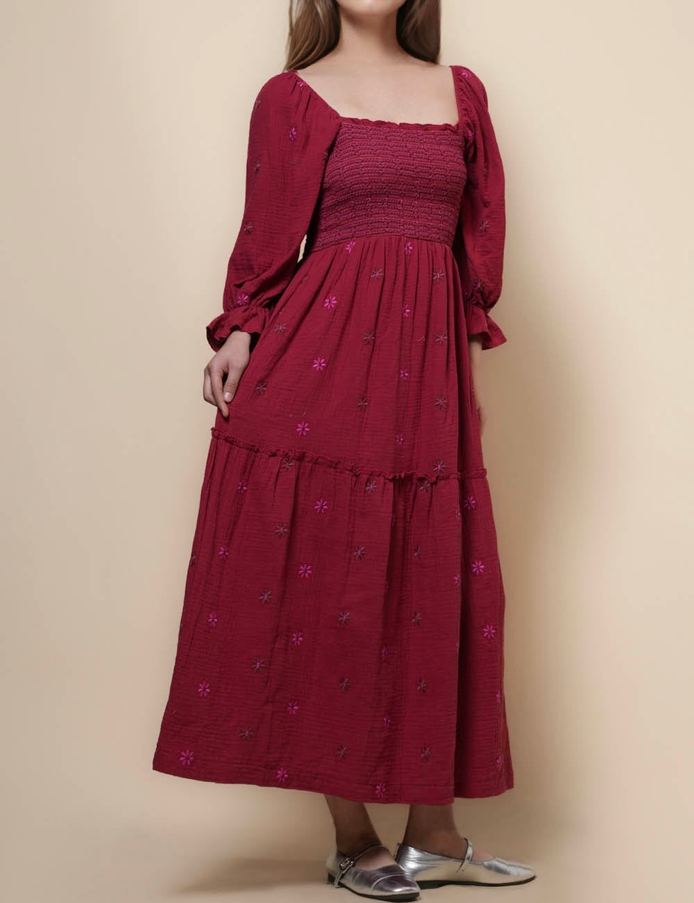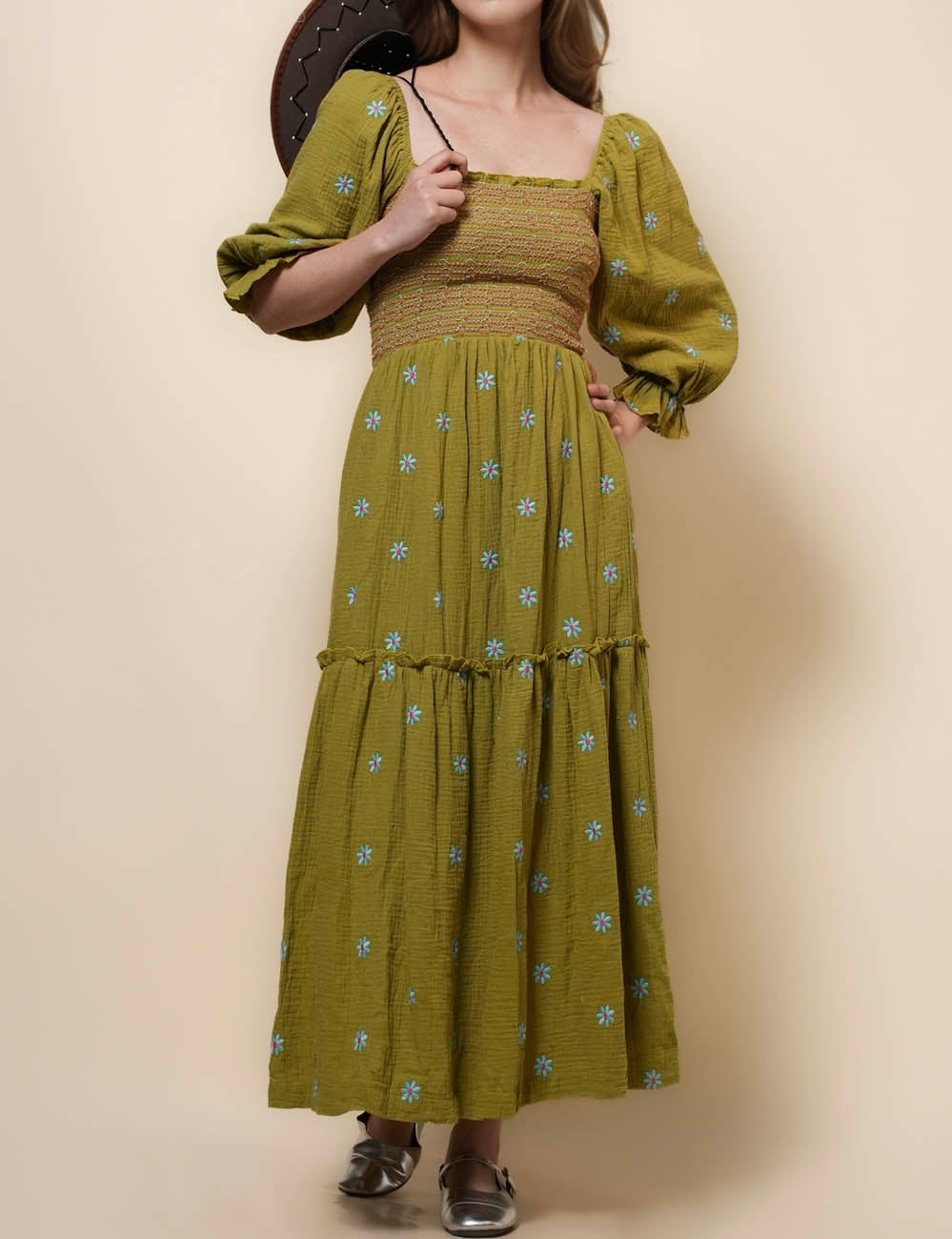 Ladies Long Sleeves Daisty Embroidery Midi Dress SKD50199