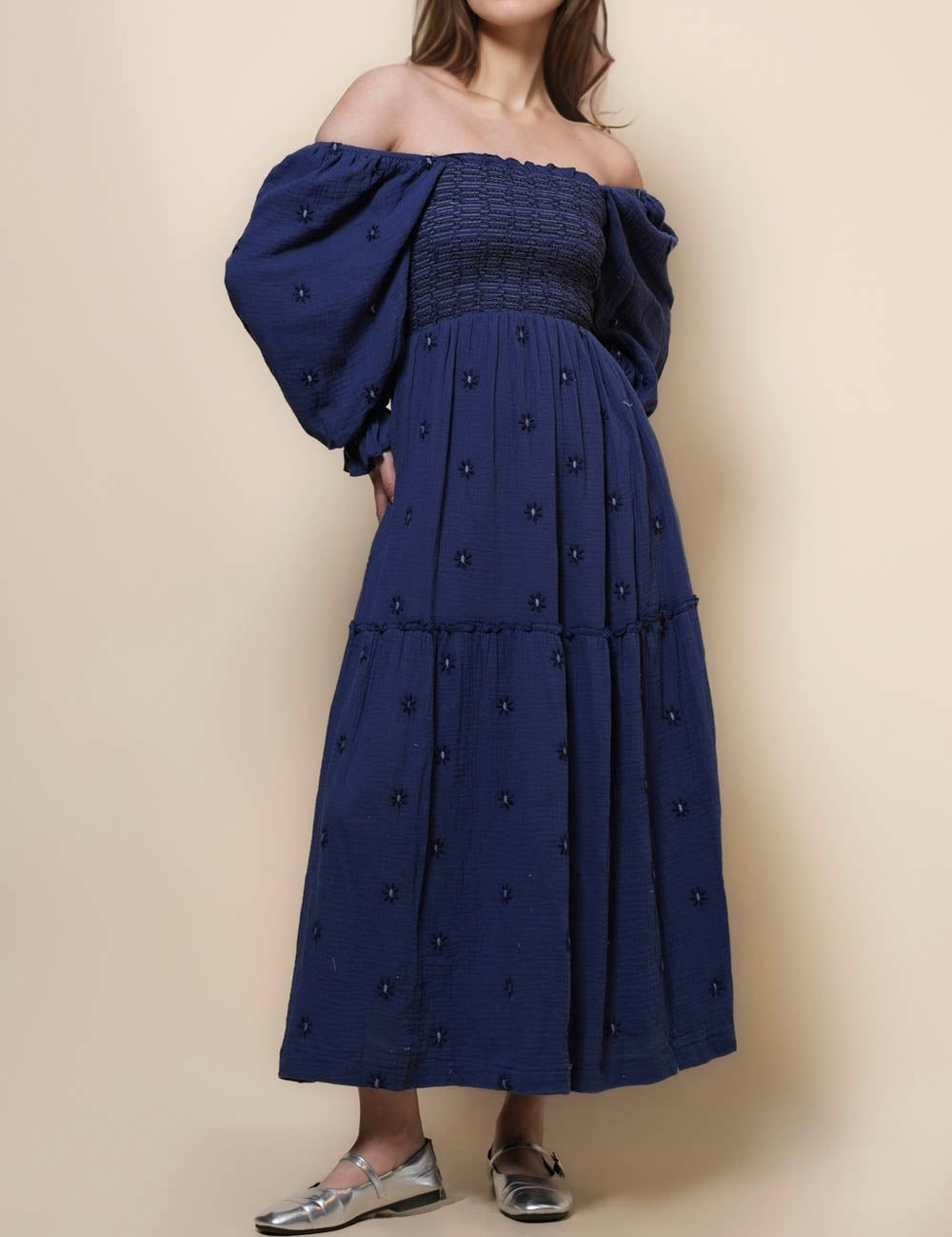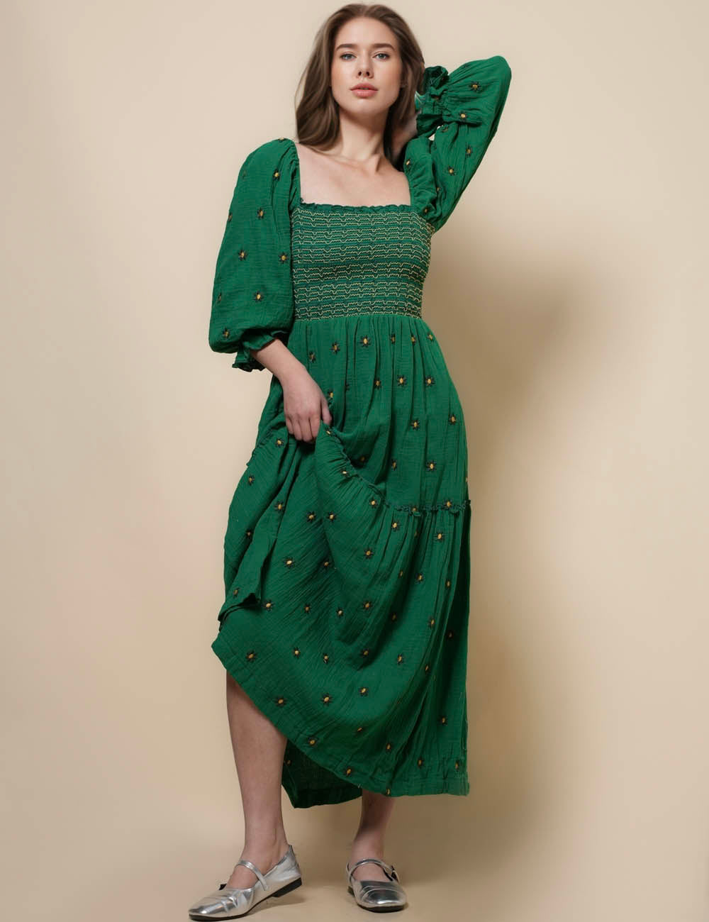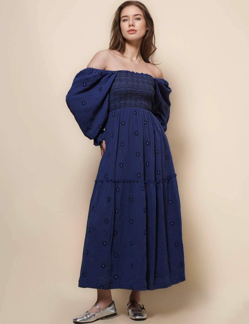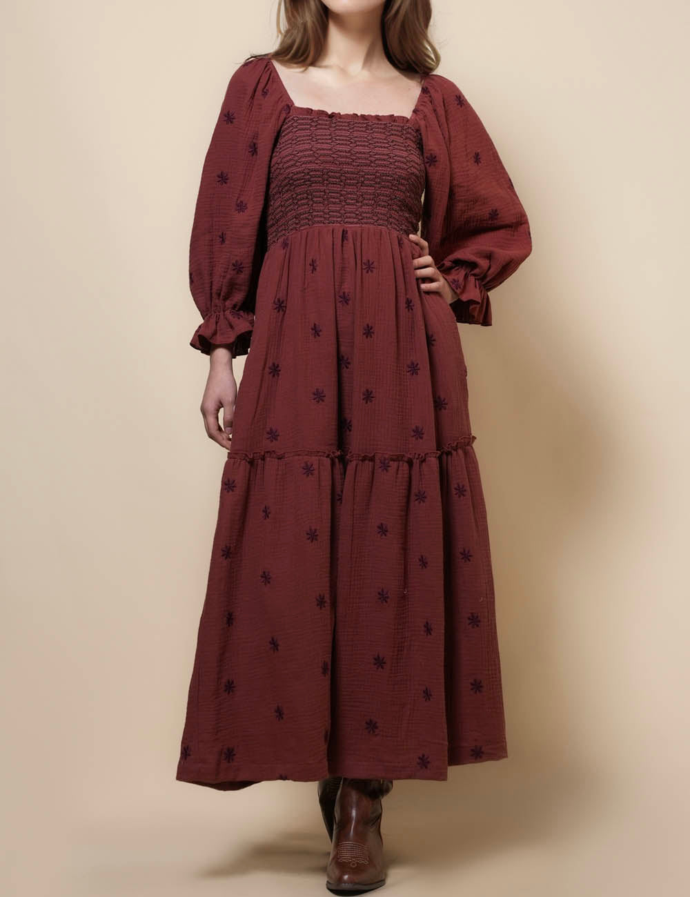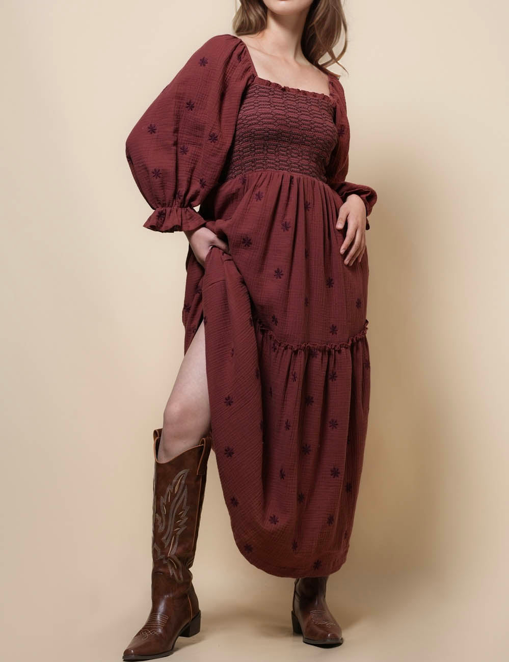 Ladies Long Sleeves Daisty Embroidery Midi Dress SKD50199
