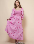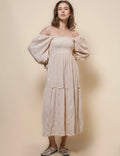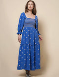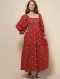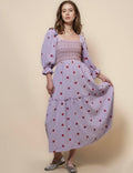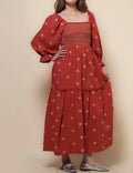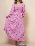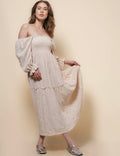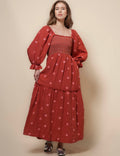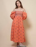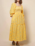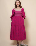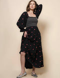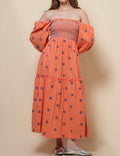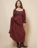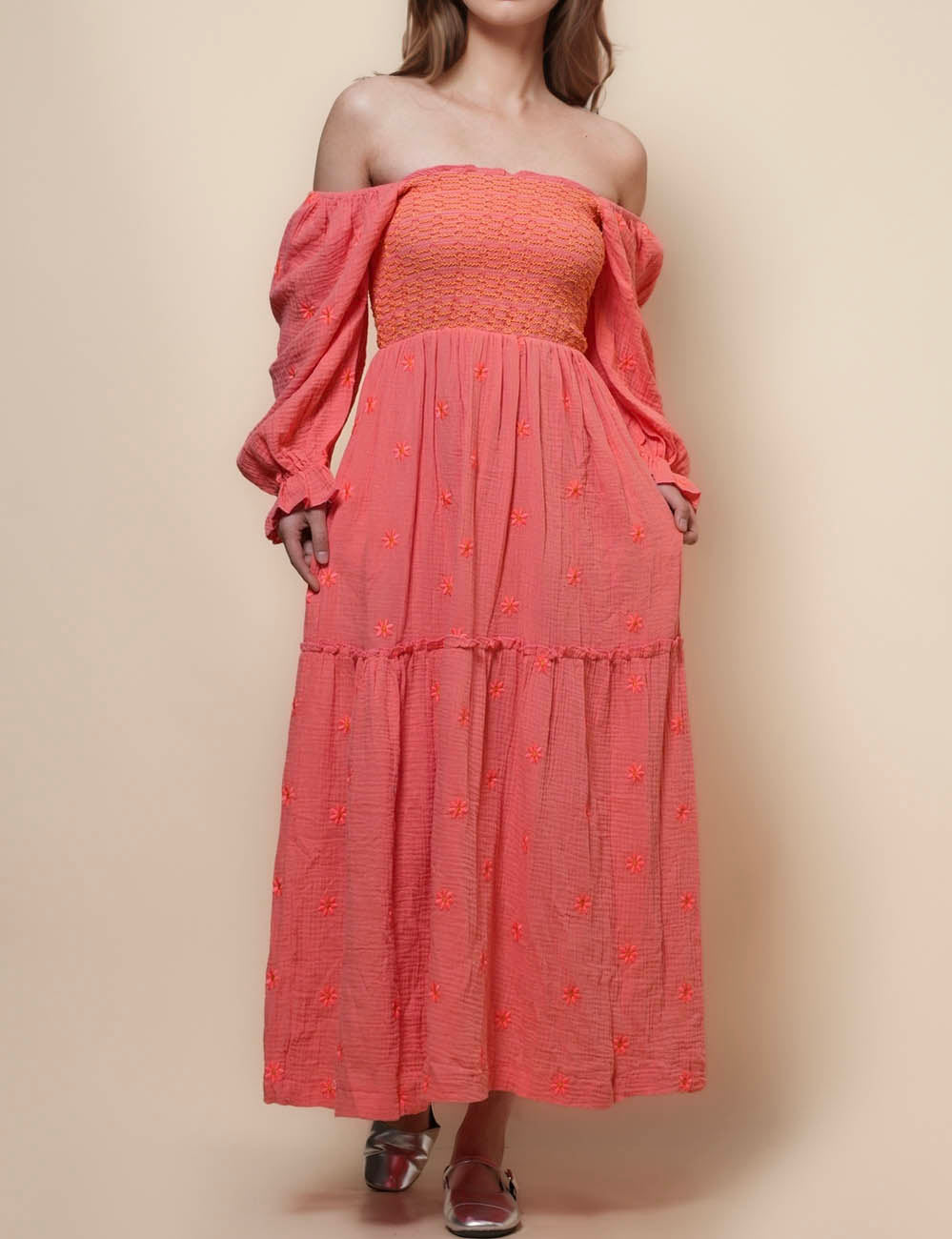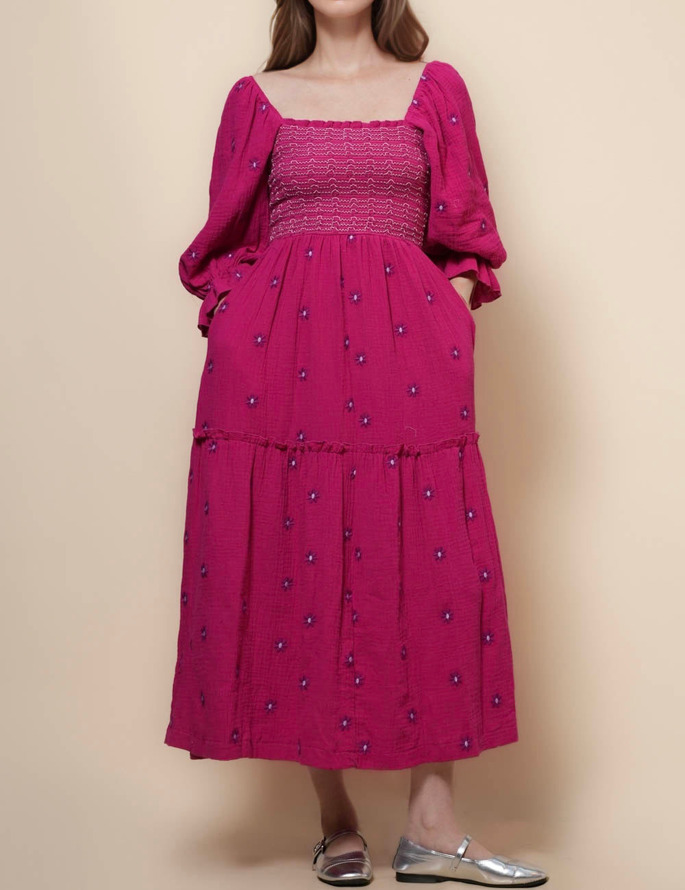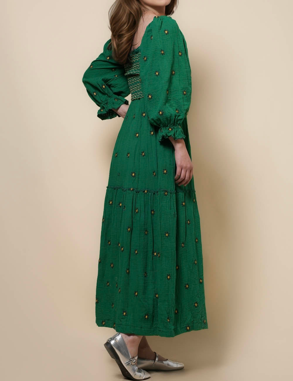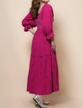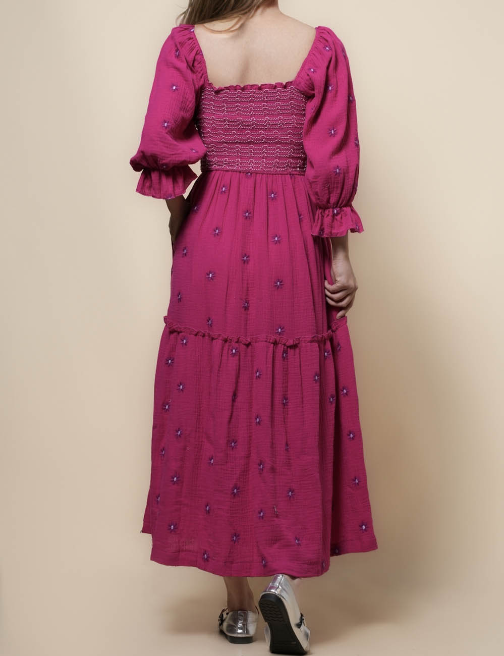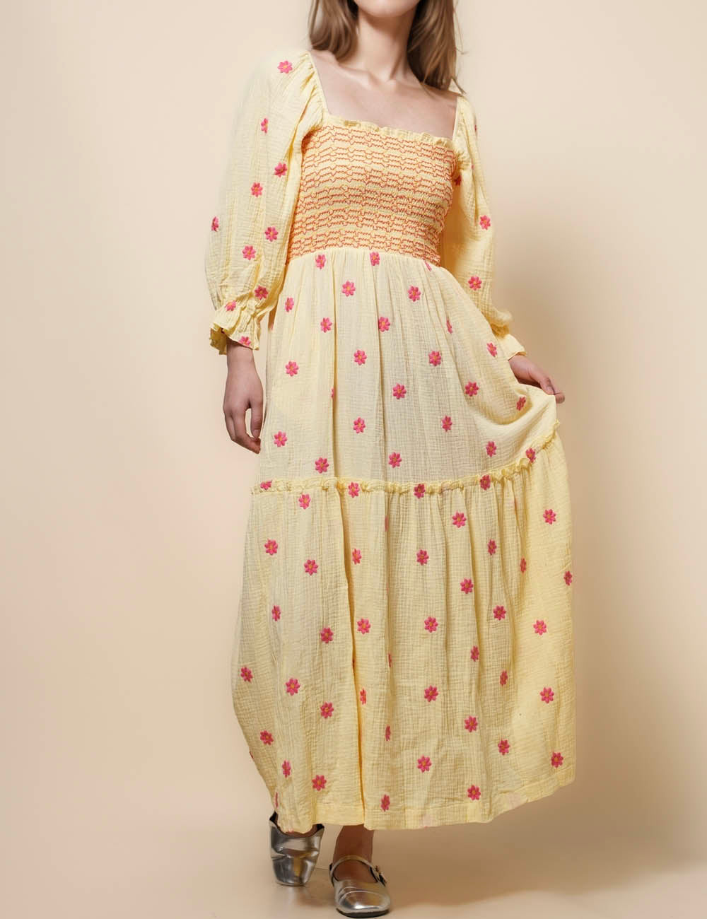Ladies Long Sleeves Daisty Embroidery Midi Dress SKD50199