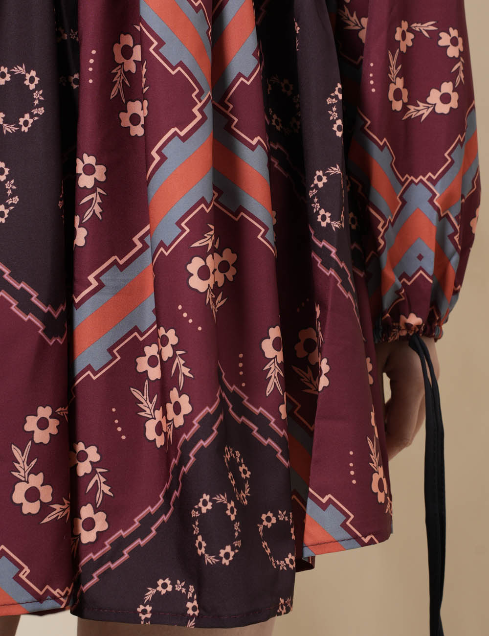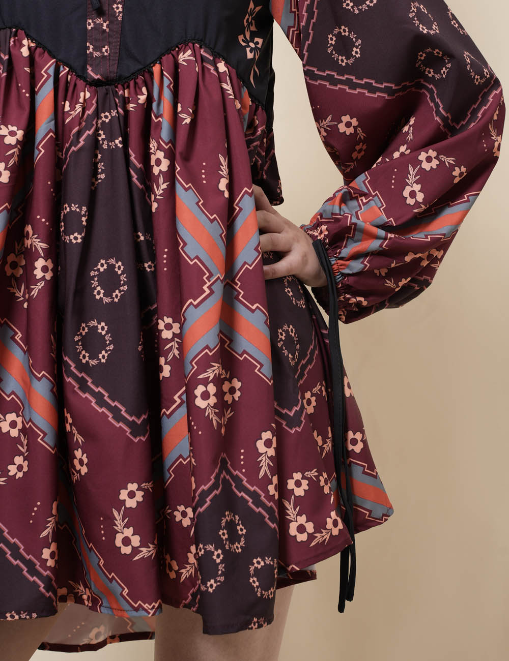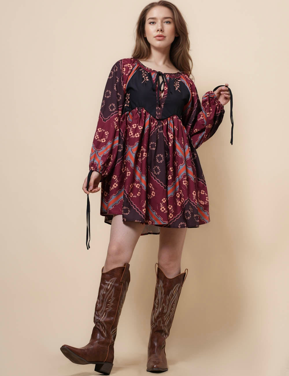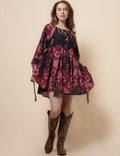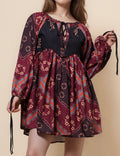 Ladies Long Sleeves Print Ruffle Midi Dress SKD41143