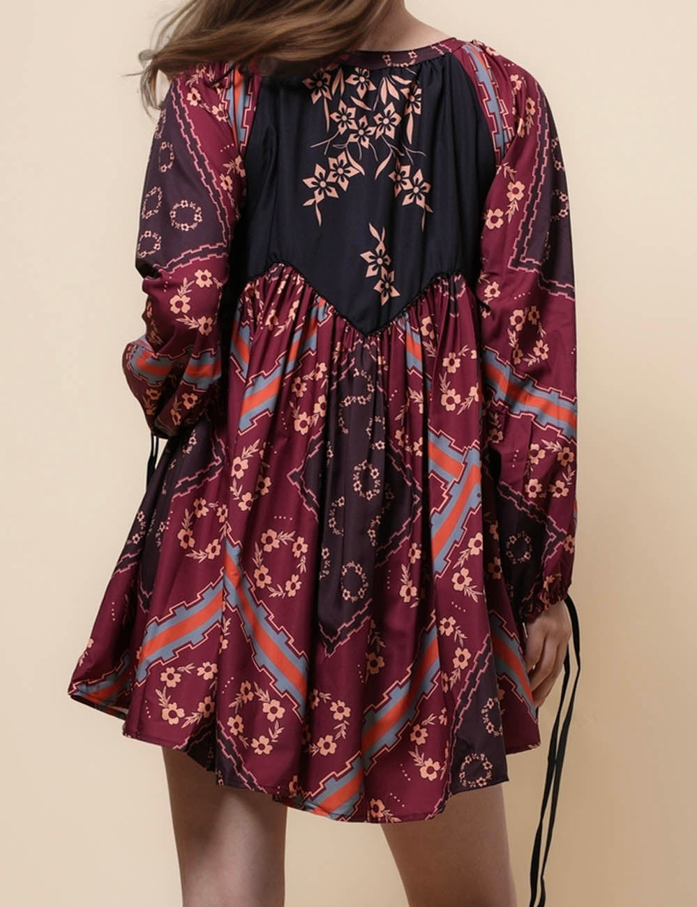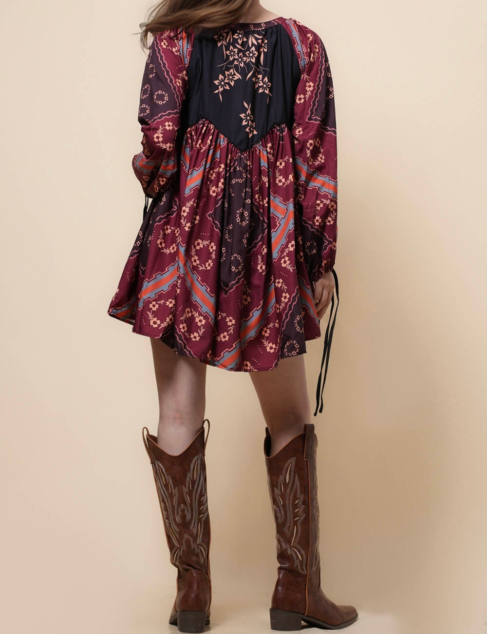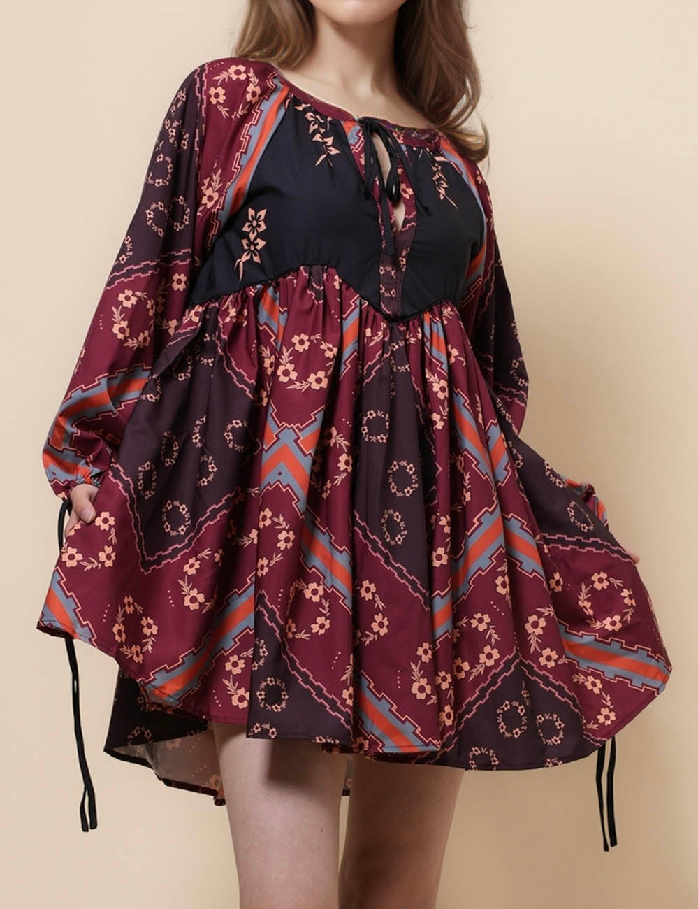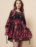Ladies Long Sleeves Print Ruffle Midi Dress SKD41143