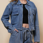 Ladies Long Sleeves Top & Shorts Denim Set SKST50098