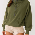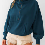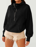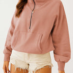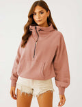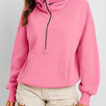 Ladies Long Sleeves Zip Collar Pocket Hoodie EWQD
