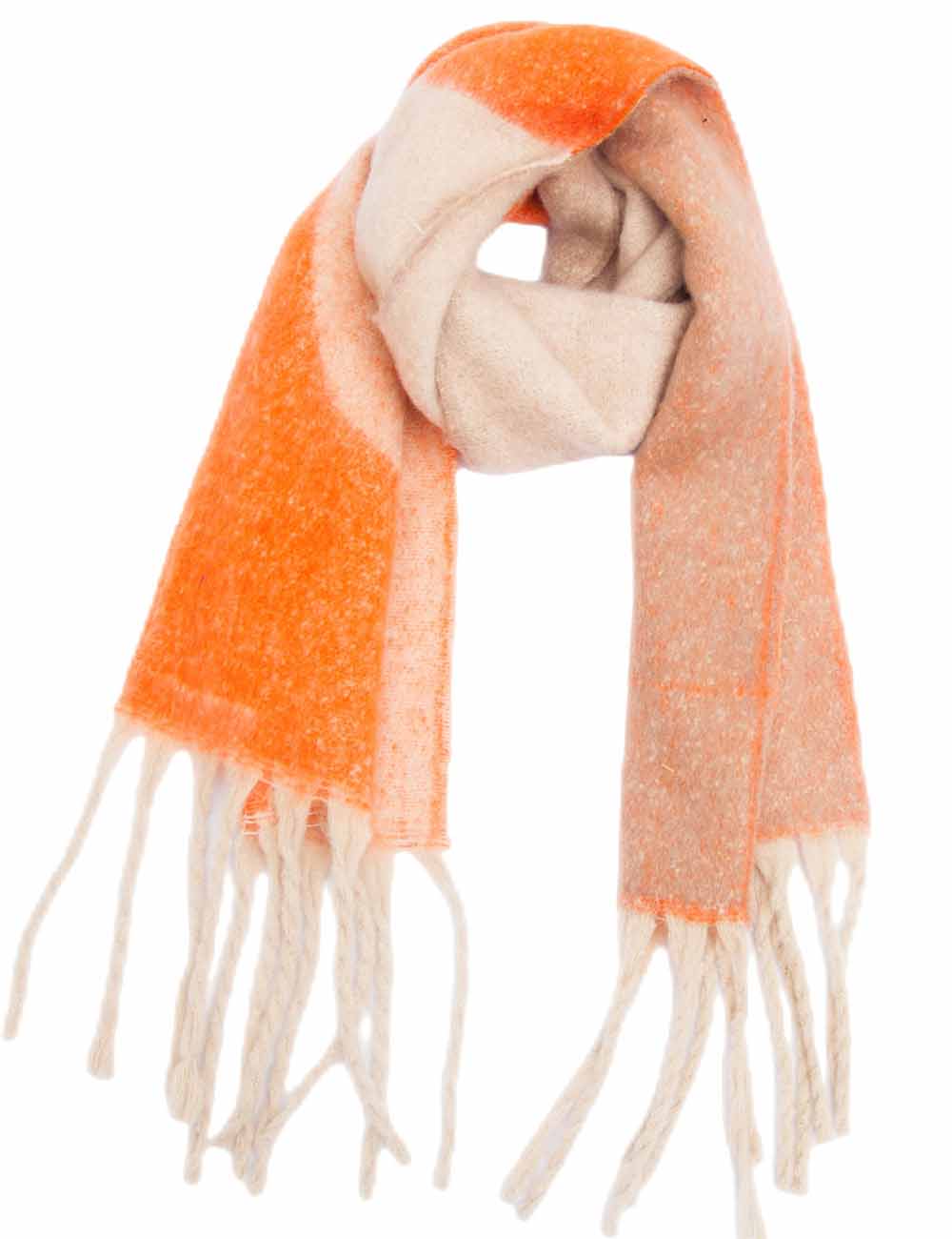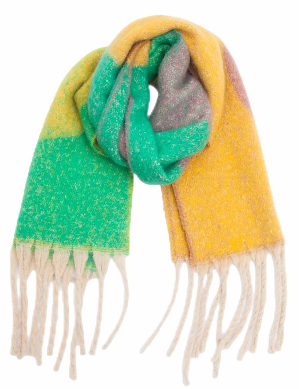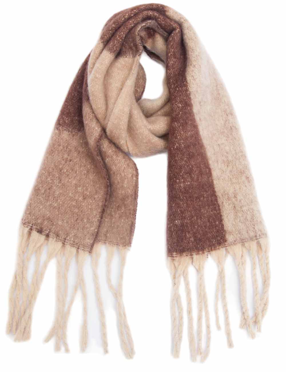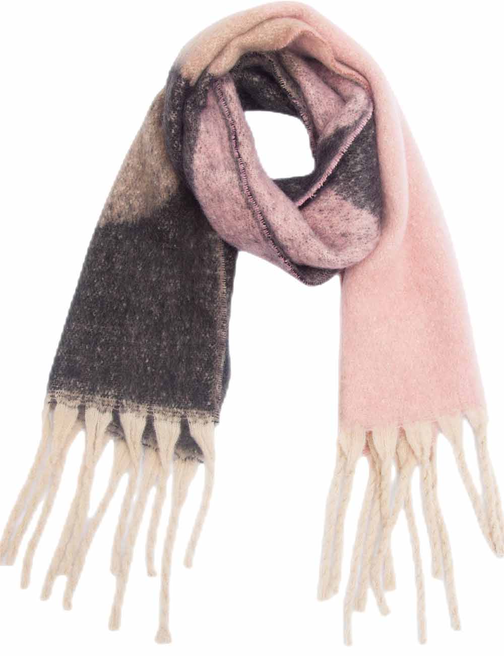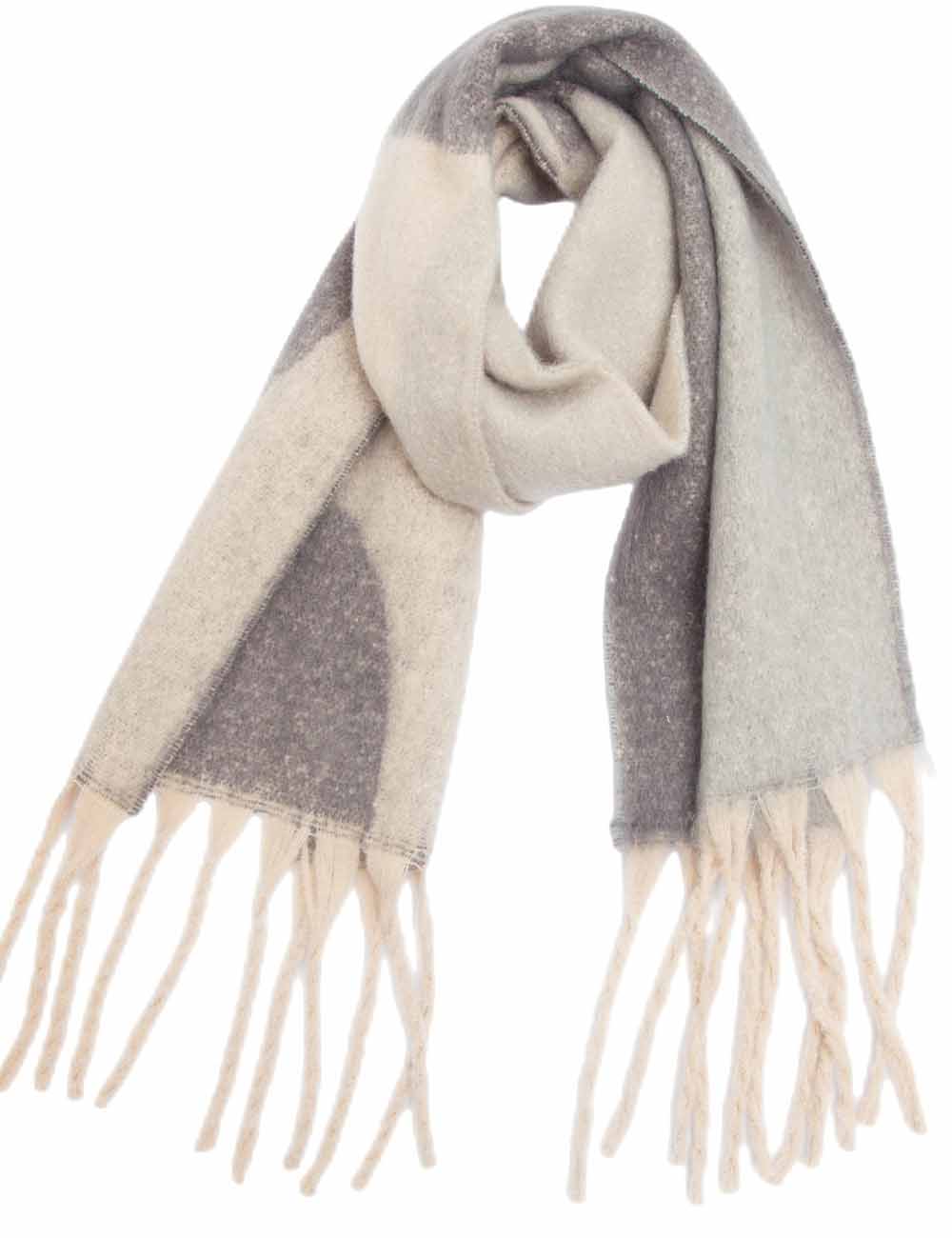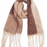 Ladies Loop Yarn Geometric Fringe Knit Scarf