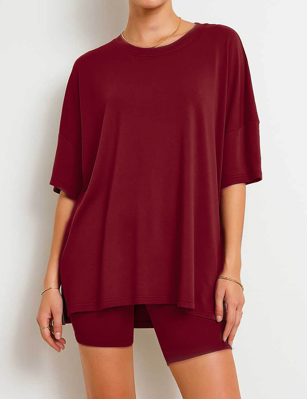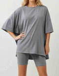 Ladies Loose Top and Shorts 2PCS Casual Tee Set SKST23129