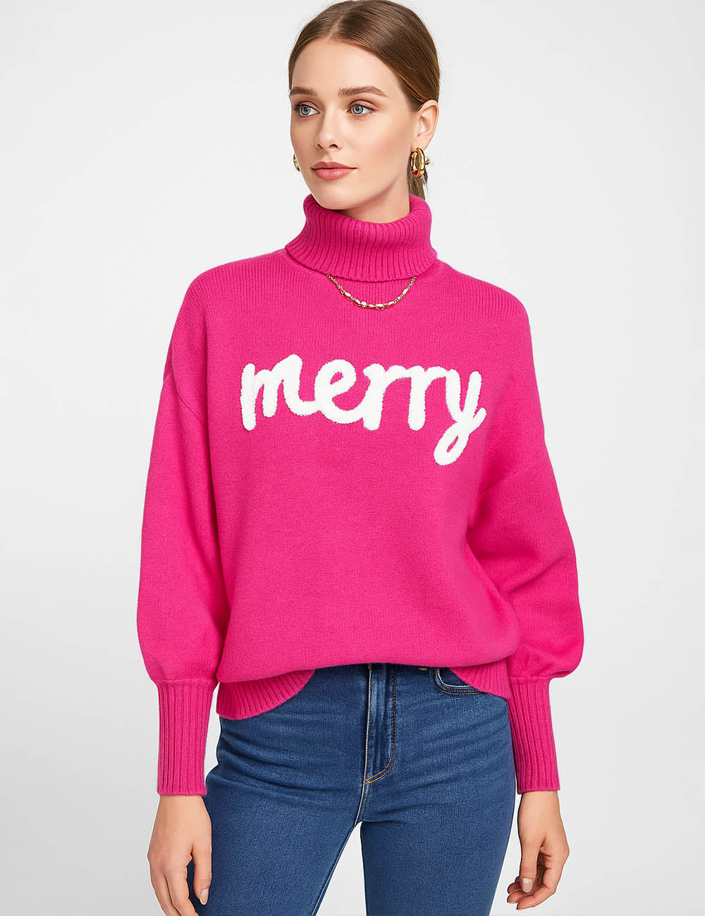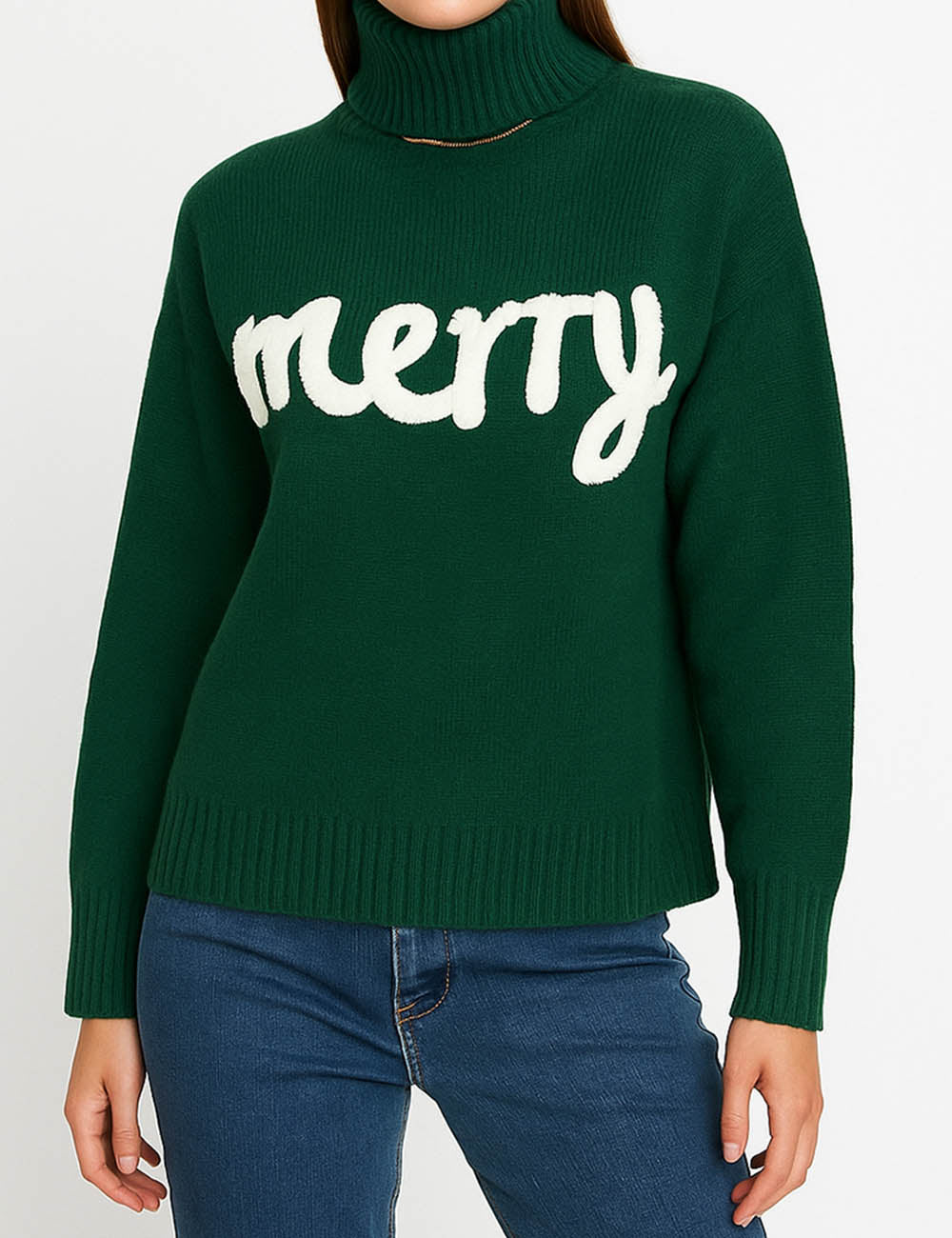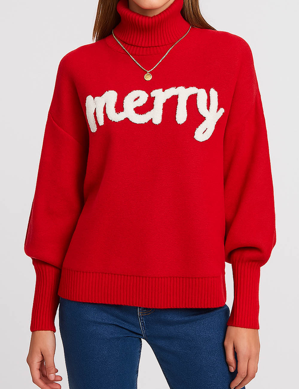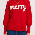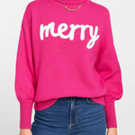Ladies Merry Text Merry Christmas Pullover Swerater SKT4877