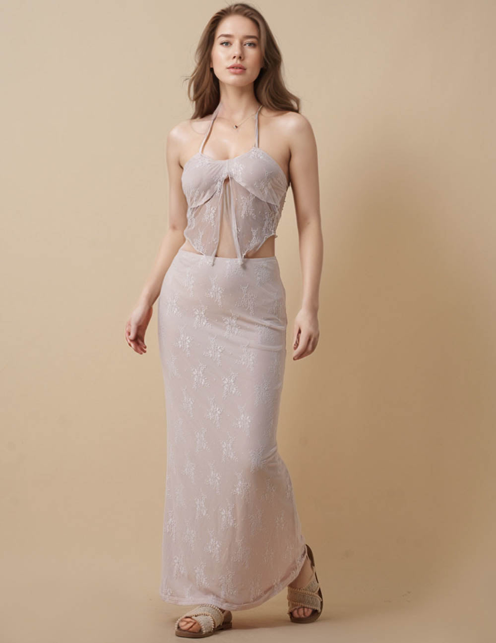 Ladies Mesh Lace See Through Cami Top & Skirt Set 8SKST51211