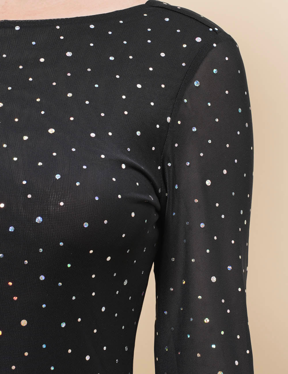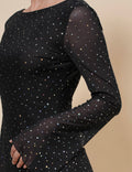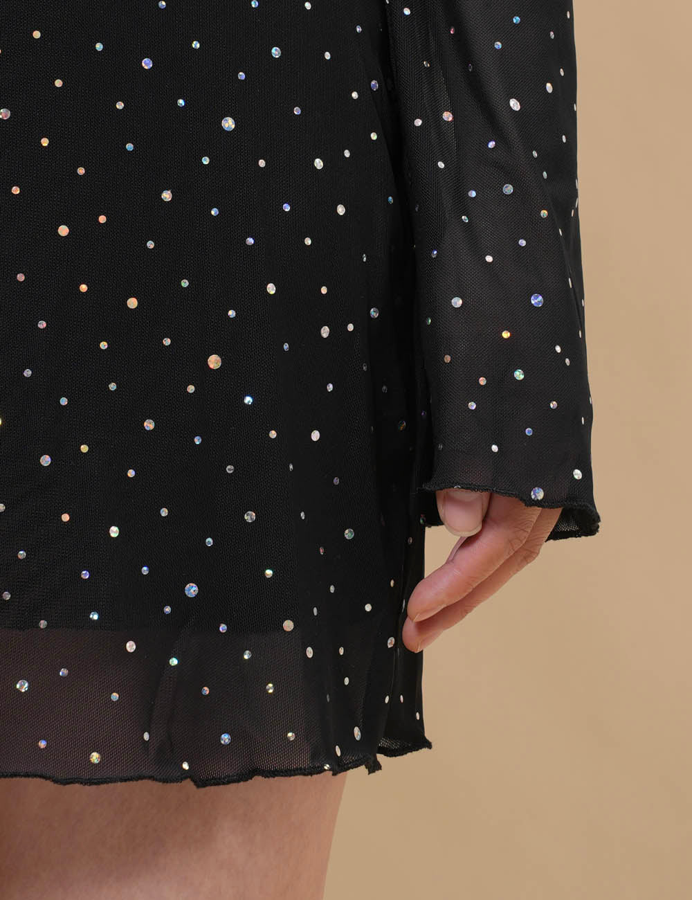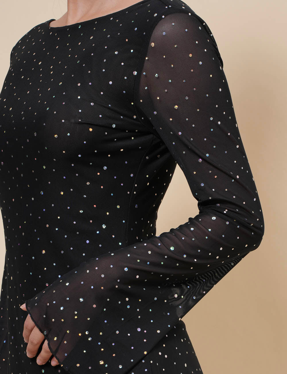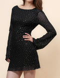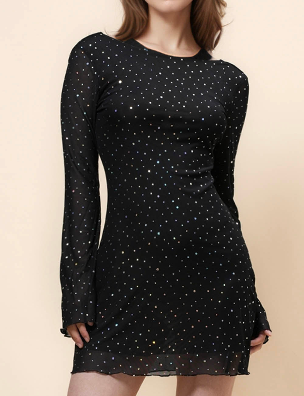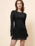 Ladies Mesh Rhinestone Backless Mini Dress SKD4970