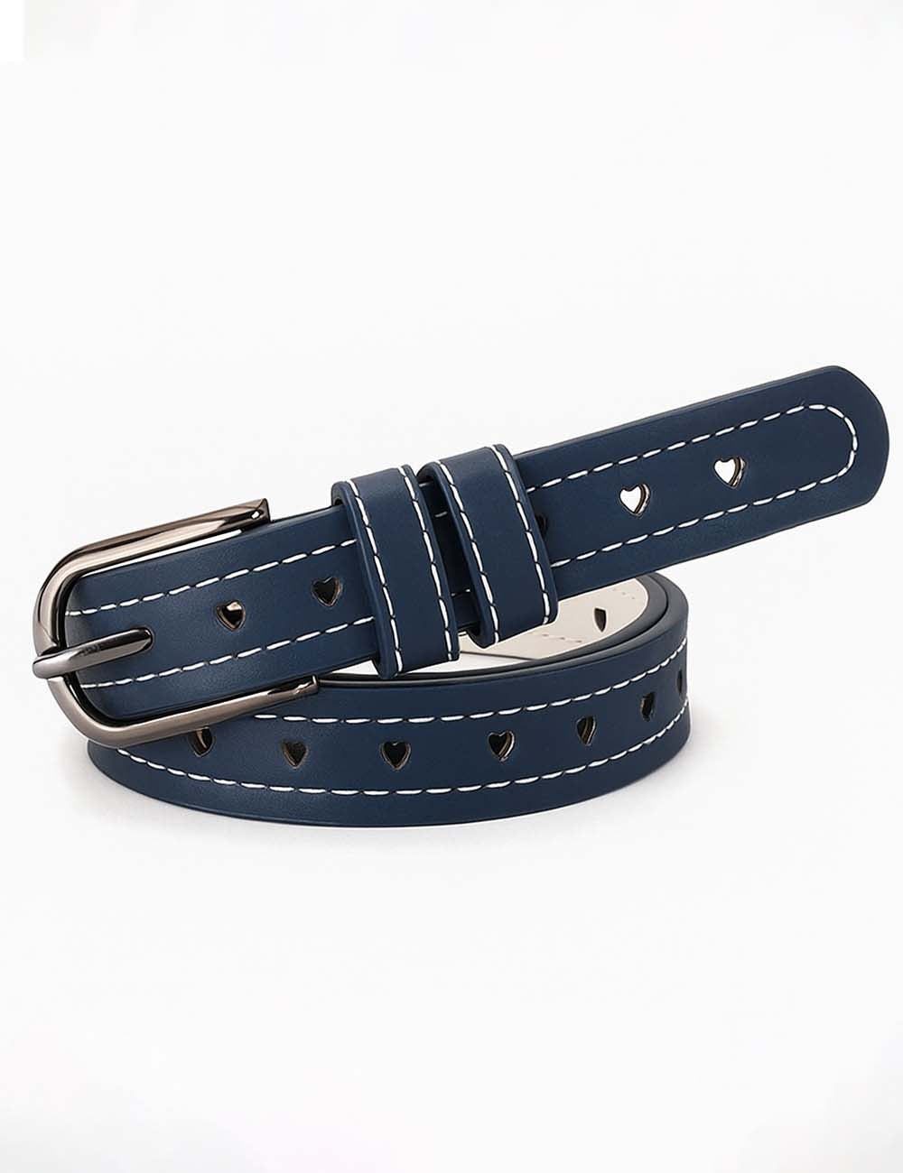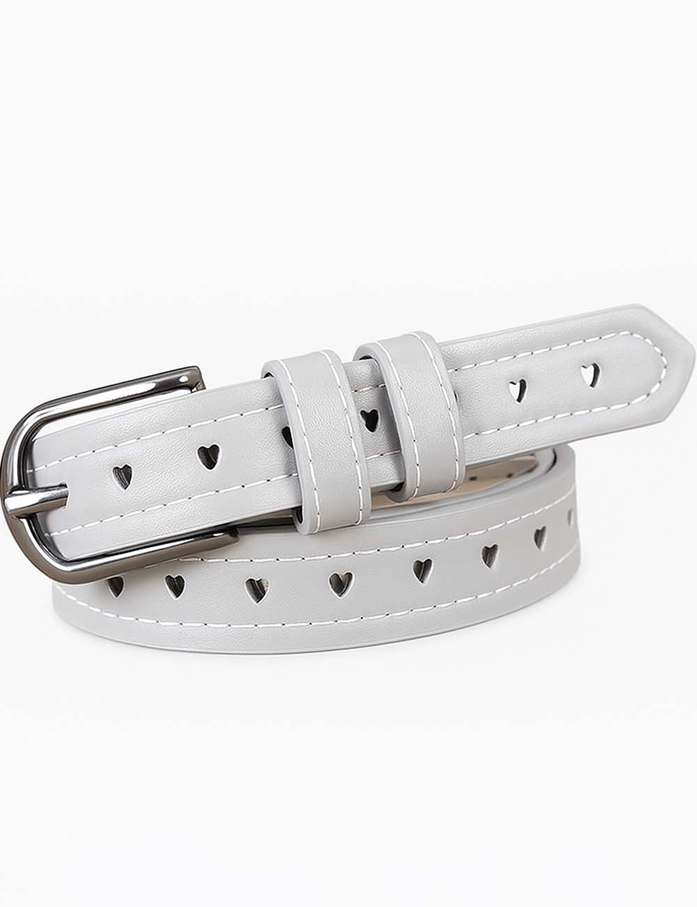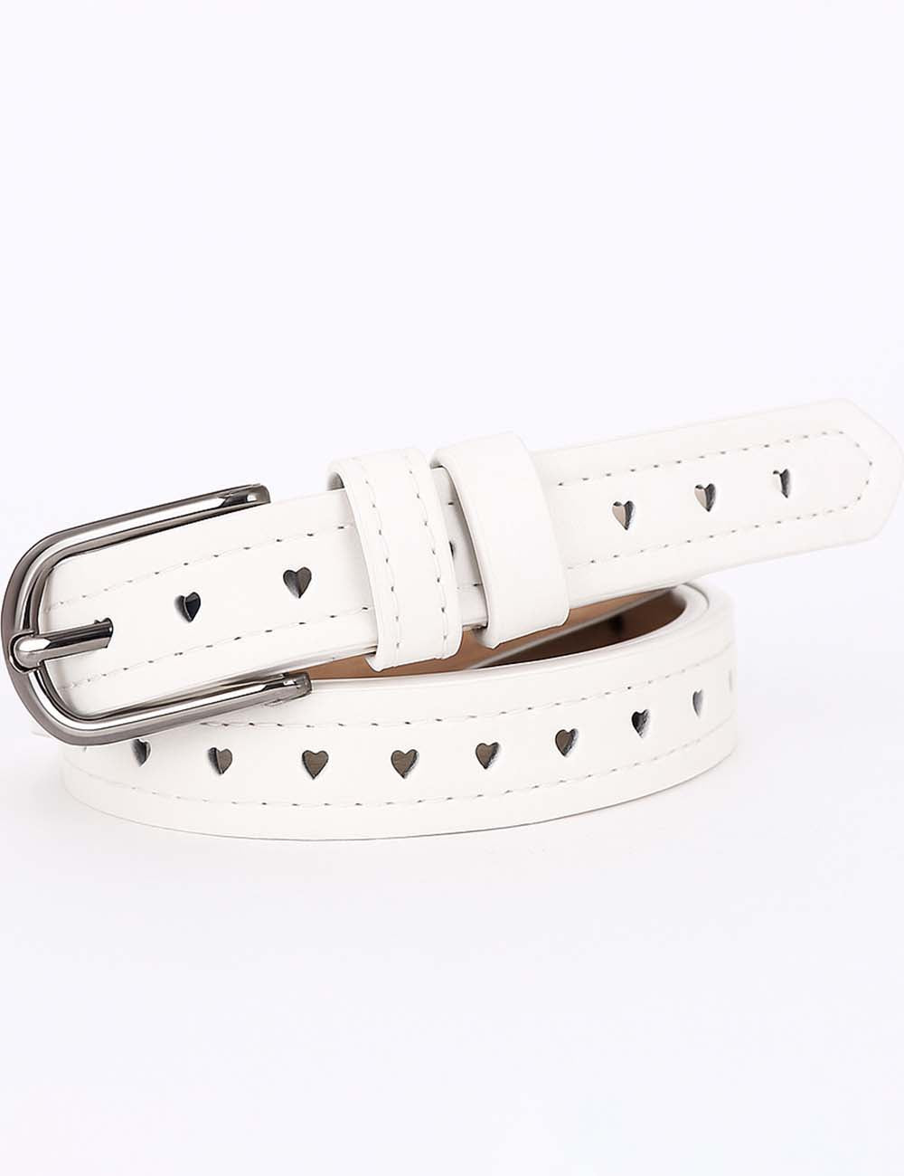 Ladies Metal Buckle Heart Cut-Out Faux Leather Waist Belt