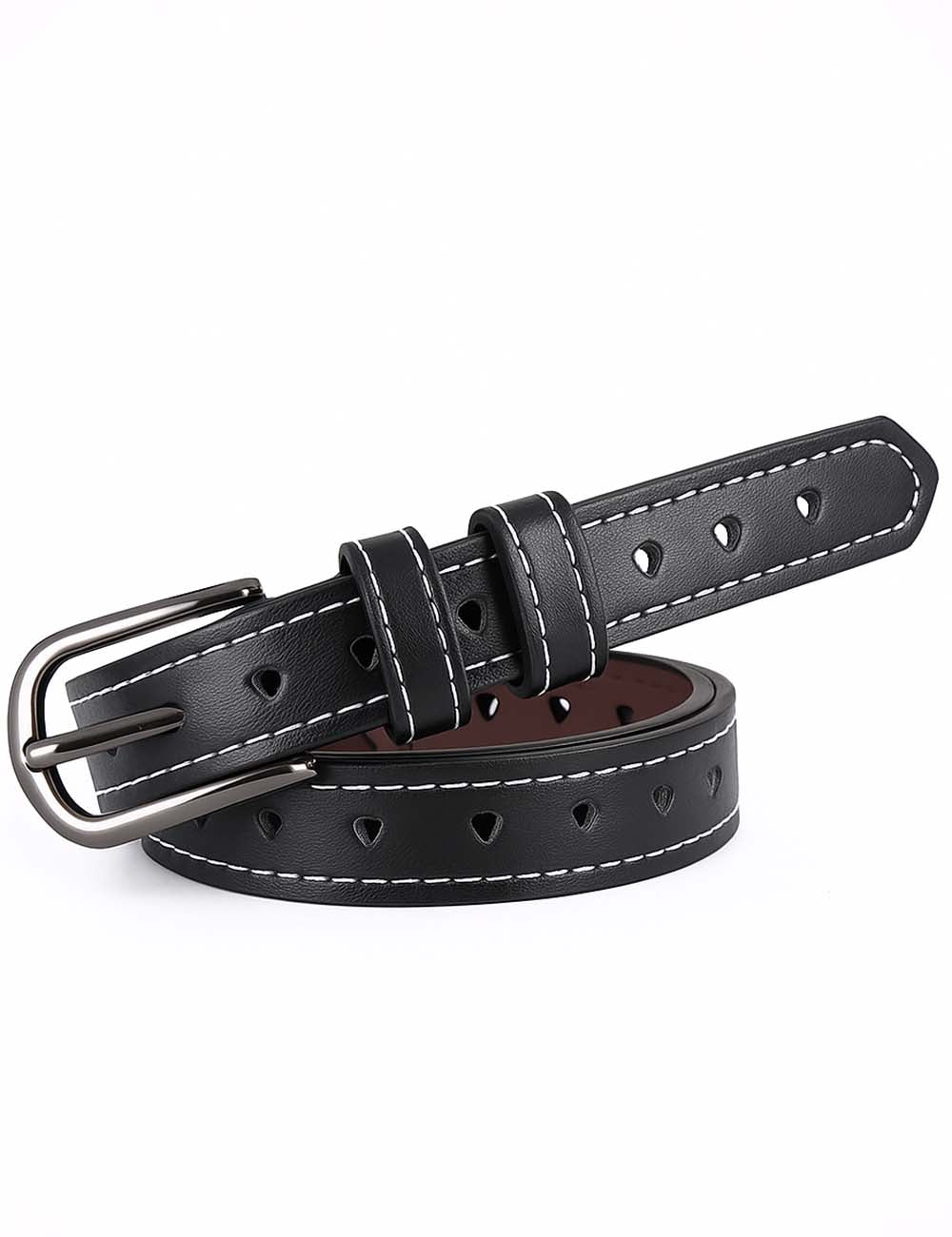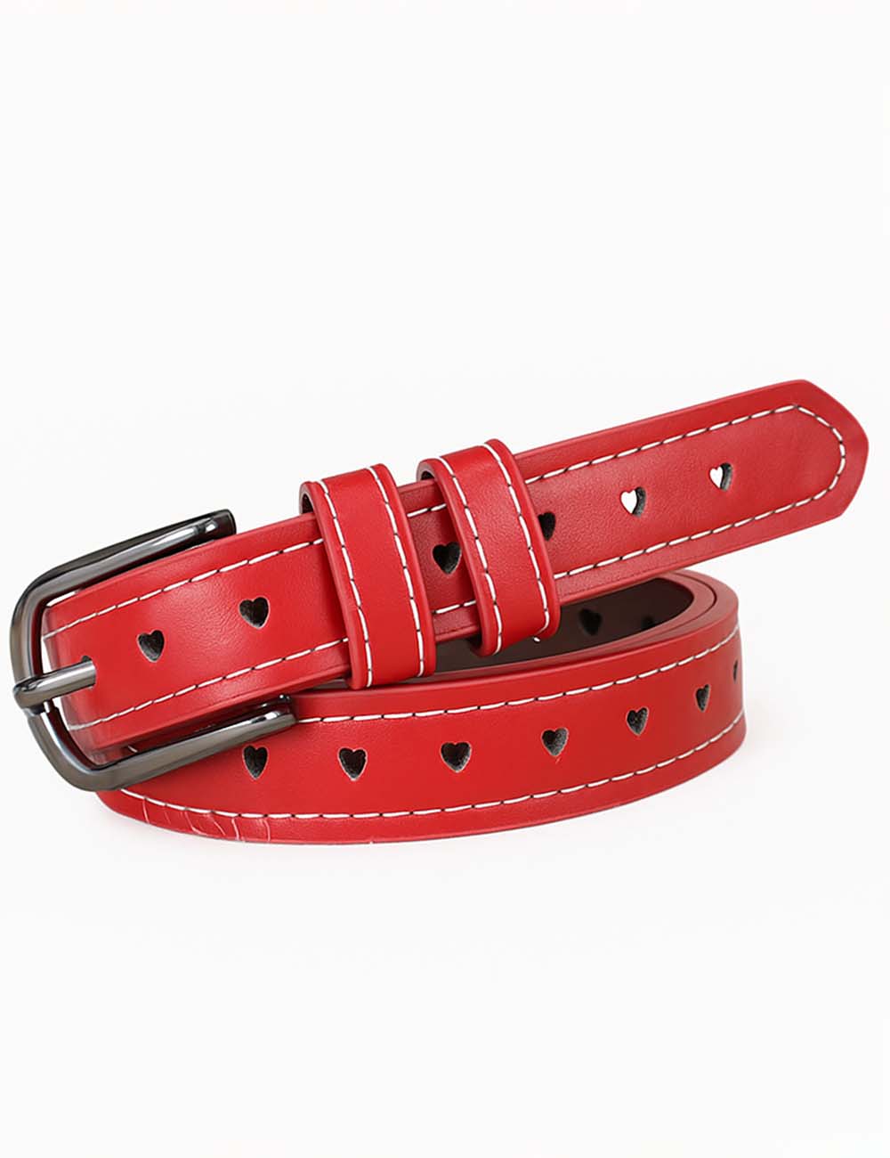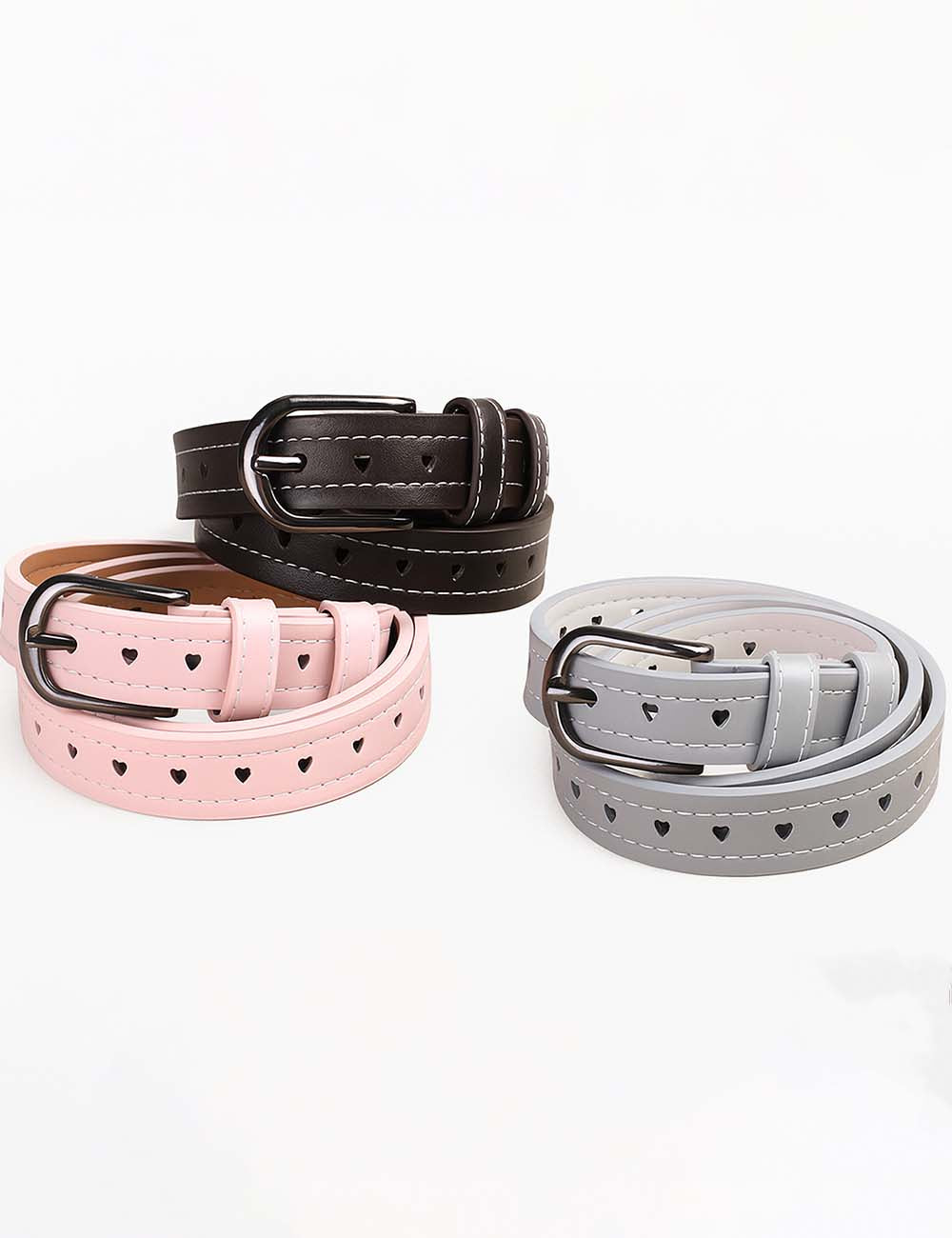 Ladies Metal Buckle Heart Cut-Out Faux Leather Waist Belt