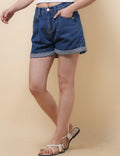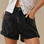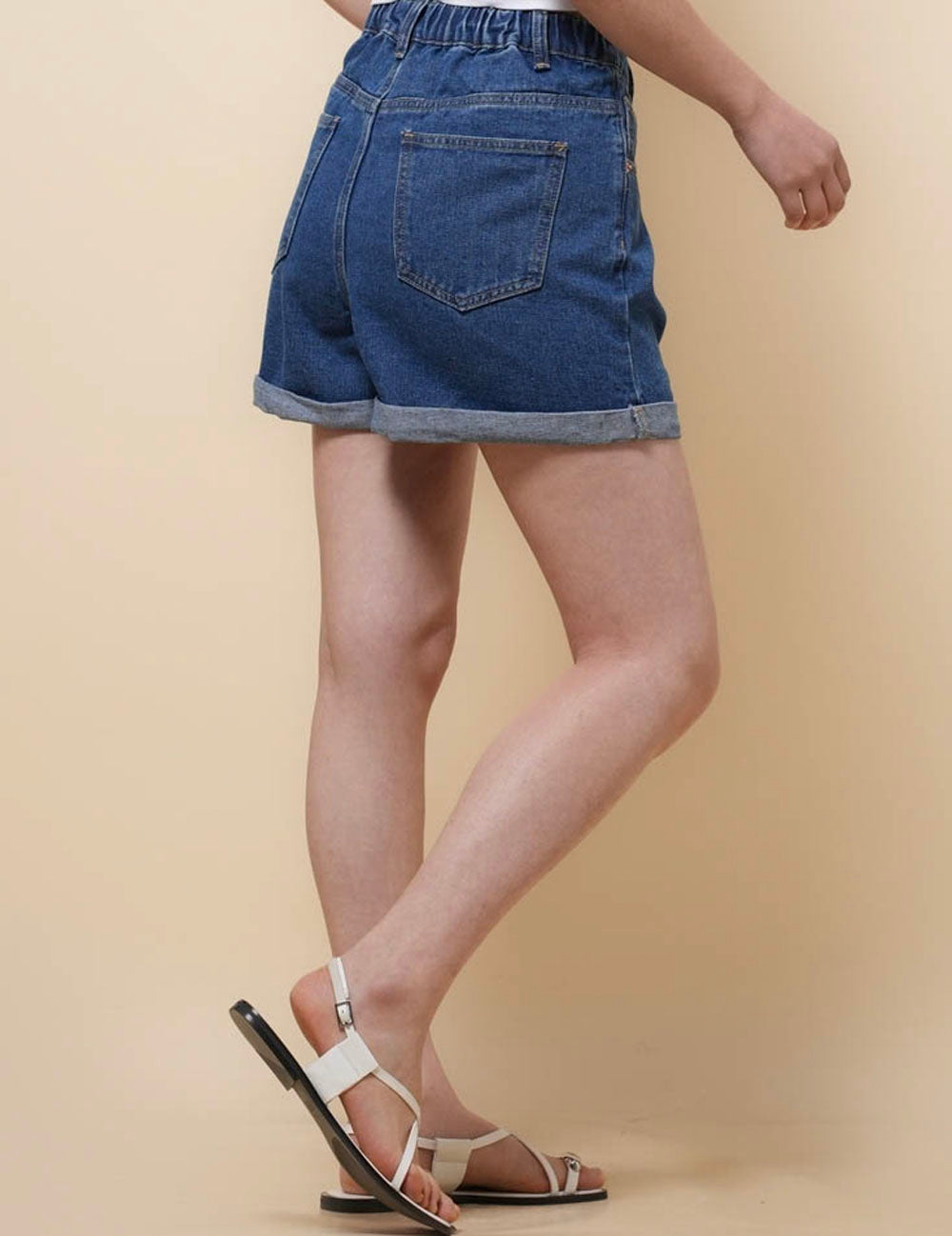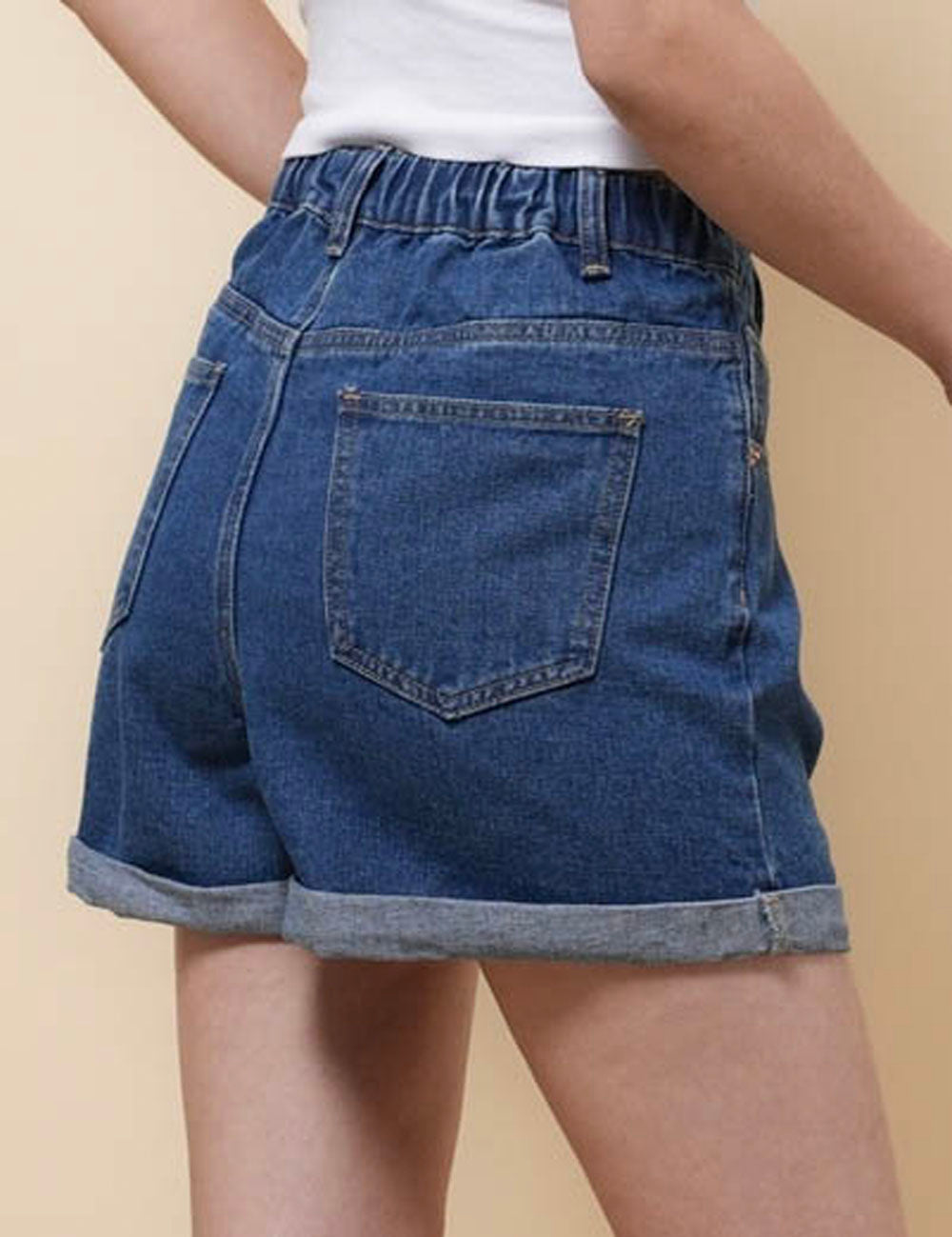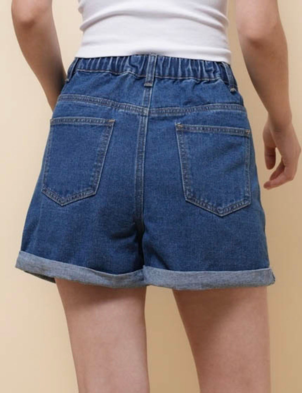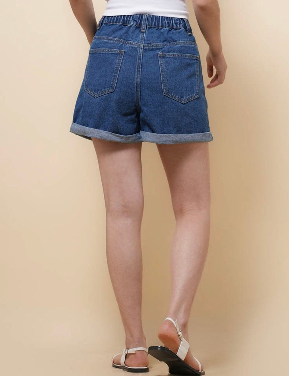 Ladies Mid Waist Straight Leg Denim Shorts SKS51293