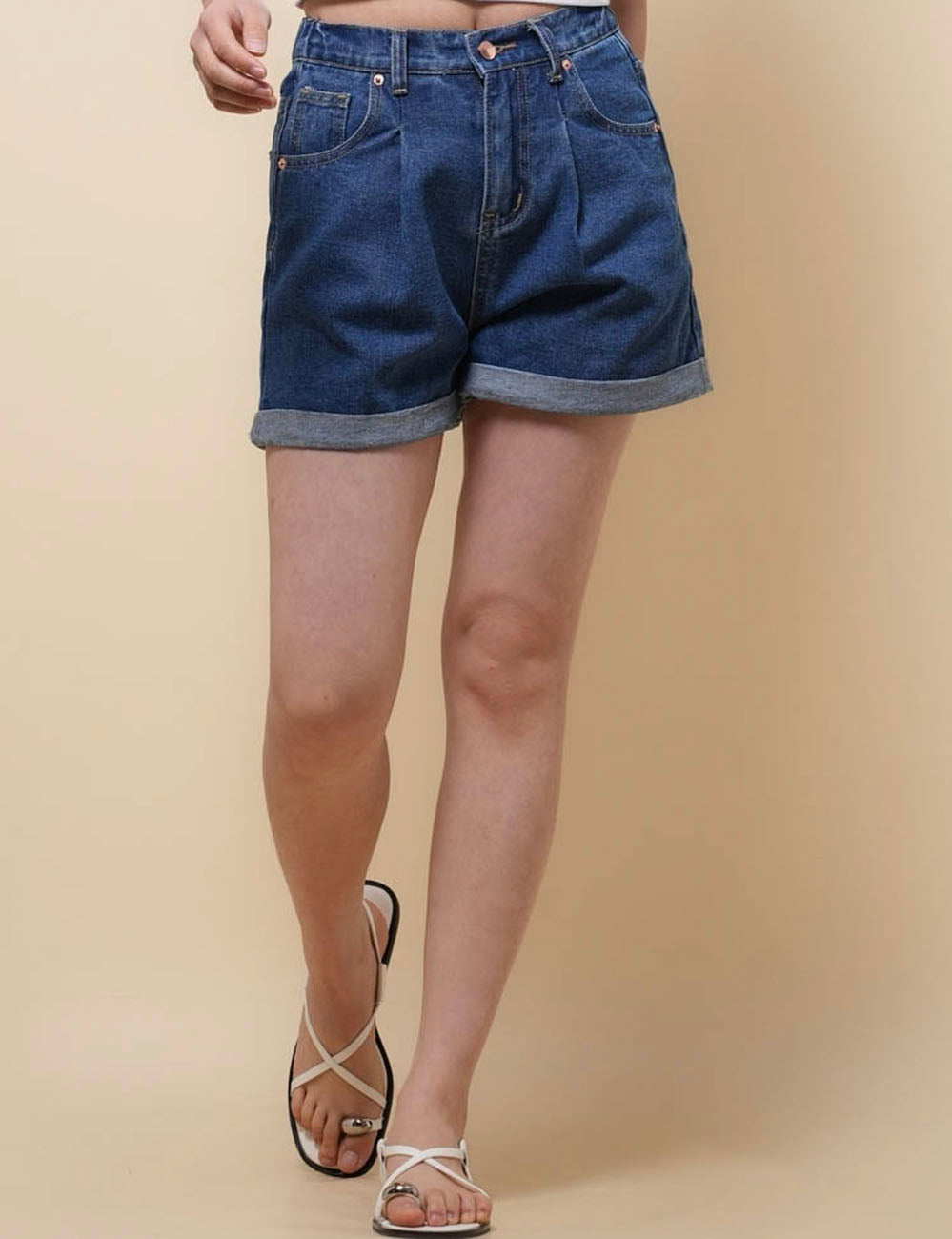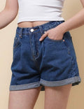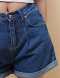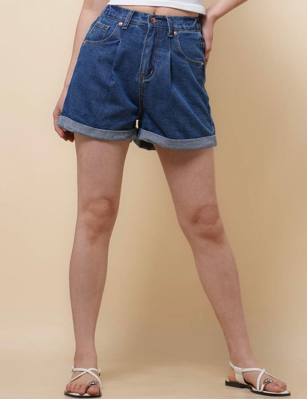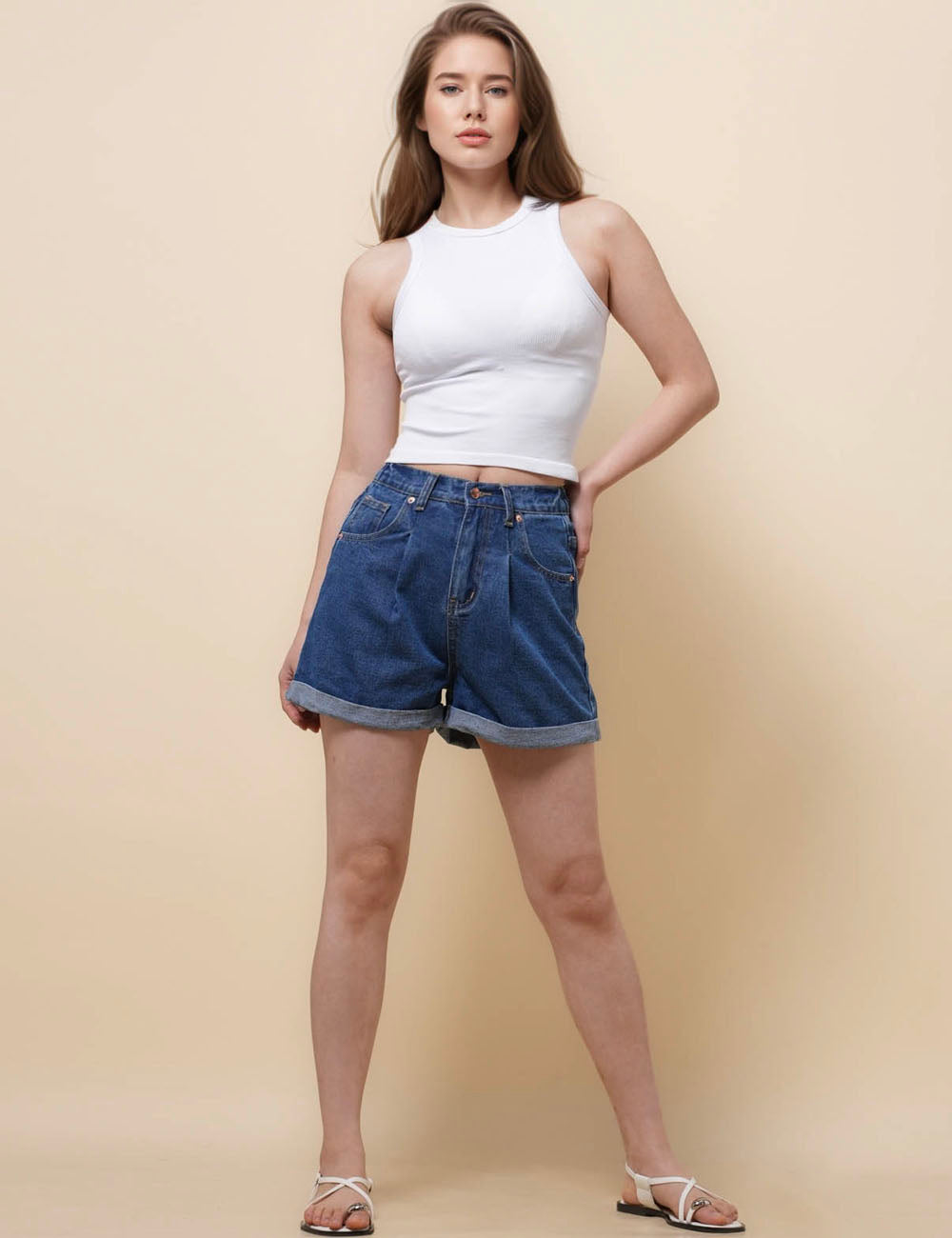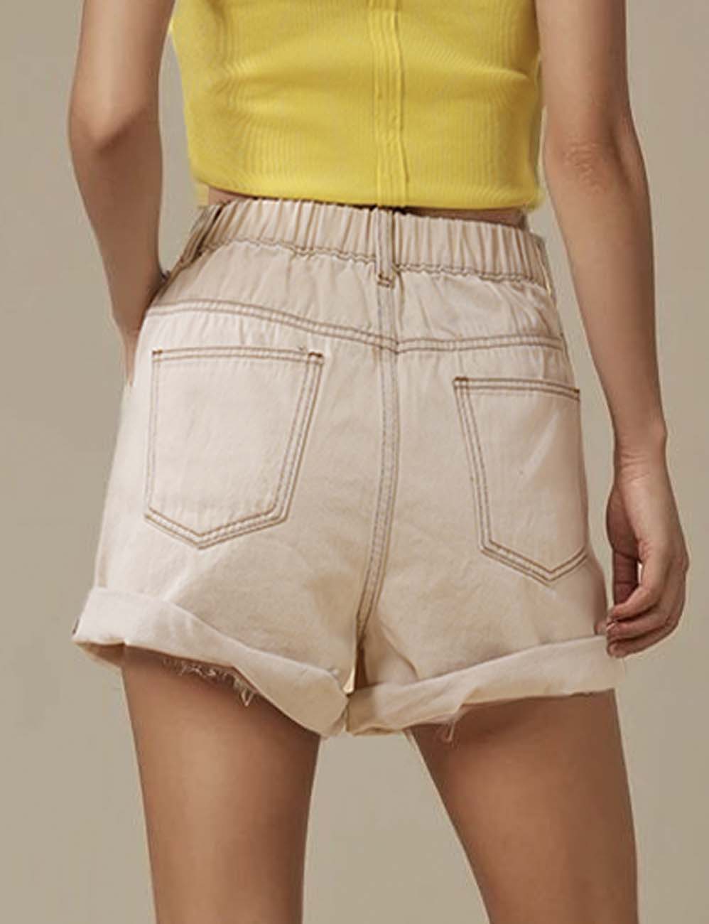 Ladies Mid Waist Straight Leg Denim Shorts SKS51293
