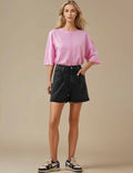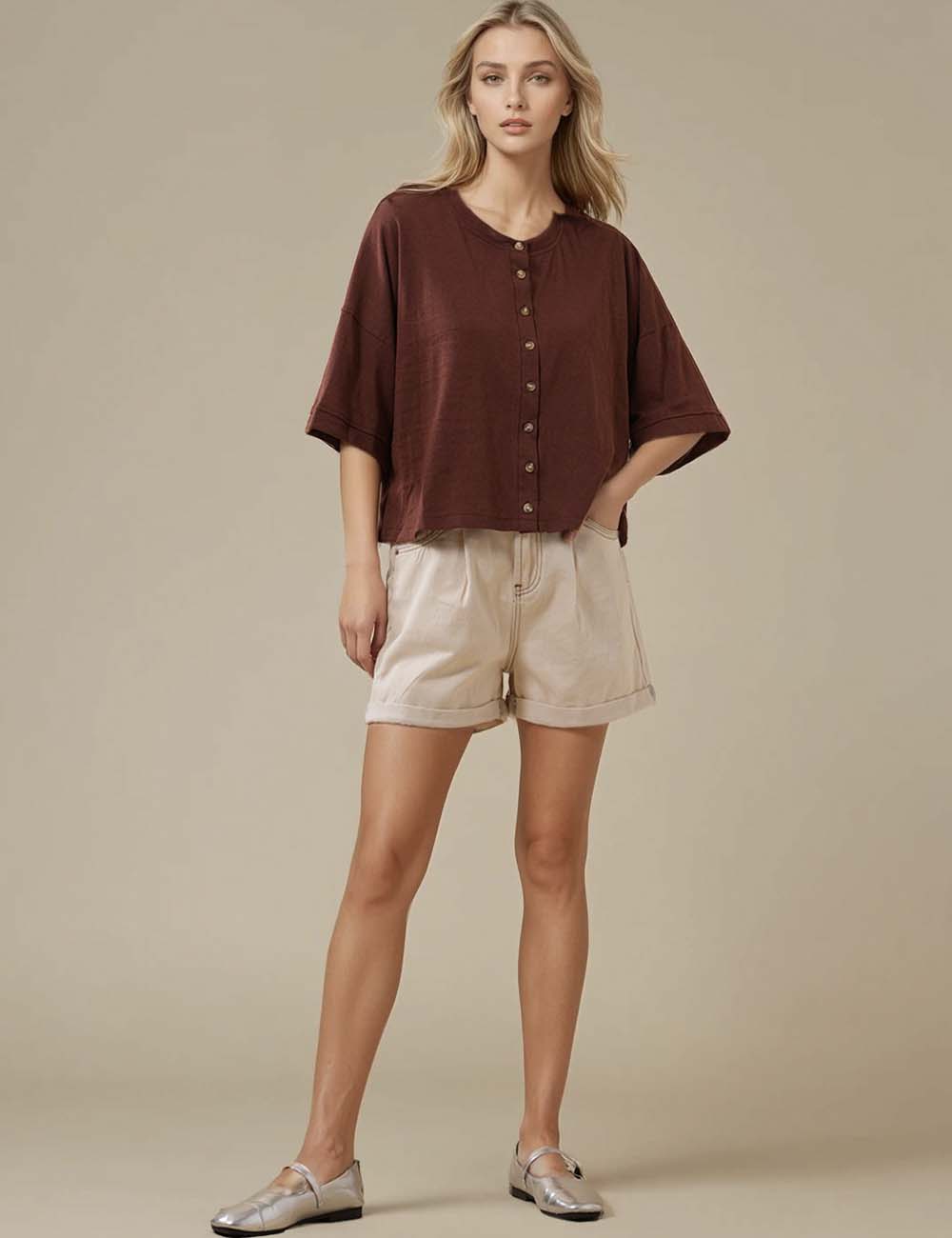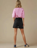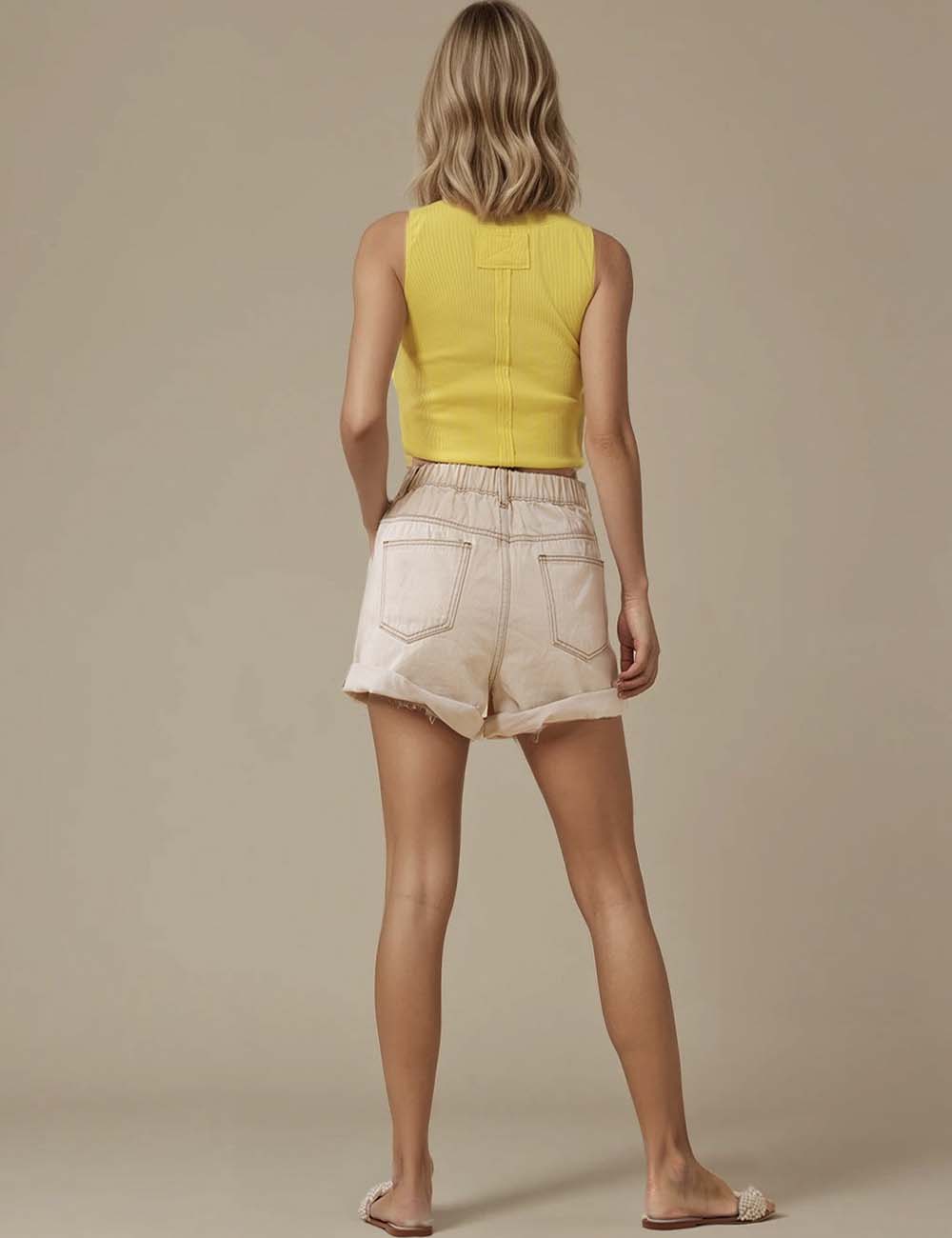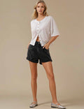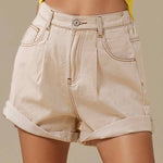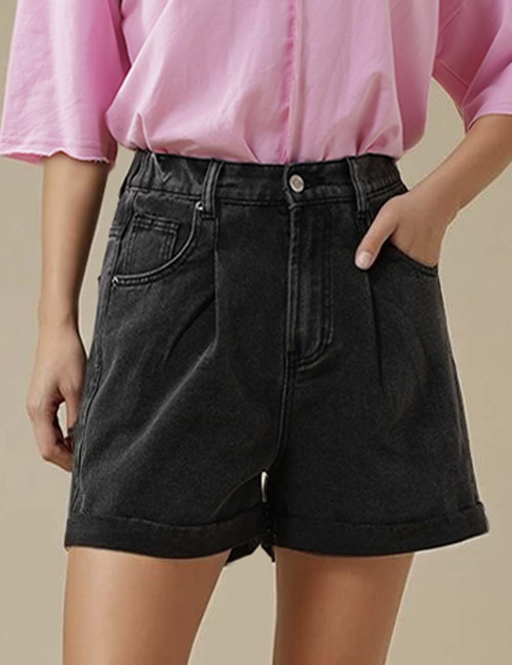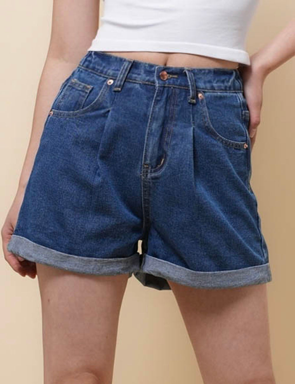 Ladies Mid Waist Straight Leg Denim Shorts SKS51293