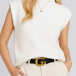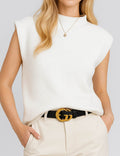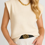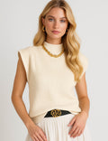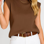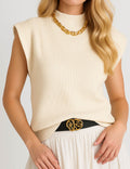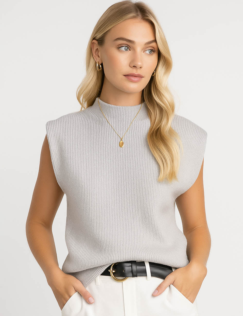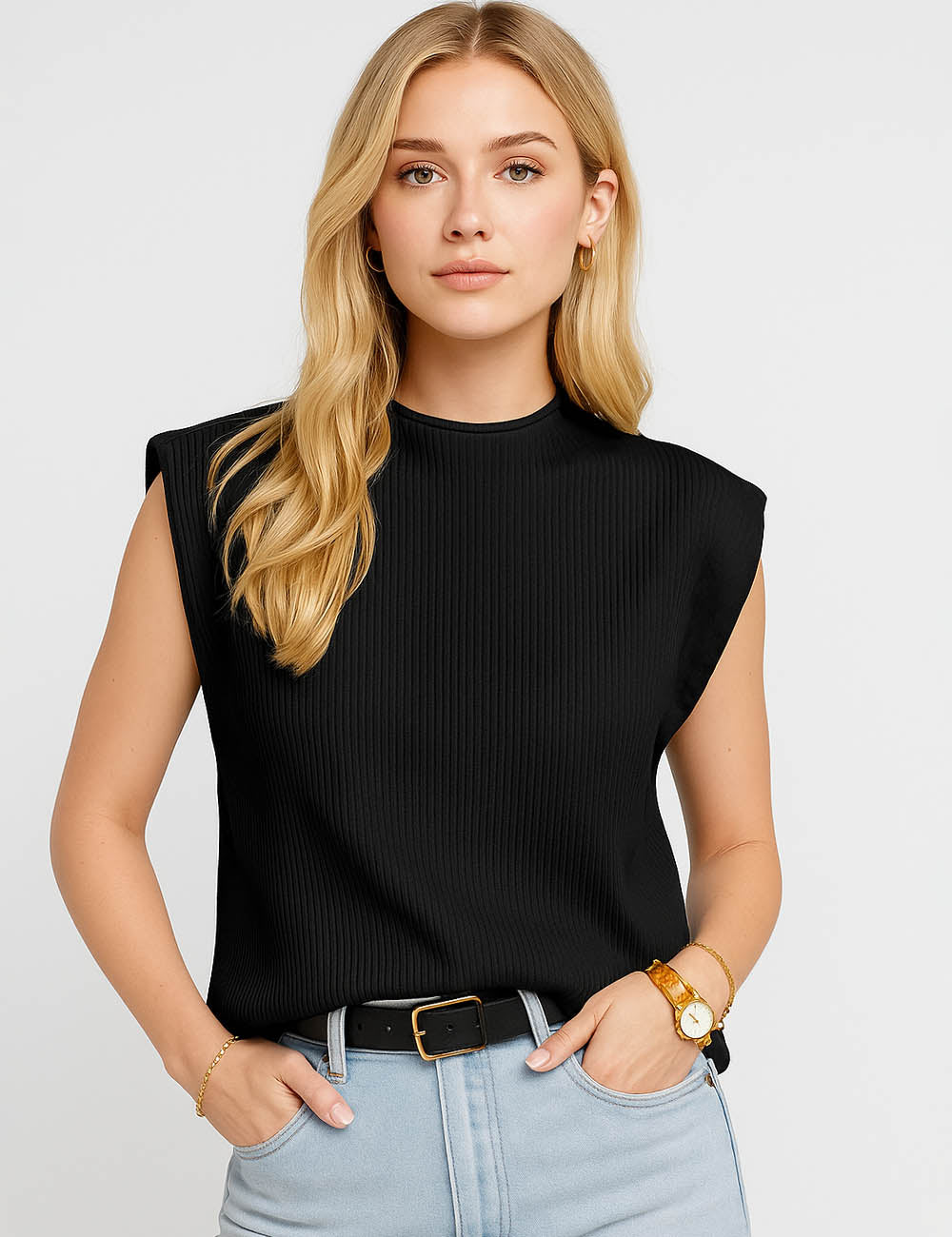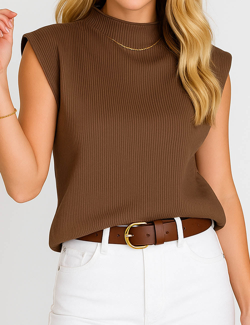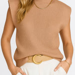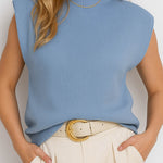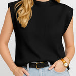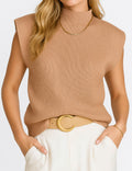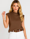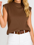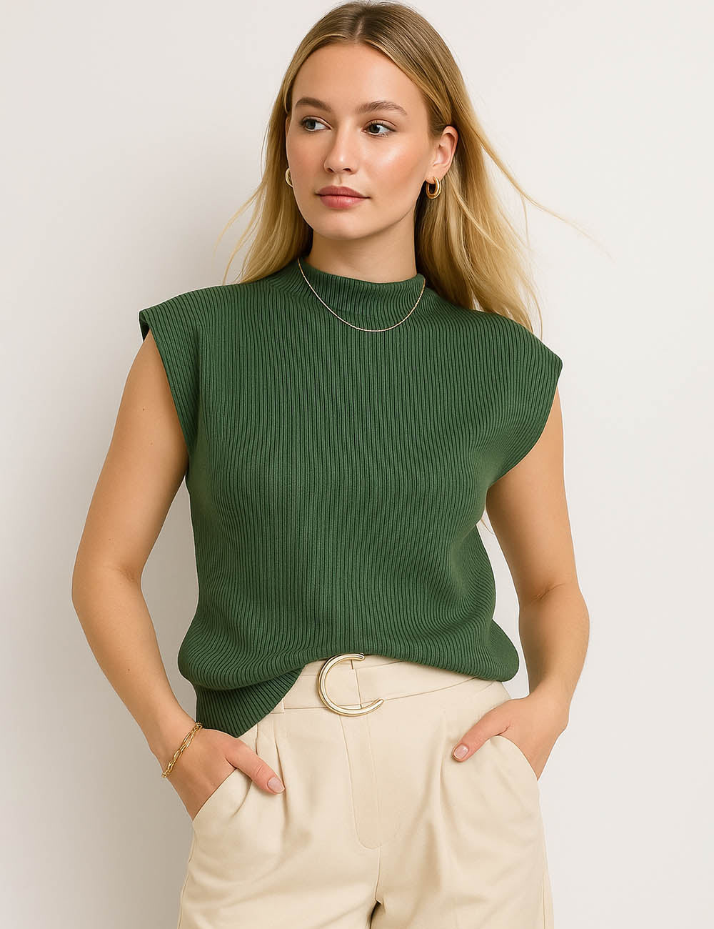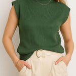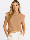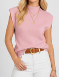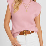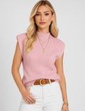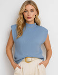Ladies Mock Collar Cap Sleeves Rib Knit Sweater Top