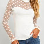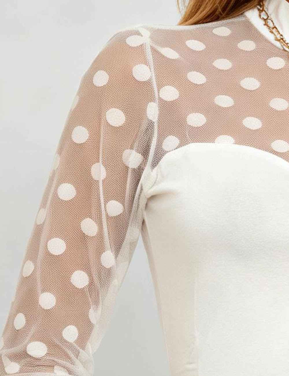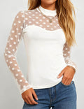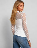 Ladies Mock Neck Dot Mesh Panel Sheer Layering Top