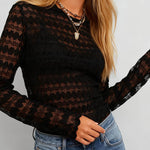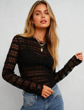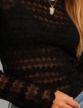 Ladies Mock Neck Sheer Heart Lace Layering Top