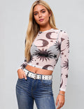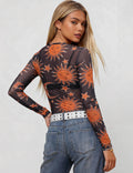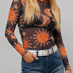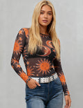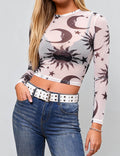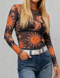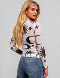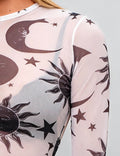 Ladies Moon Sun Star Blouse See Sheer Mesh Layring Top SKT4940