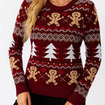 Ladies Multi Color Christmas Jacquard Pattern Pullover Sweater
