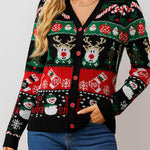 Ladies Multi Color Christmas Pattern Jacquard Sweater Cardigan