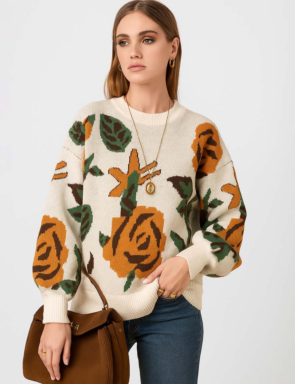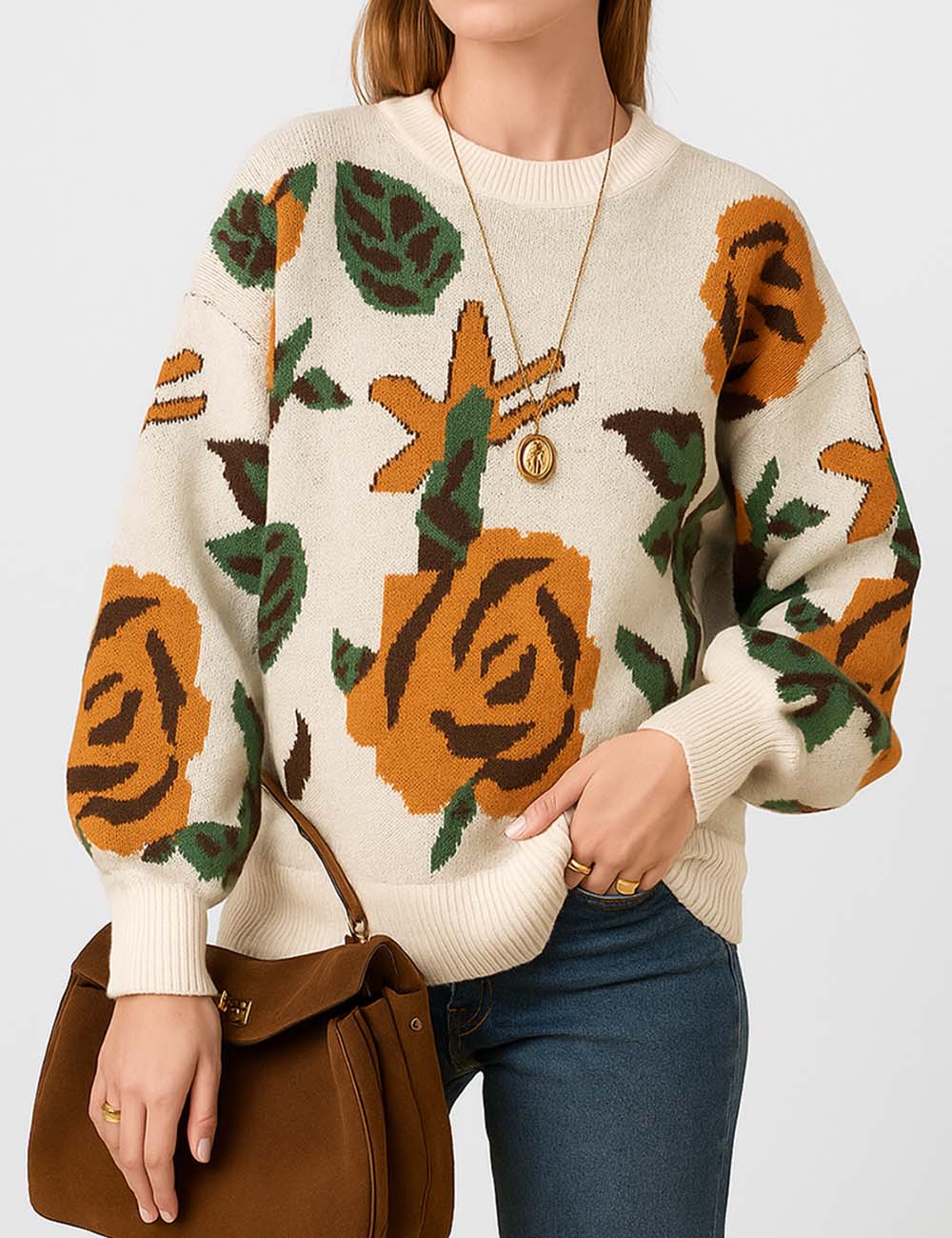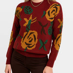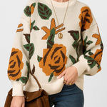 Ladies Multi Color Floral Print Long Sleeves Knit Sweater
