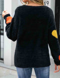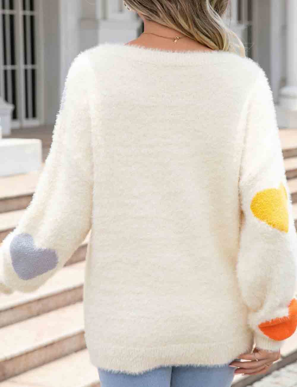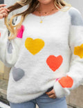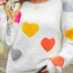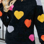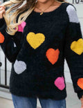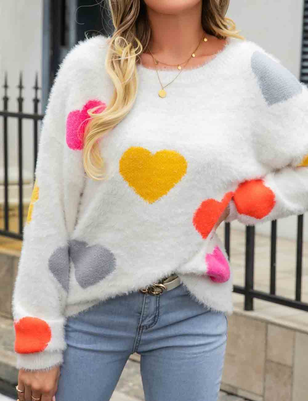 Ladies Multi Color Heart Print Round Collar Knit Sweater