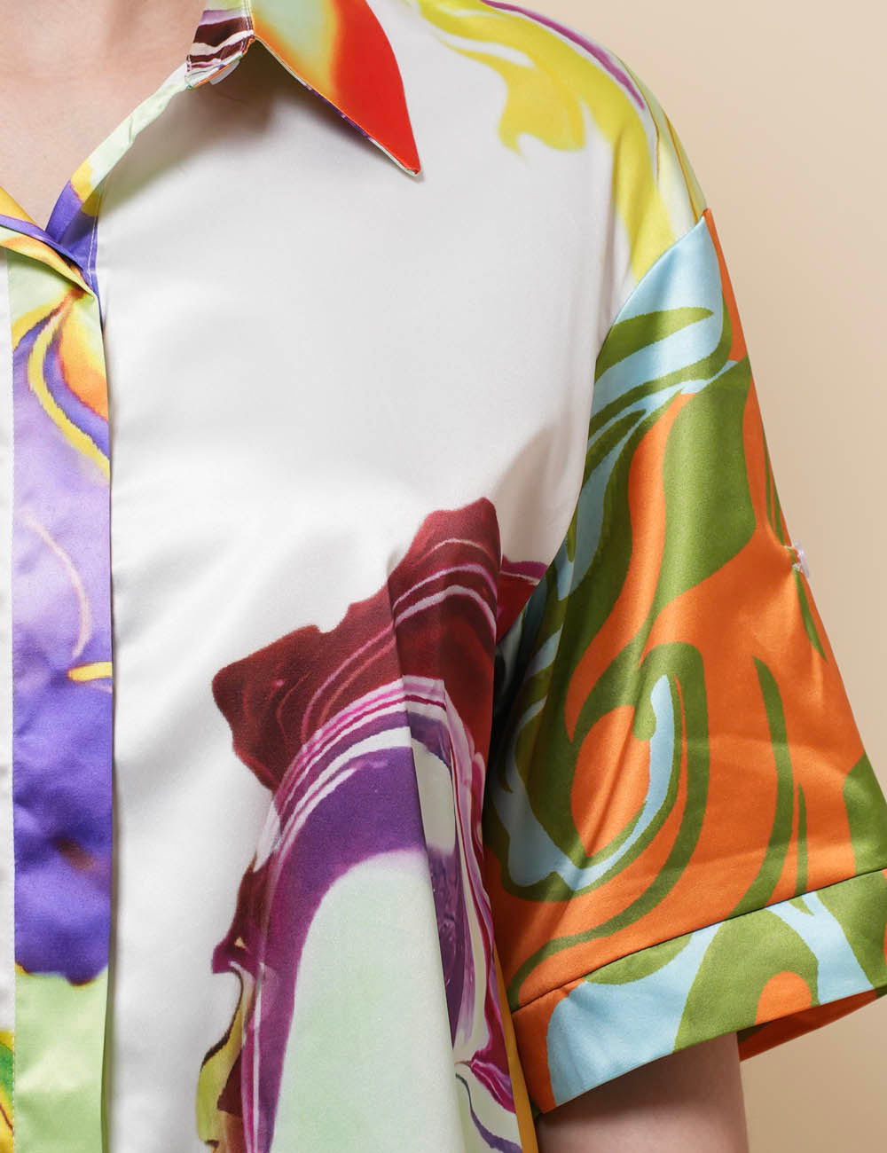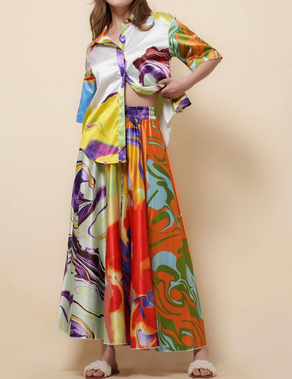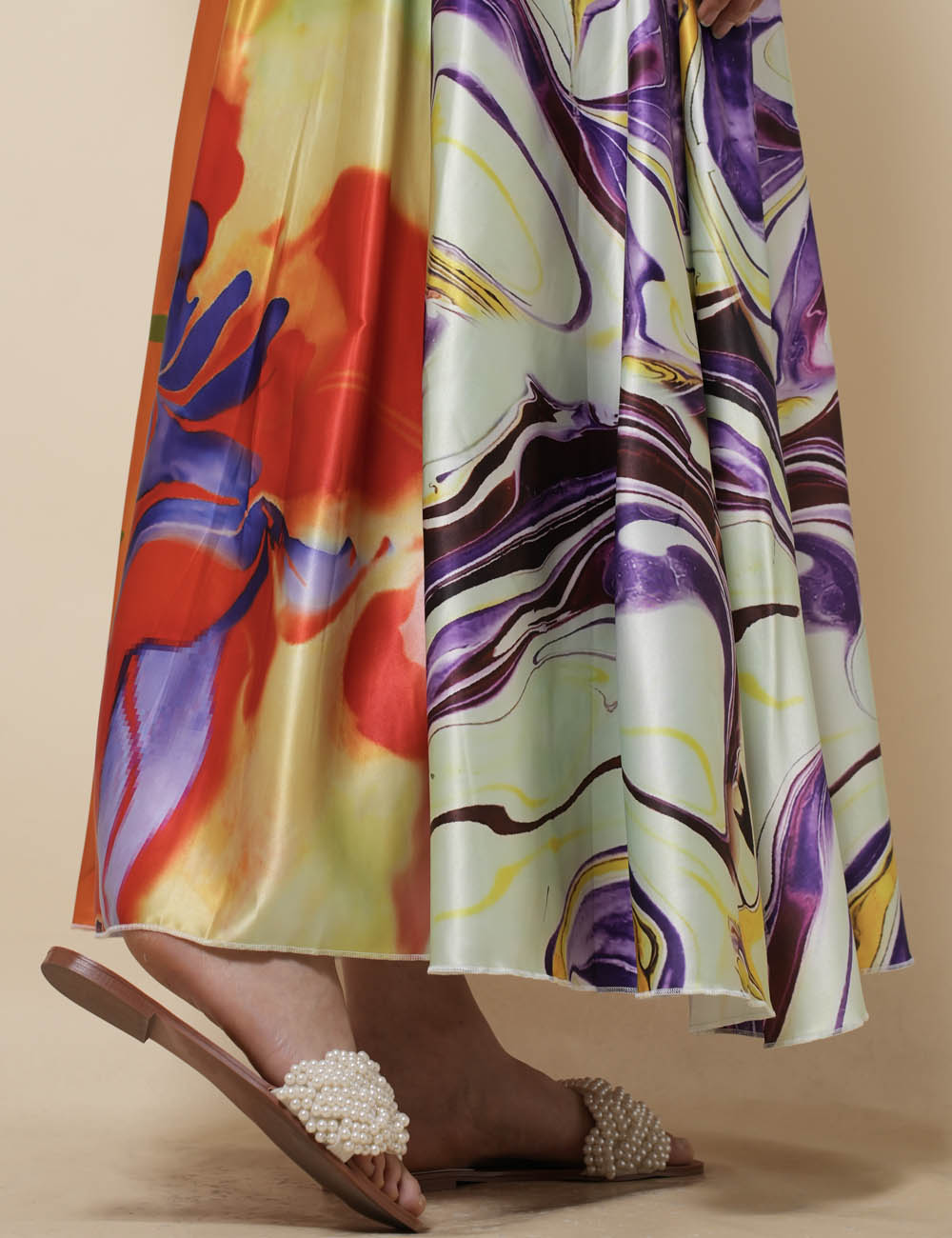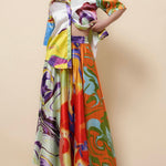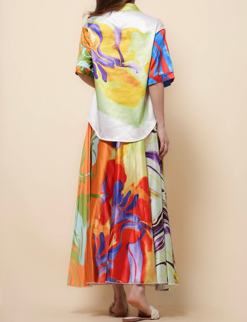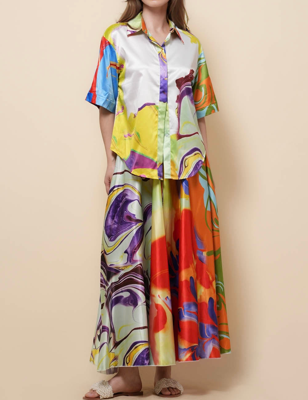 Ladies Multi Color Mid Sleeves Print Top & Skirt Set SKST51276