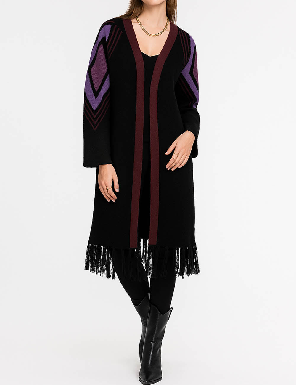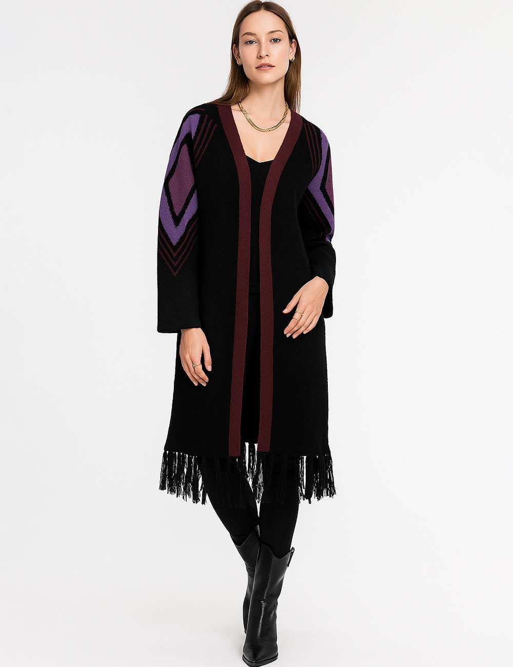 Ladies Multi Color Open Front Long Sleeves Tassel Cardigan