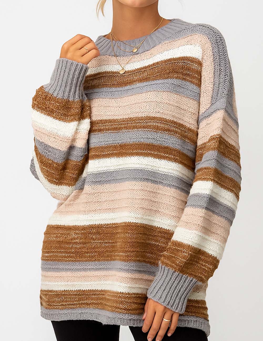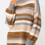 Ladies Multi Color Round Collar Long Sleeves Knit Sweater