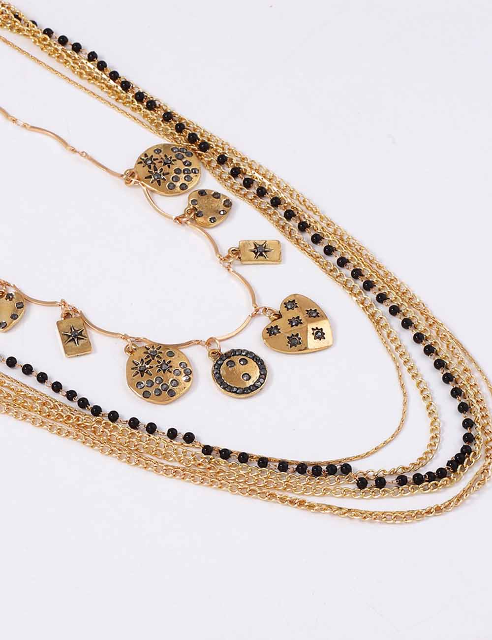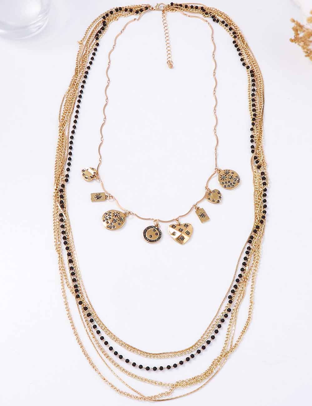 Ladies Multi Layer Beaded Chain Geometric Pendant Necklace