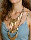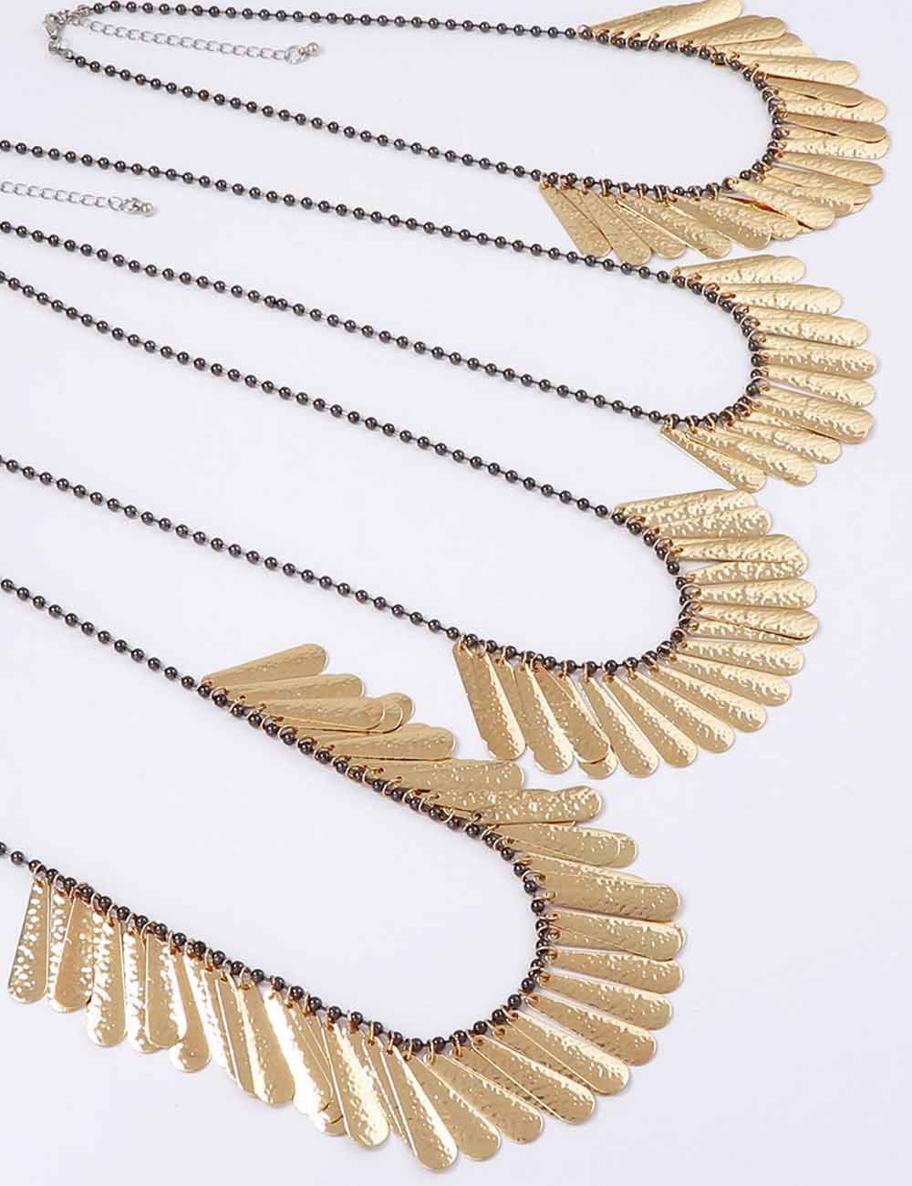 Ladies Multi Layer Paddle Fringe Pendant 4PCS Necklace Set