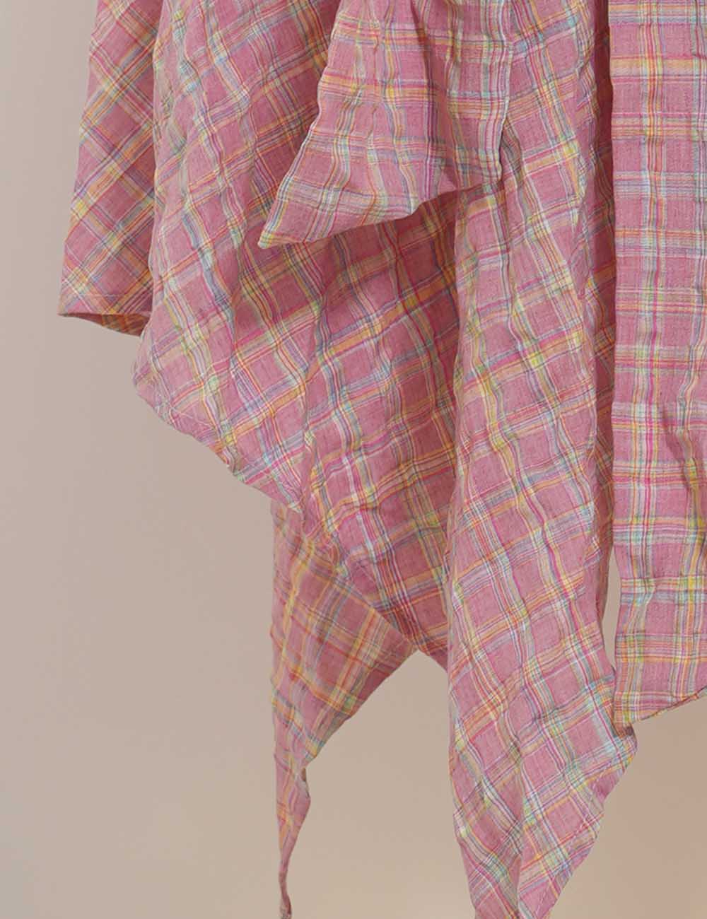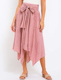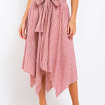 Ladies Multicolor Checked Bow Tie Irregular Hem Midi Skirt