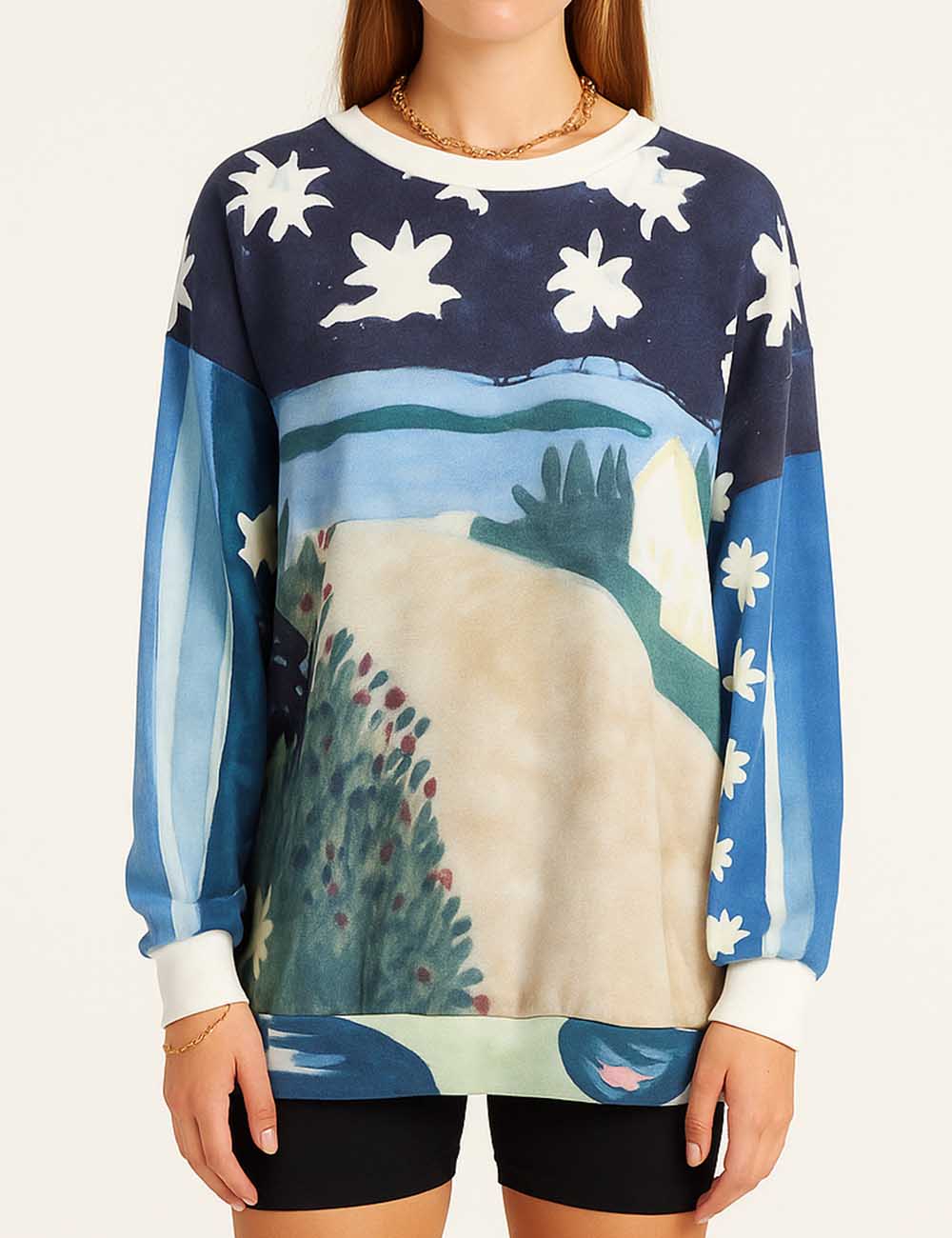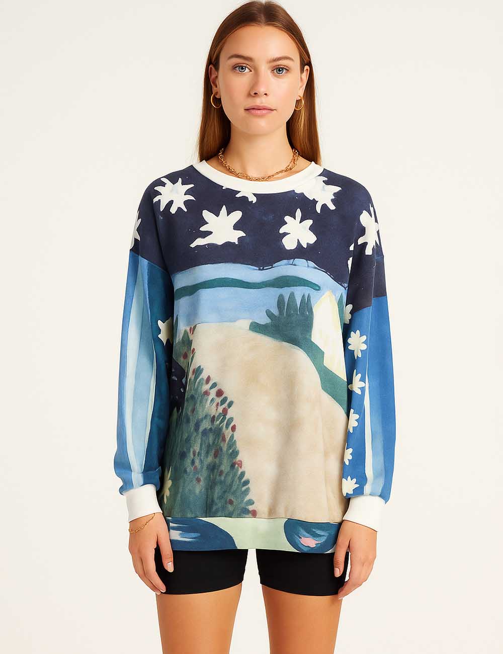 Ladies Multicolor Print Cozy Long Sleeves Sweatshirt