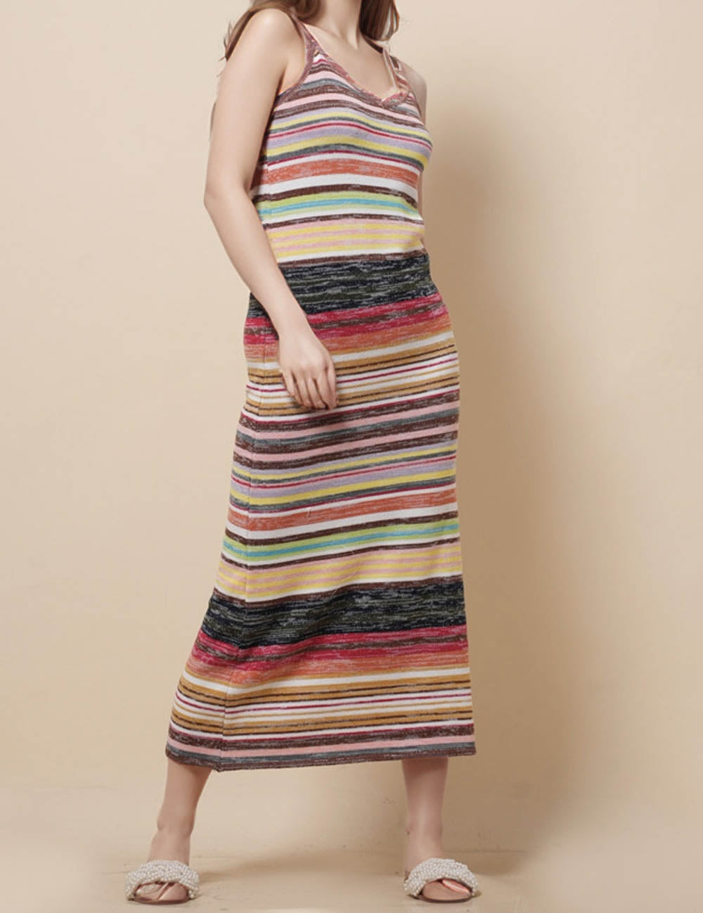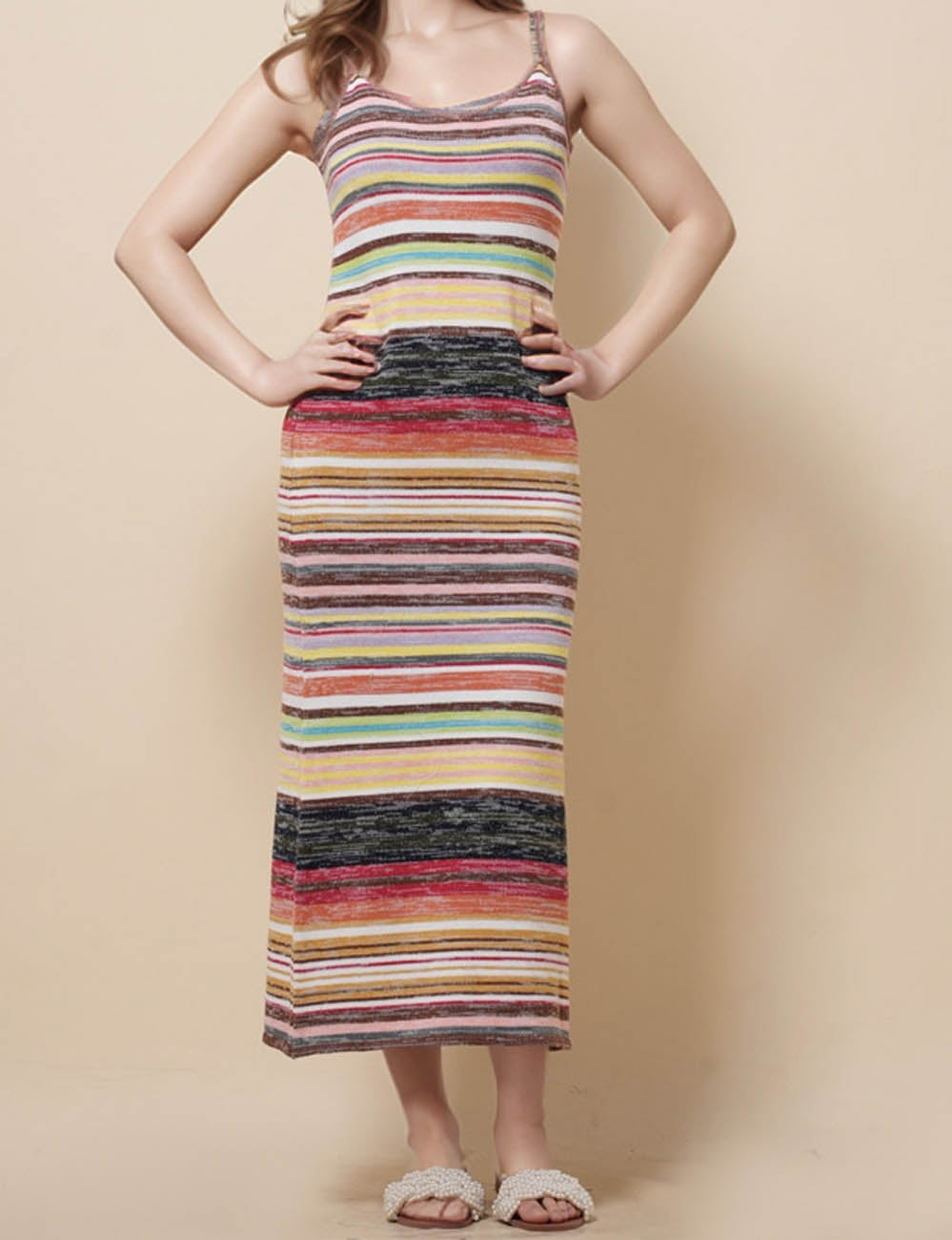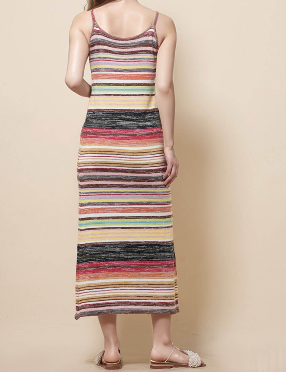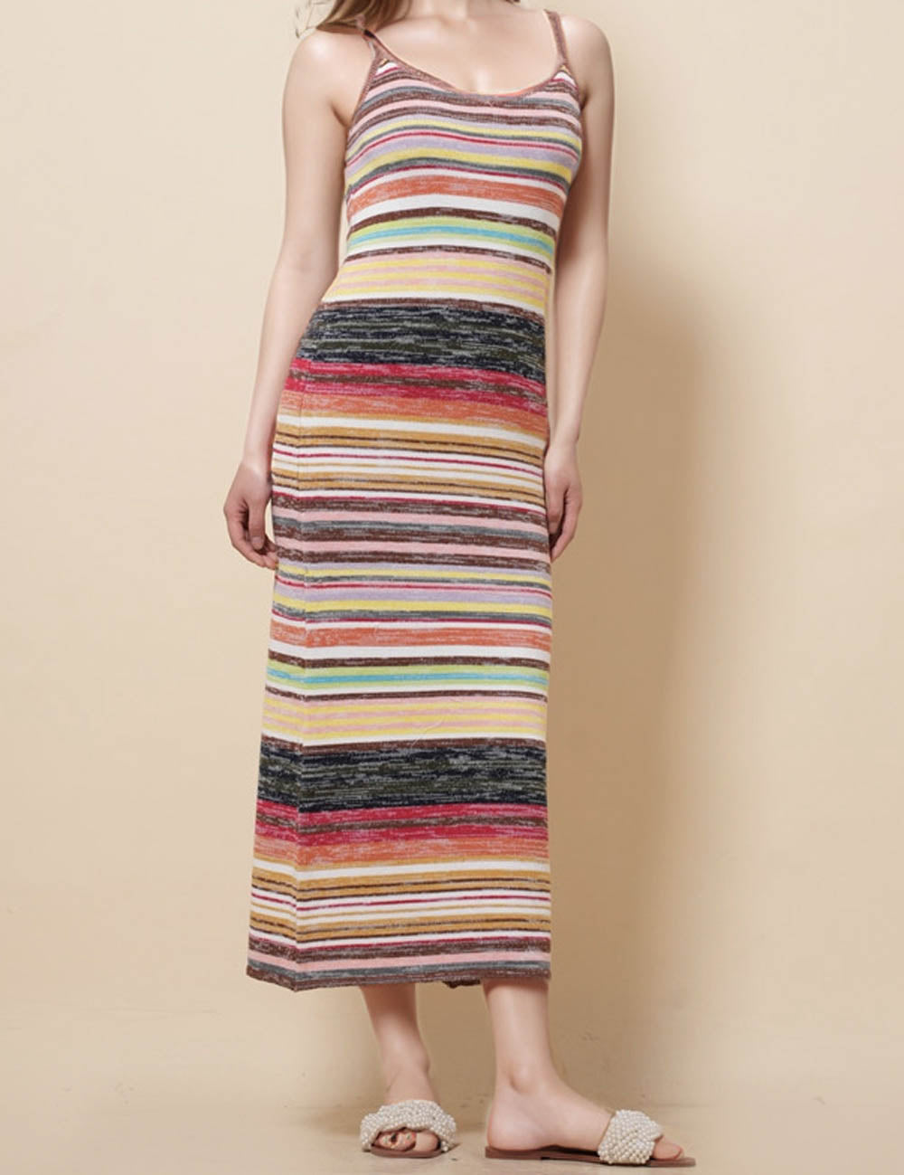 Ladies Multicolor Striped Knit Cami Midi Dress SKD51210