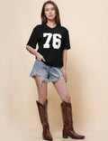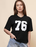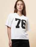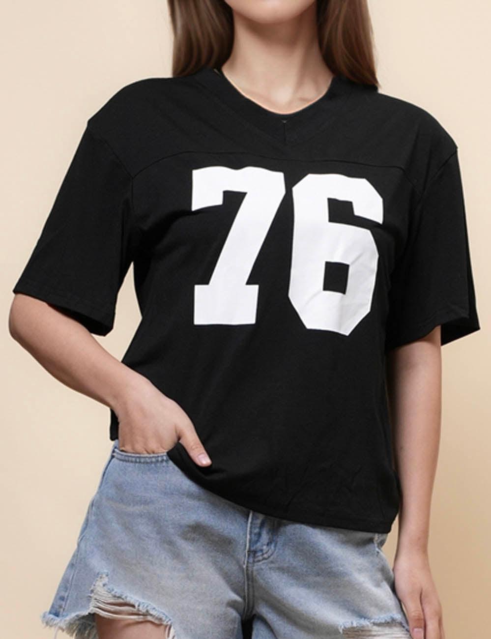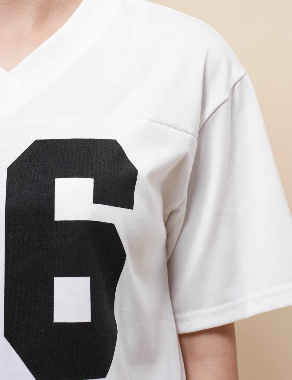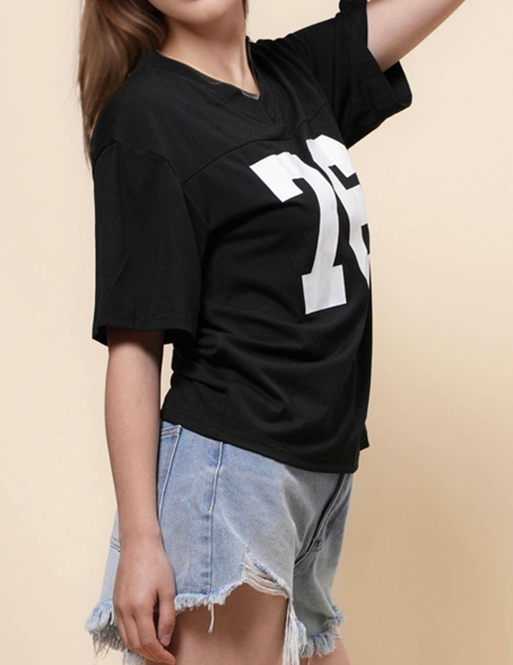 Ladies Number Print V-Neck Tee Short Sleeves T-Shirt SKT4988