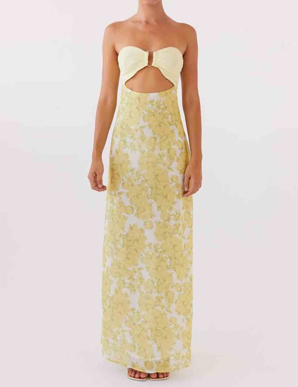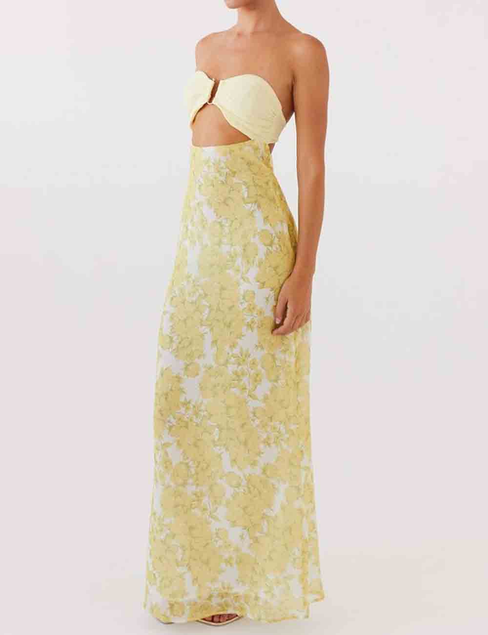 Ladies Off-Shoulder Cut Out Hip Wrap Maxi Dress