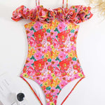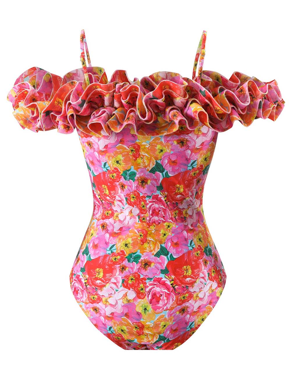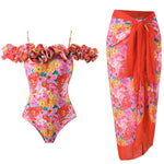 Ladies Off-Shoulder Floral Print One Piece Swimwear with Salong