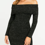 Ladies Off-Shoulder Long Sleeves Bodycon Mini Dress