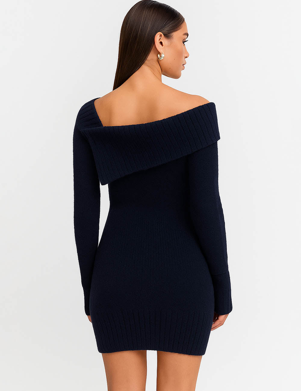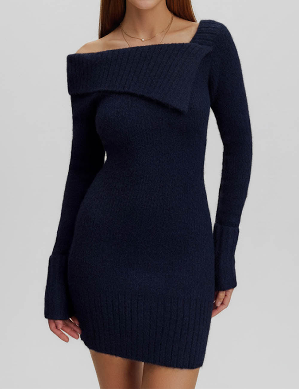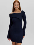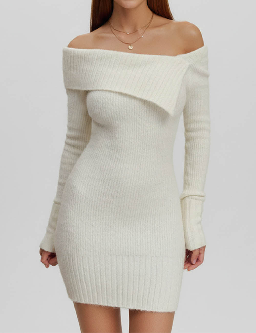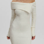 Ladies Off-Shoulder Hip Wrap Knit Mini Dress