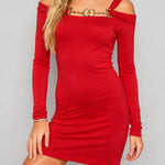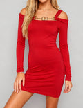 Ladies Off-Shoulder Metal Chain Strap Bodycon Mini Dress