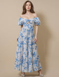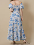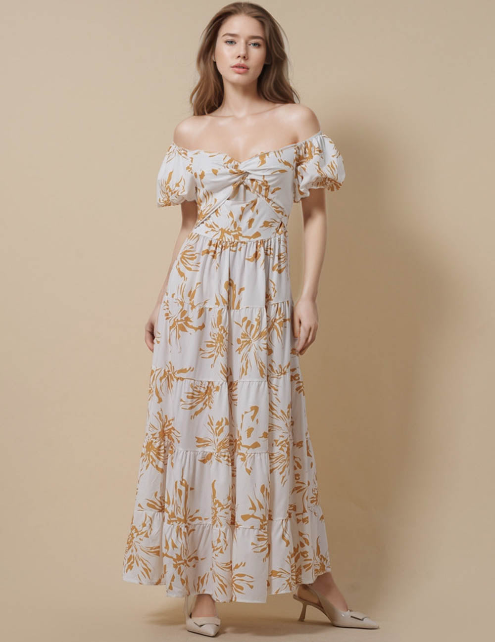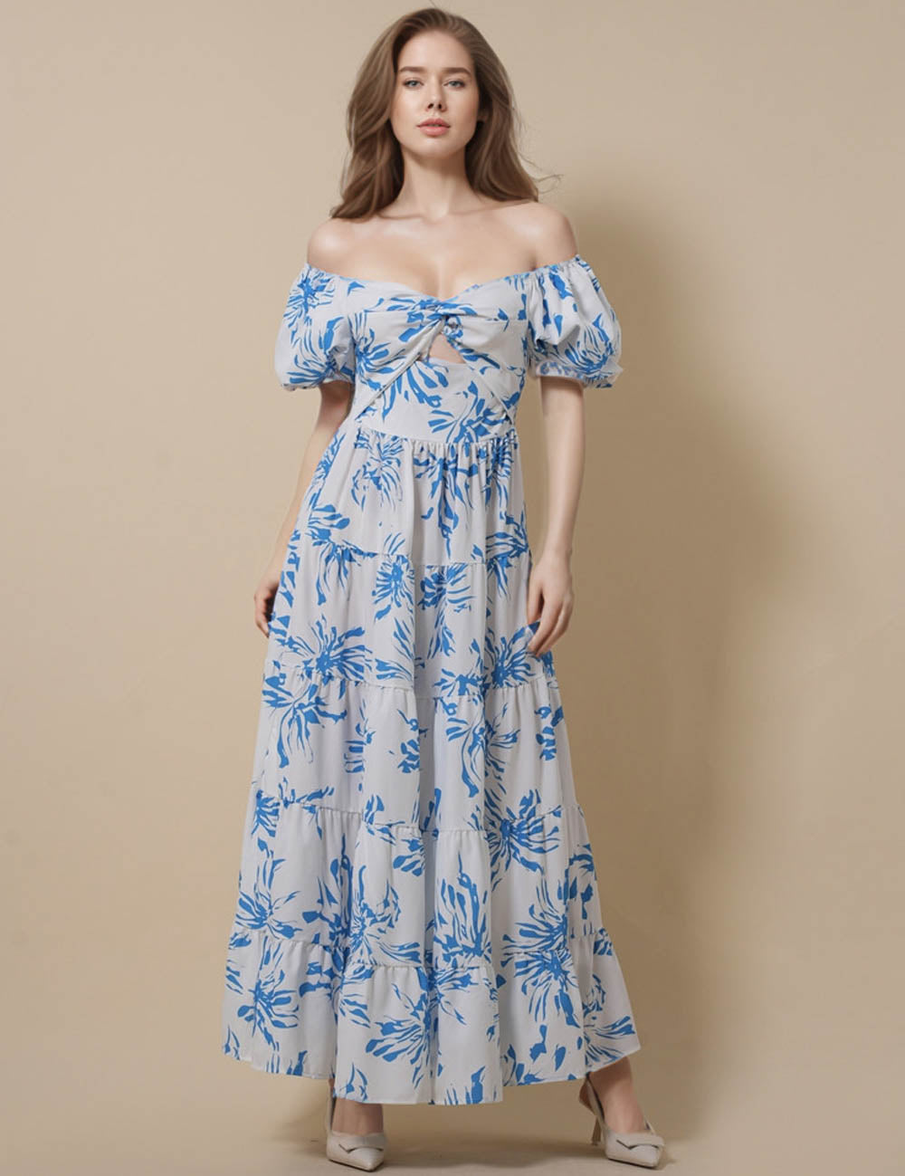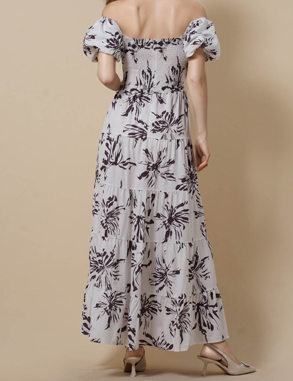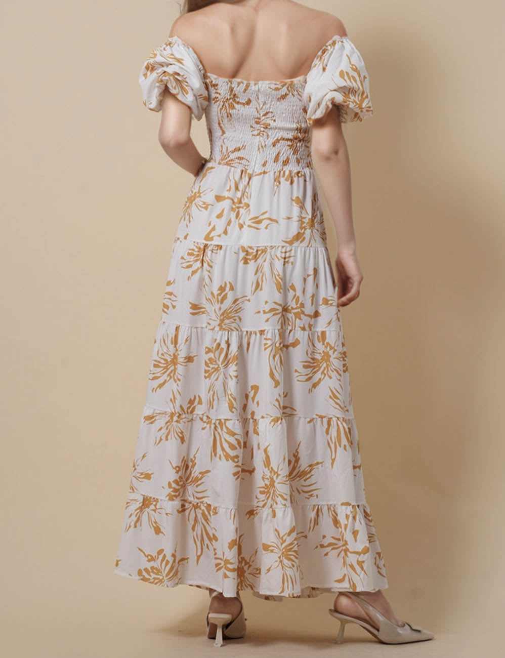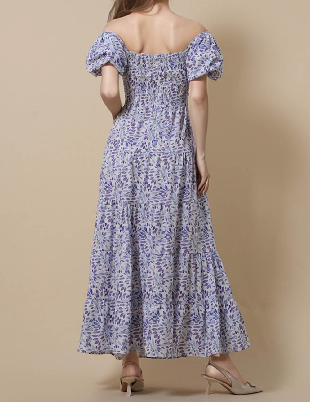 Ladies Off-Shoulder Puff Sleeves Floral Print Maxi Dress SKD51118