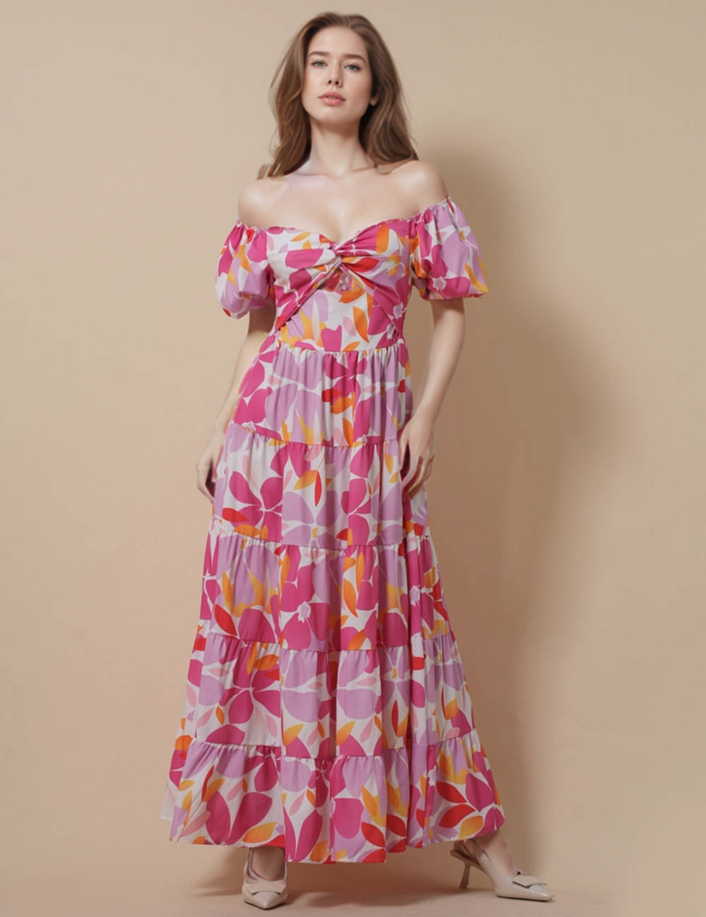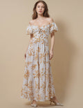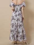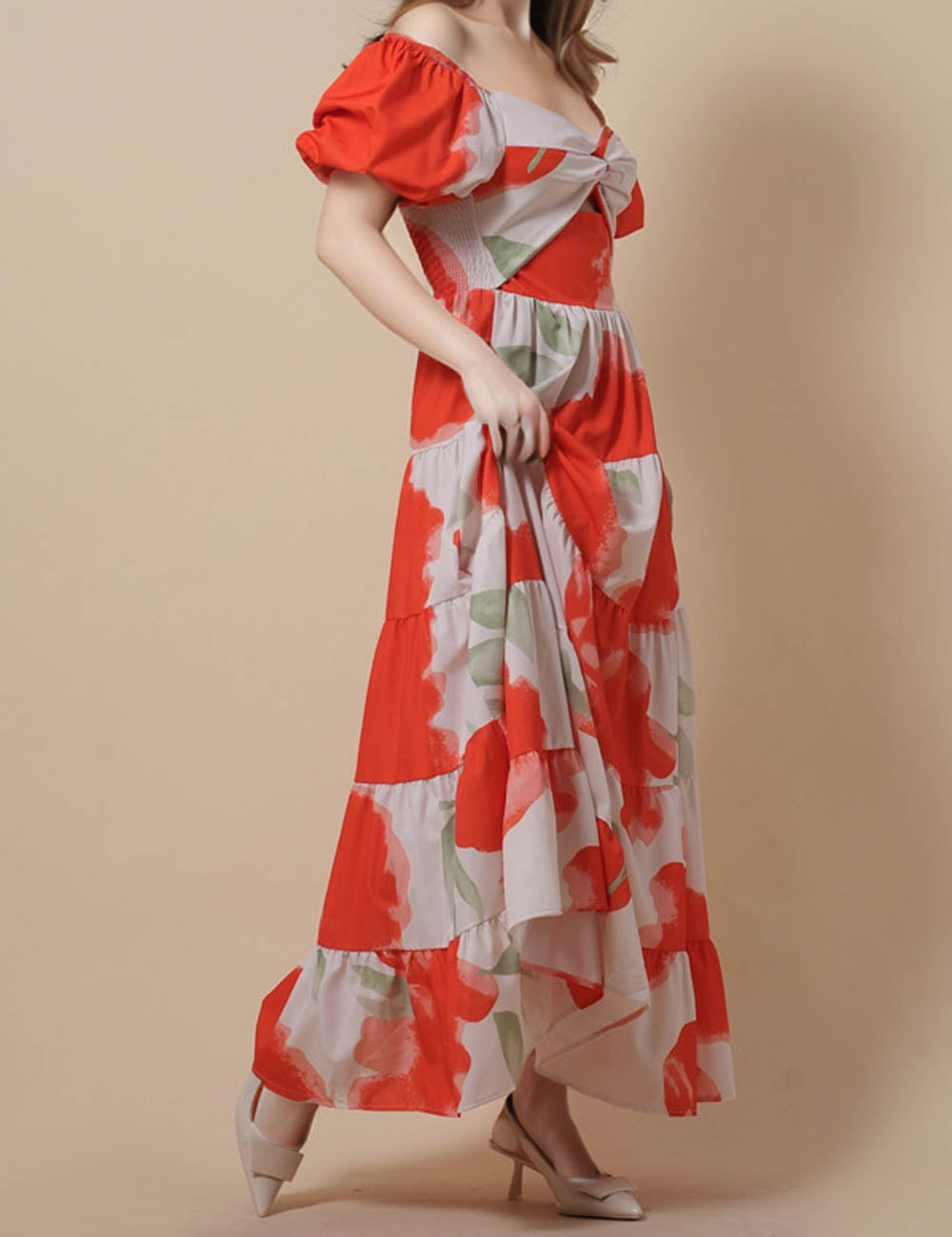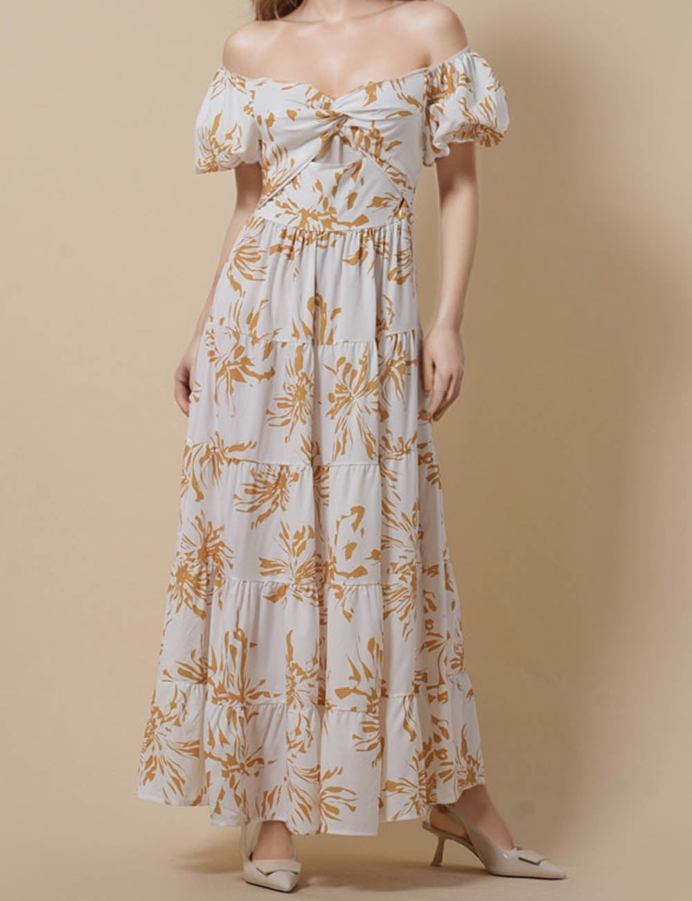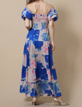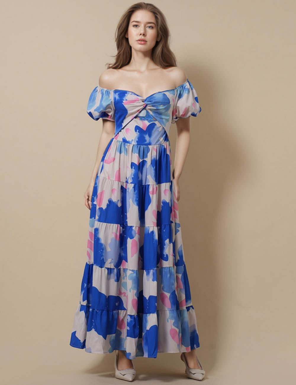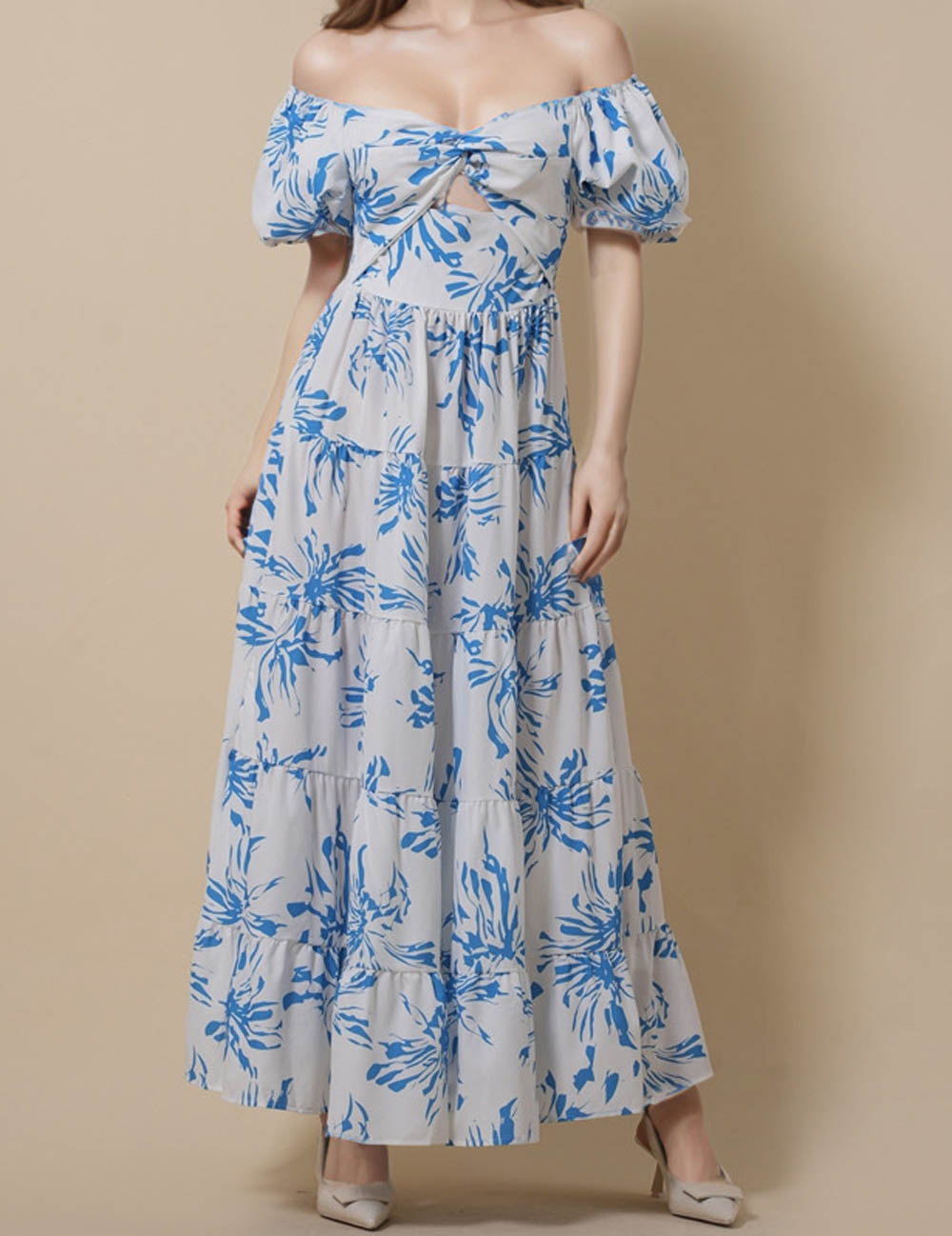 Ladies Off-Shoulder Puff Sleeves Floral Print Maxi Dress SKD51118