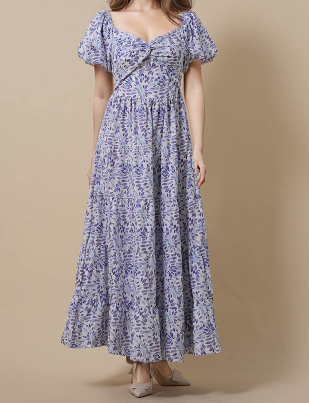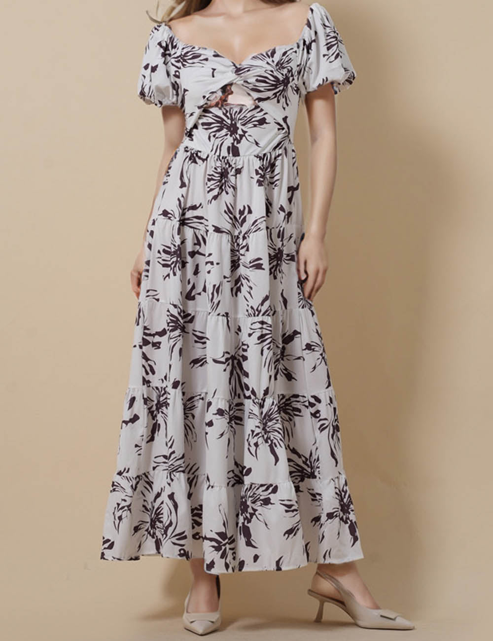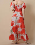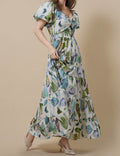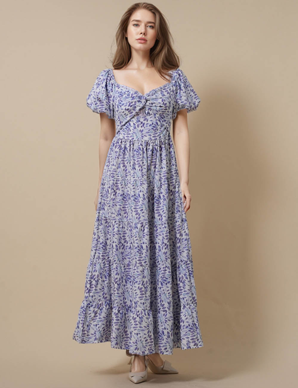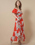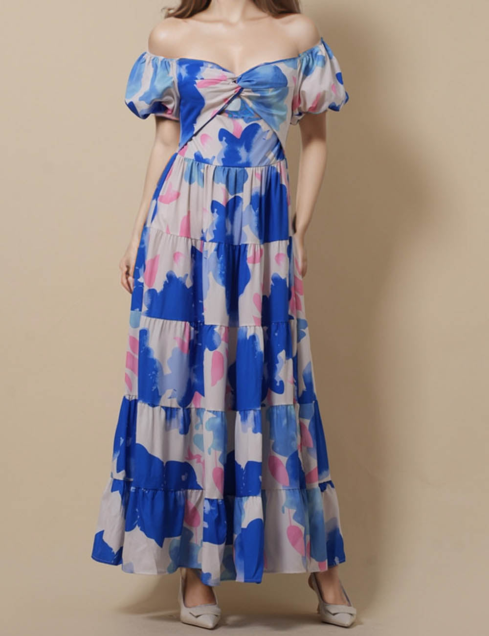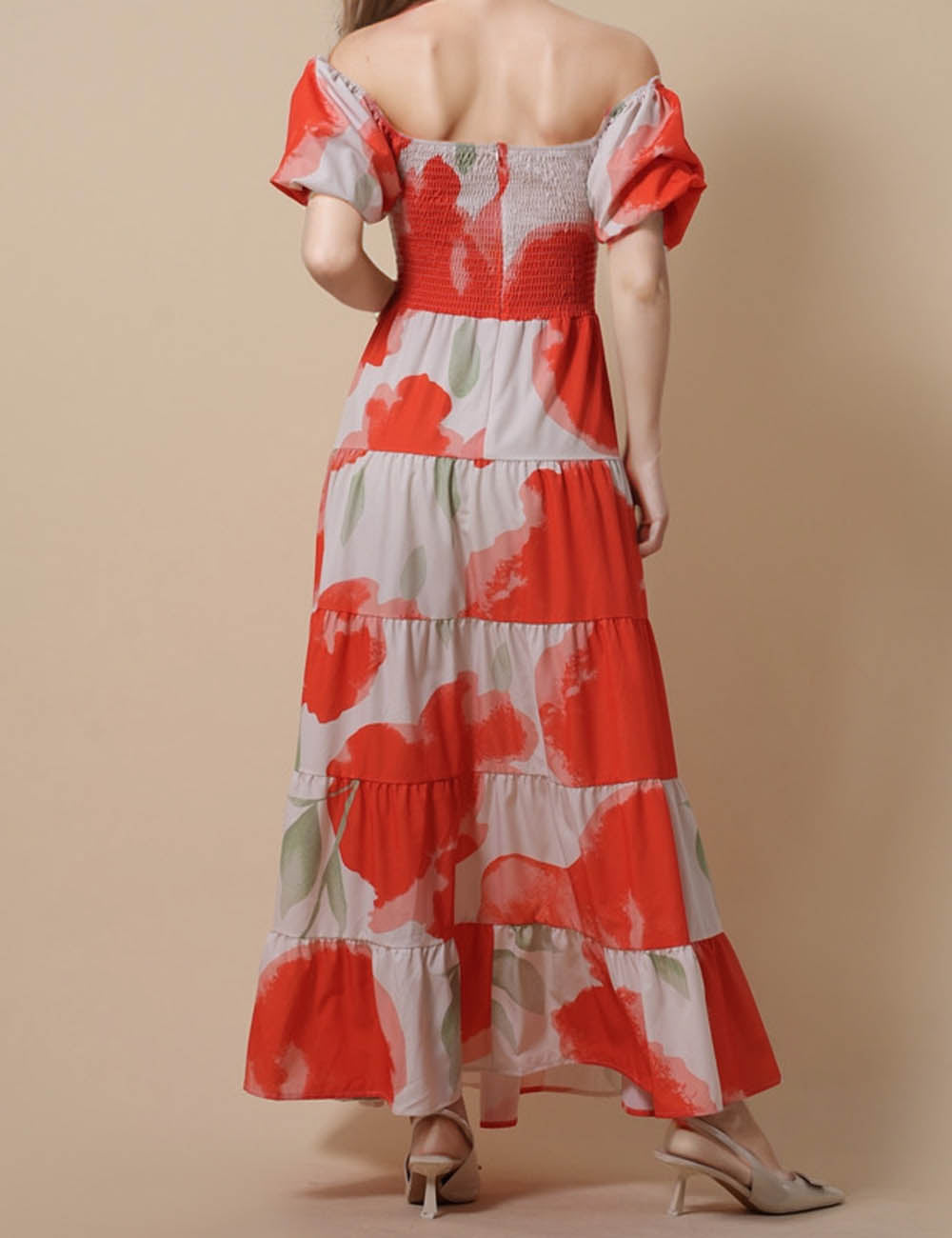 Ladies Off-Shoulder Puff Sleeves Floral Print Maxi Dress SKD51118