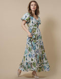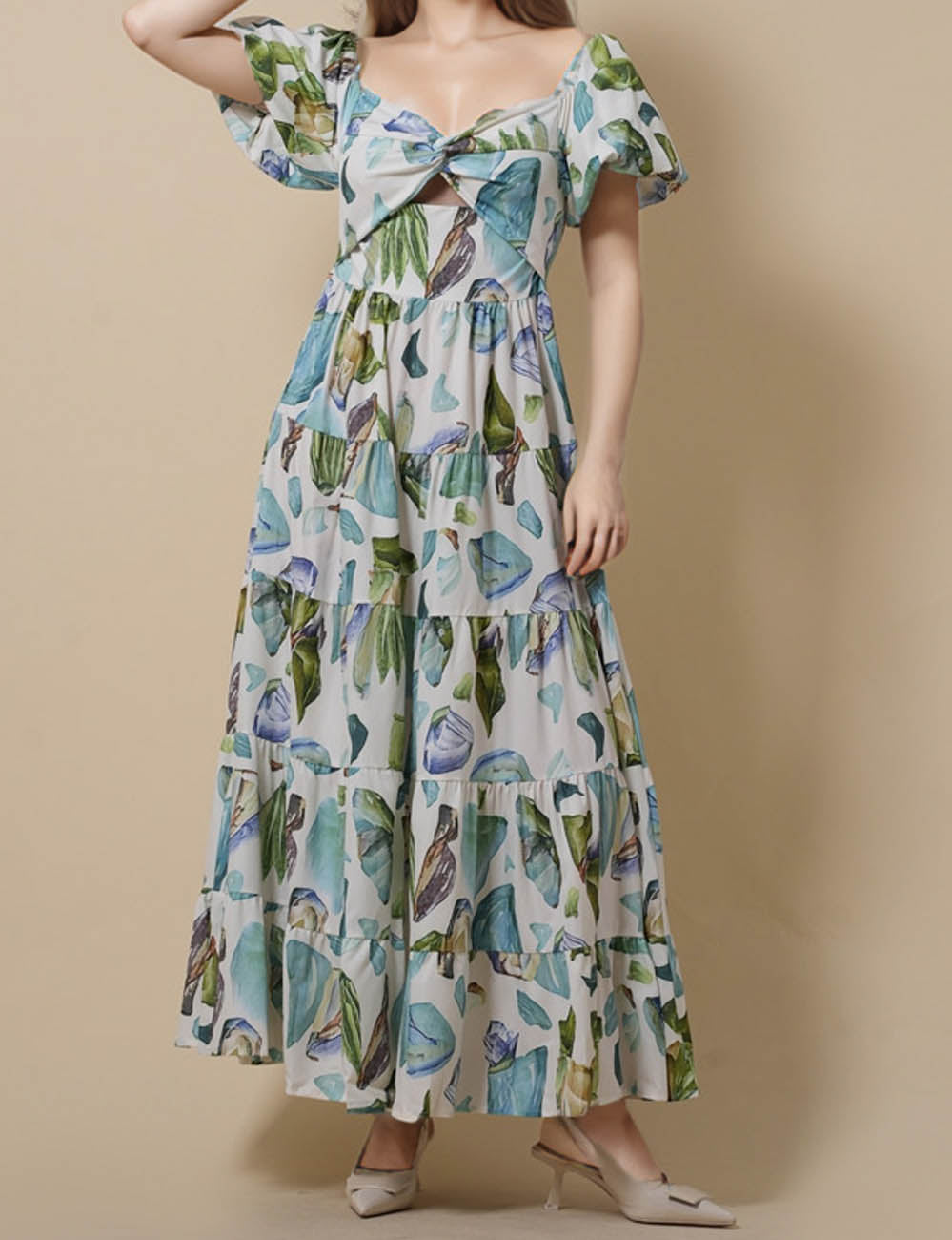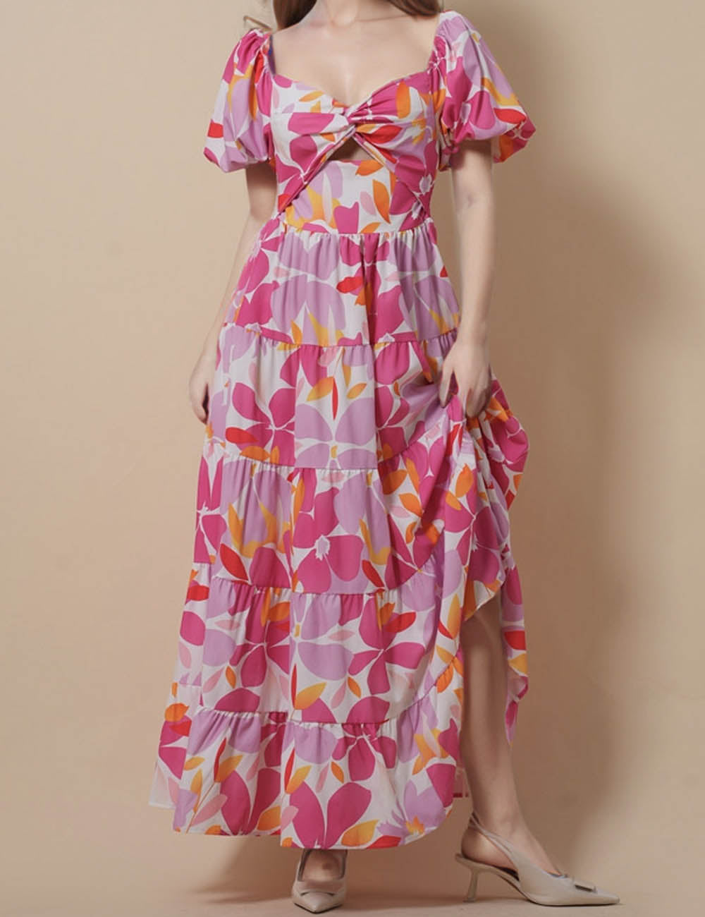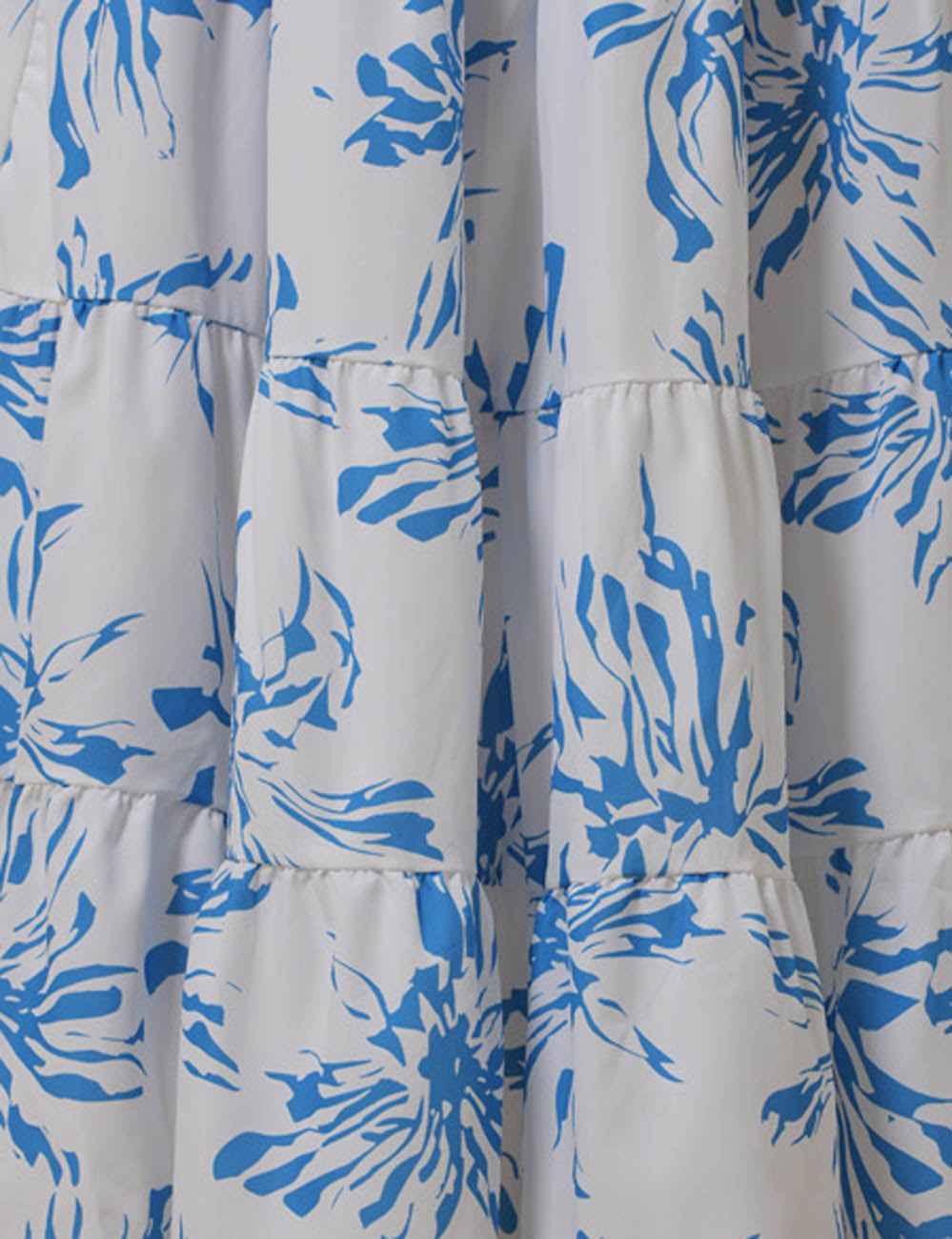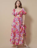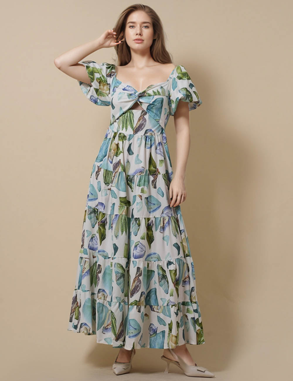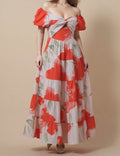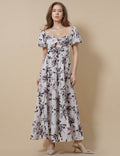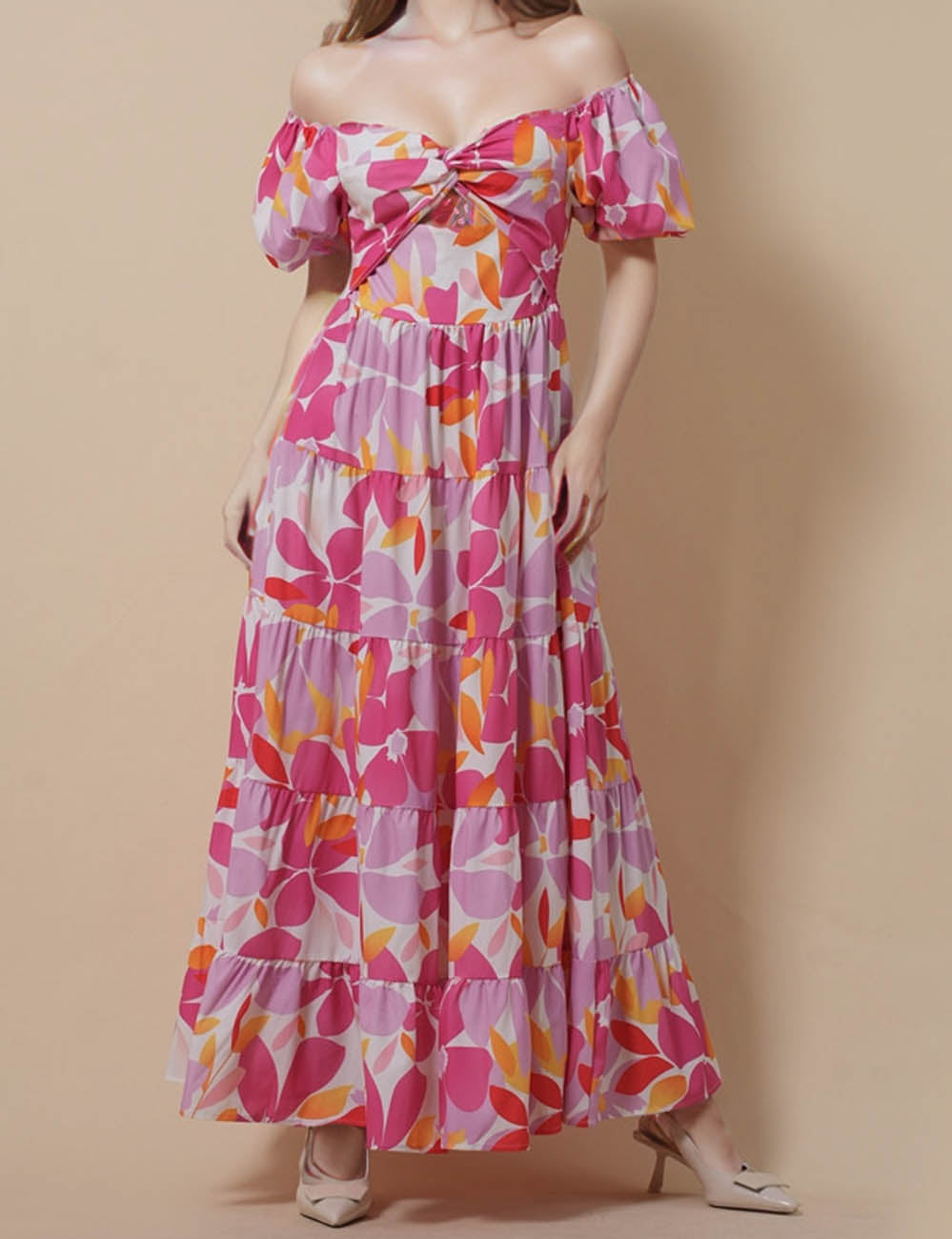Ladies Off-Shoulder Puff Sleeves Floral Print Maxi Dress SKD51118
