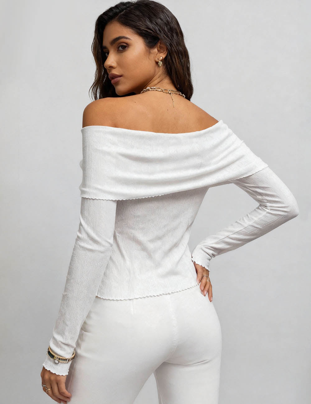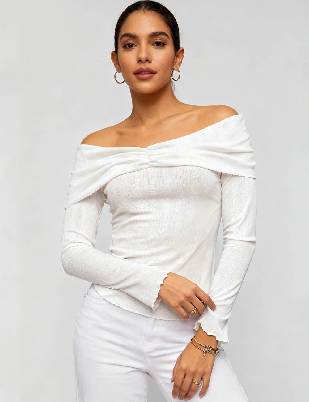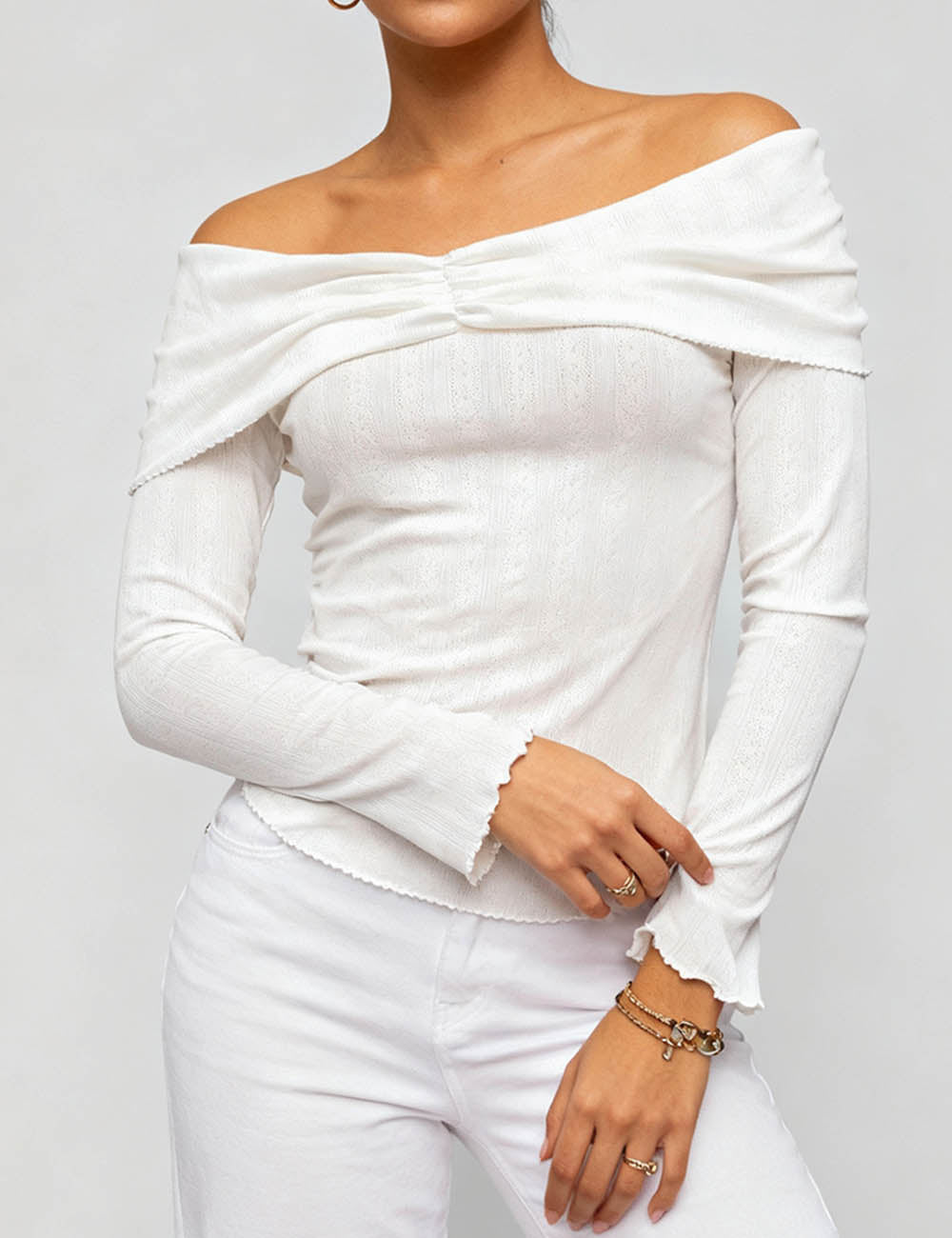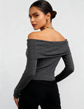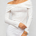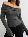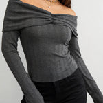 Ladies Off-Shoulder Ruched Front Long Sleeves Top