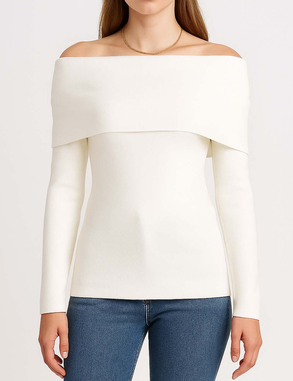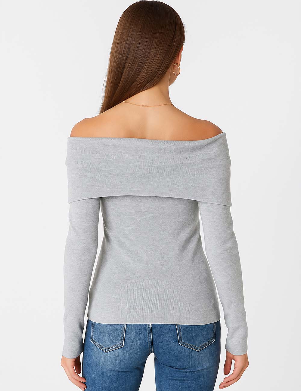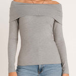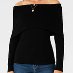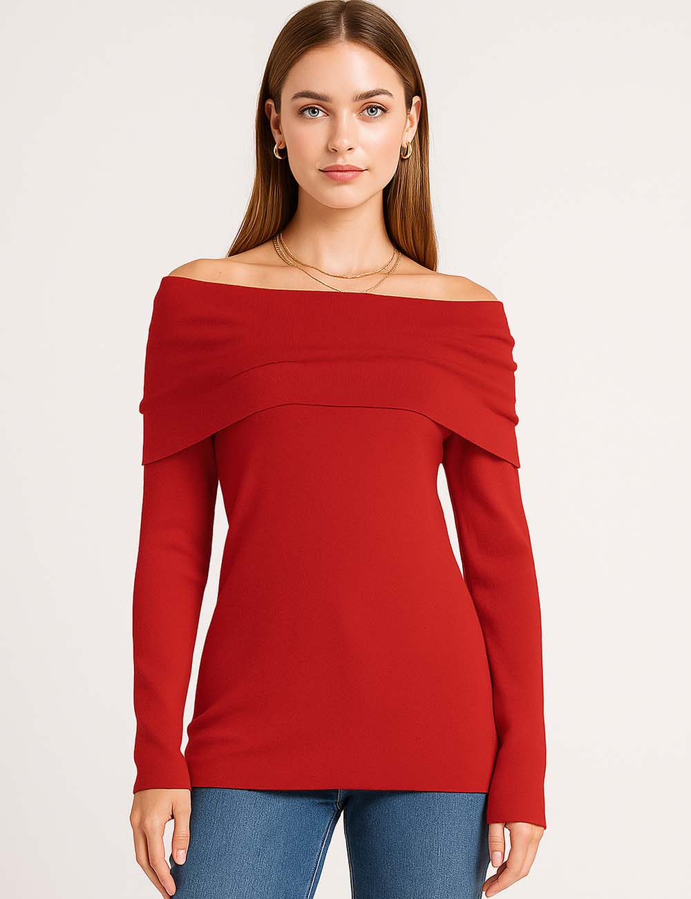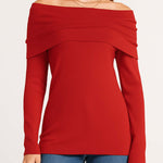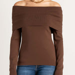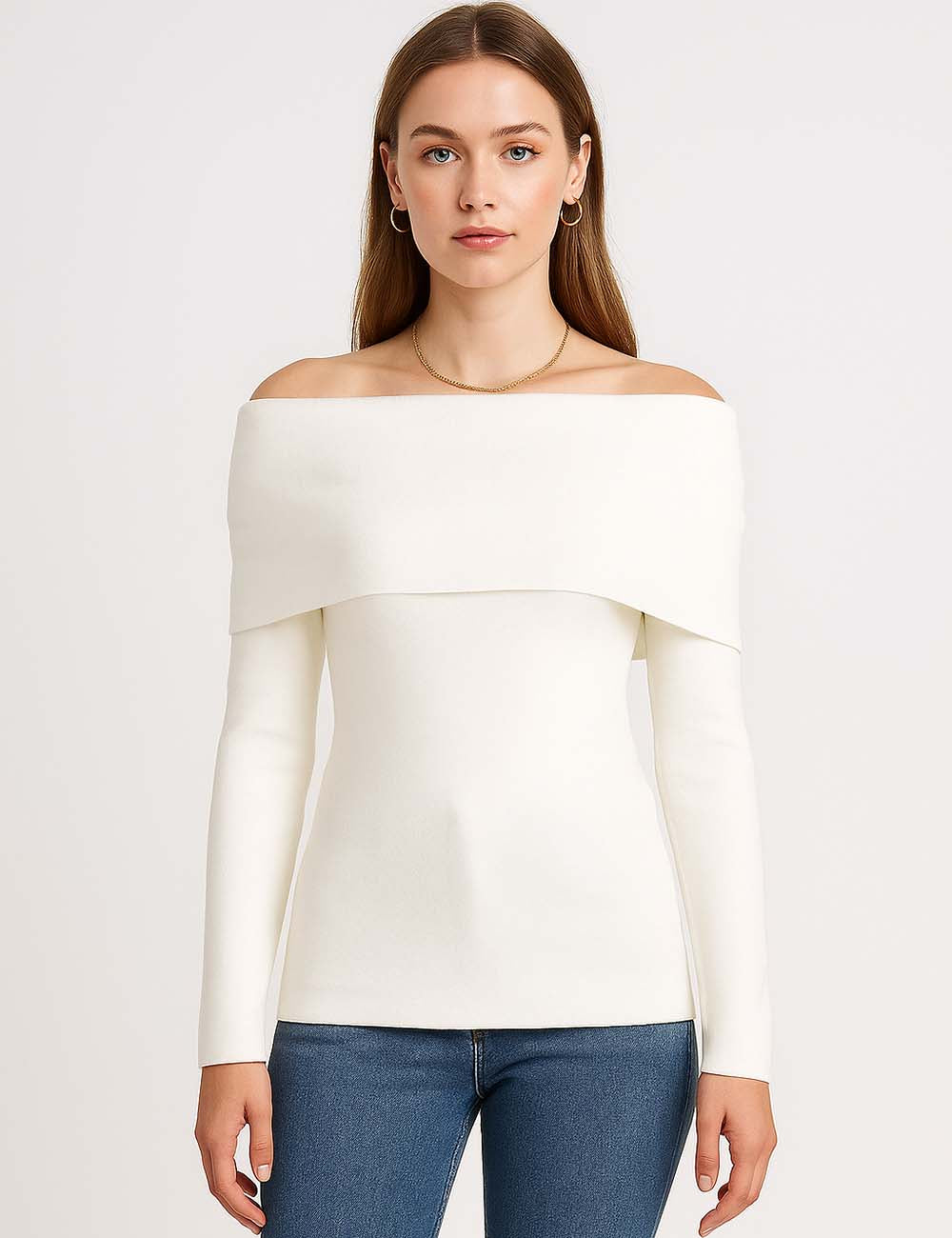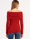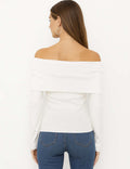 Ladies Off-Shoulder Ruched Long Sleeves Knit Top