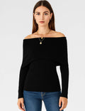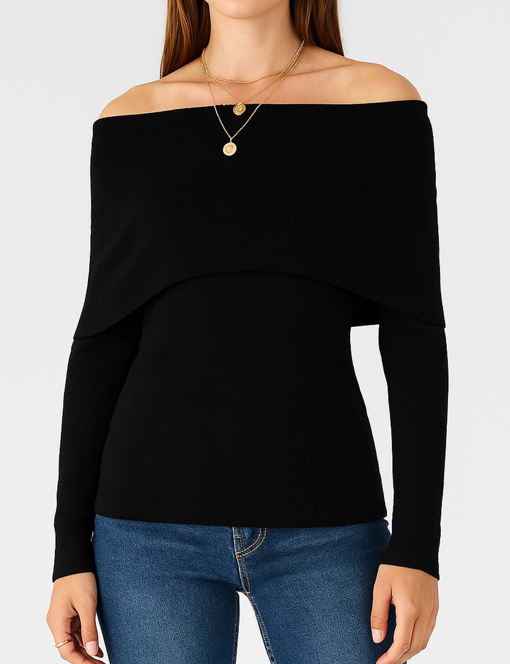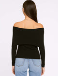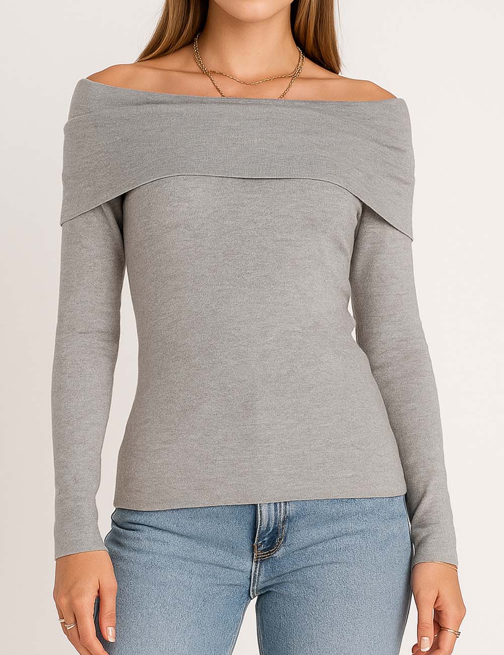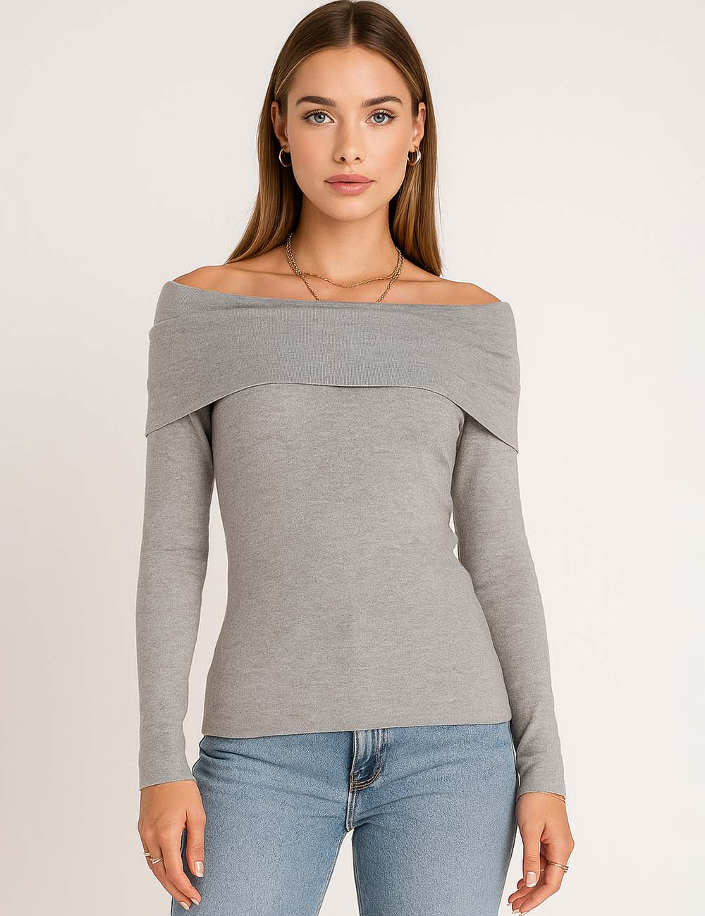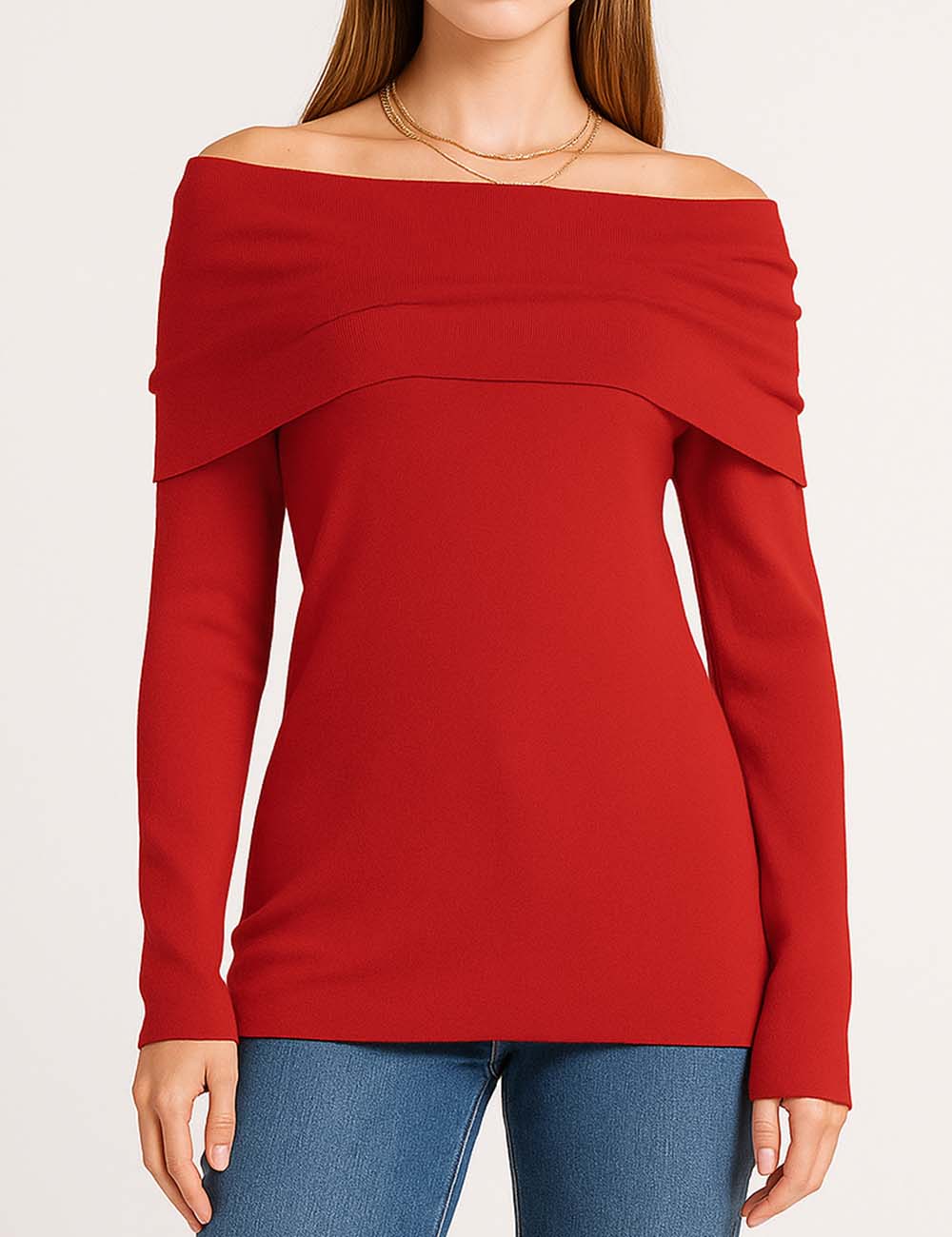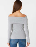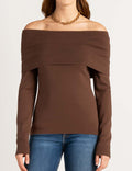 Ladies Off-Shoulder Ruched Long Sleeves Knit Top