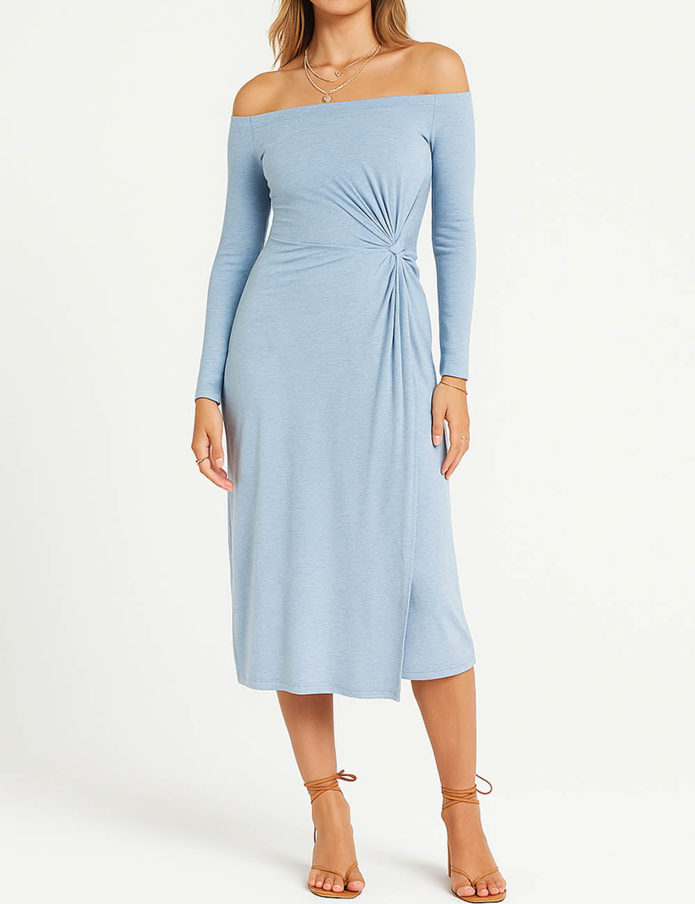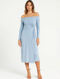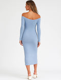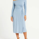 Ladies Off-Shoulder Side Twist Bodycon Midi Dress