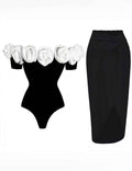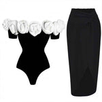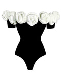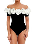 Ladies Off-Shoulder Stereoscopic Flower One Piece Swimwear with Salong