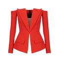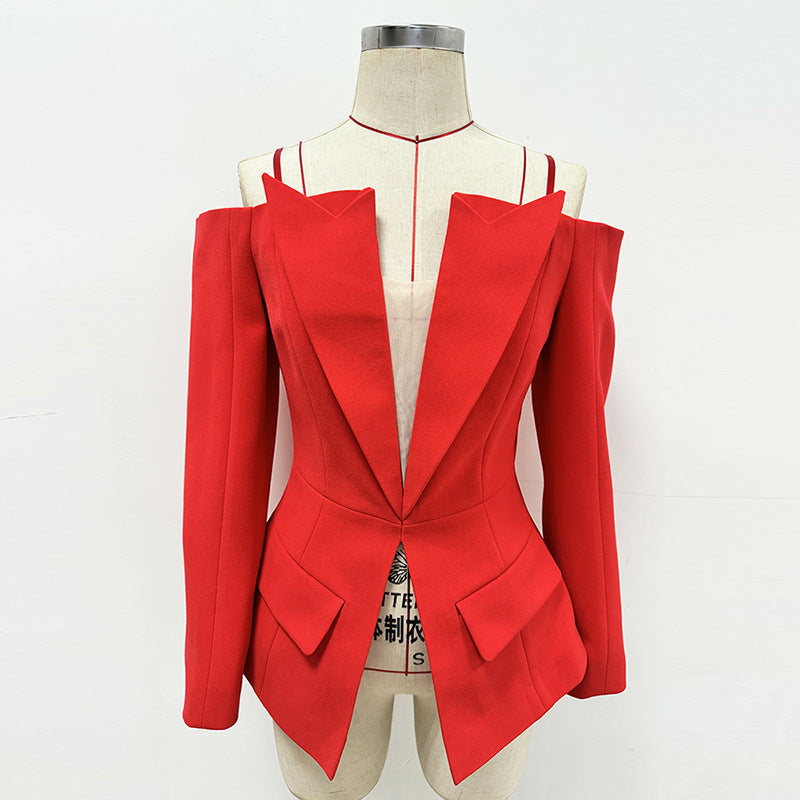 Ladies Off-shoulder String Shoulder Zipper Back Red Blazer